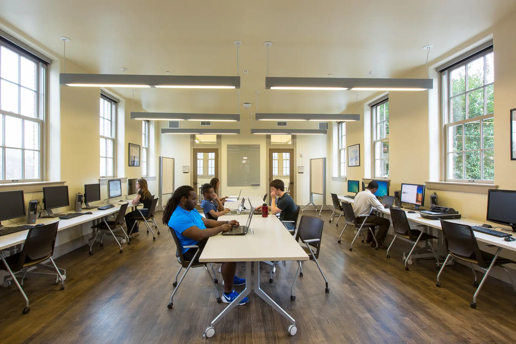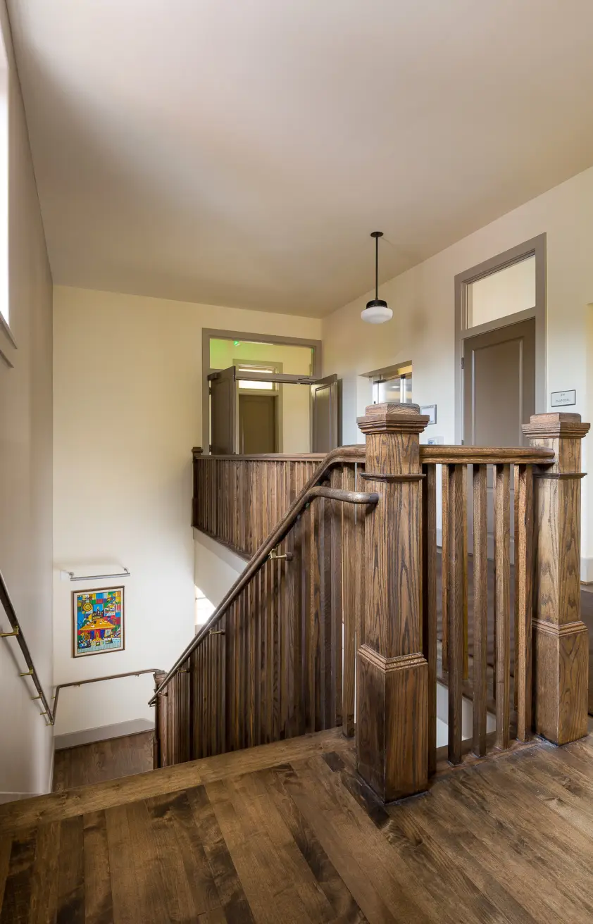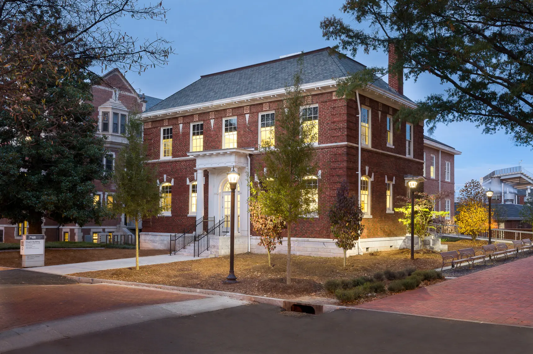 Lord Aeck Sargent was tasked with the renovation of Georgia Tech's 1910 Chapin Building, originally serving as an infirmary, to accommodate the Center for Student Diversity and Inclusion. The adaptive reuse project involved removing non-original elements, such as fire stairs, while incorporating modern updates like an elevator for ADA compliance. A new wood staircase was constructed to mirror the original's U-shaped configuration, enhancing accessibility while honoring the historic fabric. Exterior restorations focused on subtle repairs, including the preservation of distinctive marble rope joints and ventilator features at the roof. Interior work aimed to reinstate the building's historical character, raising ceilings, uncovering wood floors, and rehabilitating unique plaster details. Operable windows, replicating the original design, now optimize natural light and ventilation. Certified LEED Platinum, the renovation adheres to Georgia Tech's Historic Preservation Plan, emphasizing both conservation and sustainability in an academic setting.