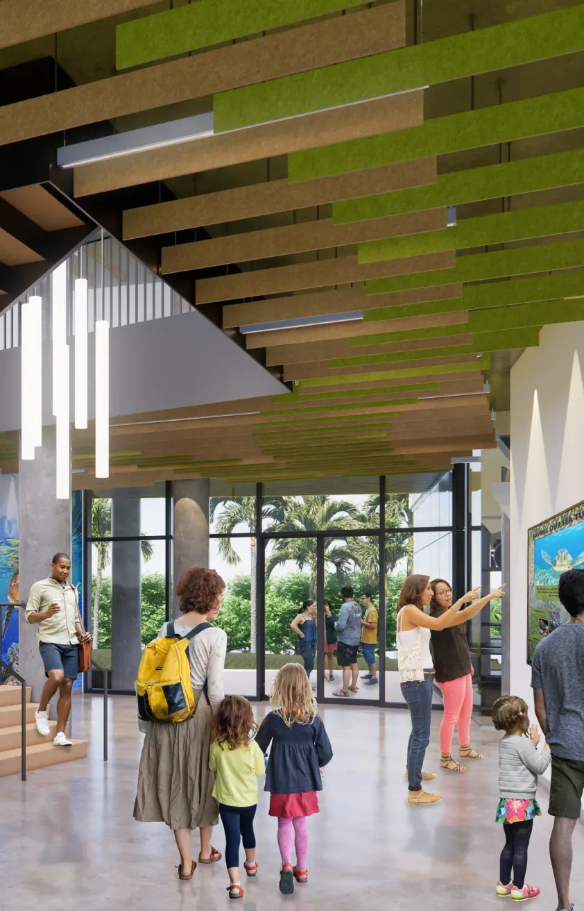 Lord Aeck Sargent designed the Marine Research Institute Building for the Whitney Laboratory for Marine Bioscience, a leading-edge research center founded in 1974 by the University of Florida. Located on the picturesque Northeast Coast of Florida, between the Atlantic Ocean and the Intracoastal Waterway, the new facility will embody the lab's commitment to marine science and sustainable campus development. The building will feature state-of-the-art research labs, a specialized sea turtle research center and hospital, offices, and an educational display area, fostering collaboration among more than 70 researchers and staff focused on marine models for biomedical and neural research. Designed to enhance interdisciplinary collaboration, the institute will co-locate researchers, students, and administrators in a modern, purpose-built environment that supports unique research needs. Indoor and outdoor gathering spaces will further promote collaboration while minimizing environmental impact. This transformative project will amplify the Whitney Lab's capabilities in biodiversity, ocean health, marine chemistry, neuroscience, and other critical scientific areas, reinforcing its mission to "Go Greater for all of us." This project was designed in partnership with TTV Architects.