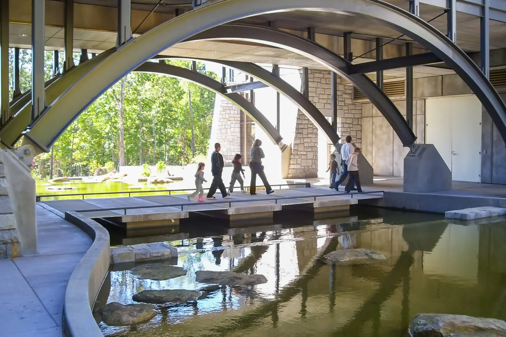 The Gwinnett Environmental & Heritage Center is a 65,000-square-foot interpretive learning facility designed to foster an understanding of water’s critical relationship to life, with a particular emphasis on sustainability and environmental stewardship. The building integrates interior exhibits and hands-on learning environments with outdoor trails, allowing for a seamless educational experience across both indoor and outdoor spaces. Sustainable design elements include a one-acre sloped vegetative roof, water reuse systems, pervious pavement, and daylight harvesting features, all working together to minimize environmental impact while enhancing energy efficiency. This project was developed through collaboration with local educational and government institutions, positioning the facility as a model of eco-conscious design that encourages interactive learning about natural resources.