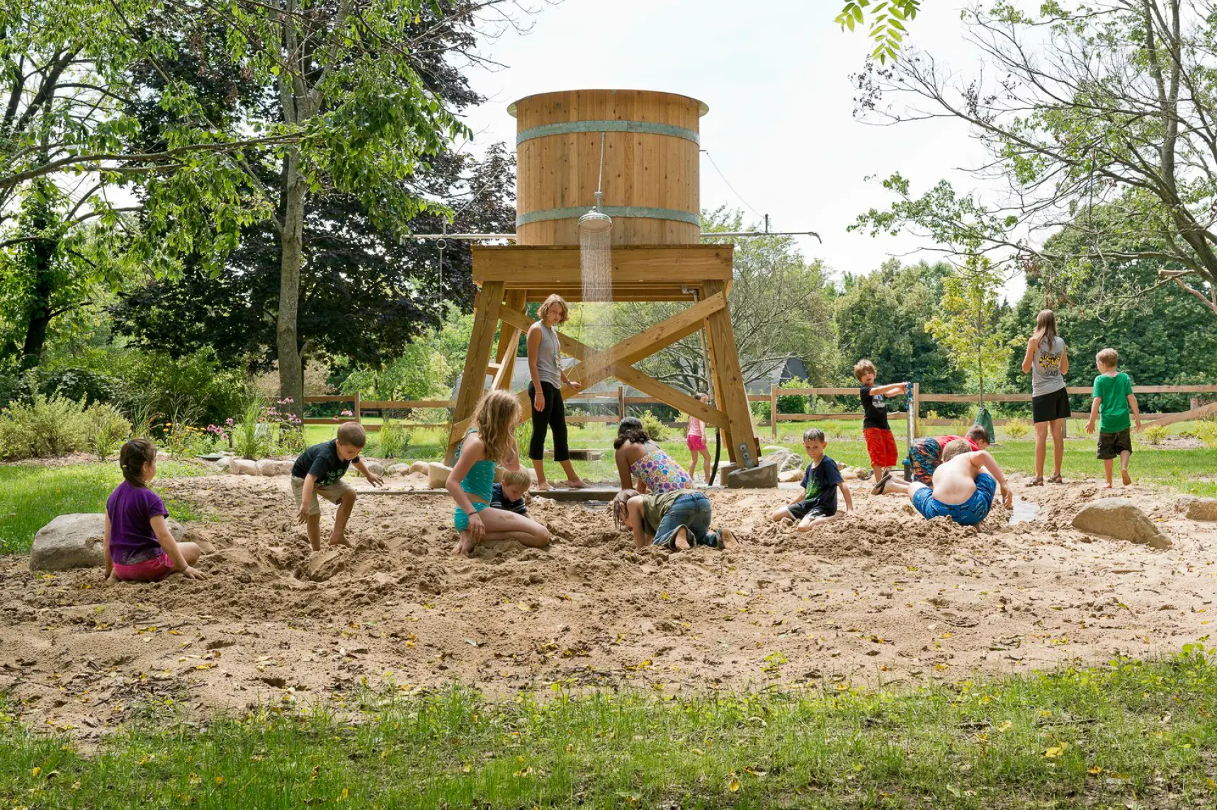 “We now have a space that inspires fun, creativity and is welcoming to all who arrive. In the event of inclement weather, campers and staff have a large open space in the barn and a beautiful, covered deck where they can continue their program without risk, and the addition of water play and specifically Nature’s Playground, allow kids of all ages to explore, dig, get wet and most importantly, have fun in nature!”