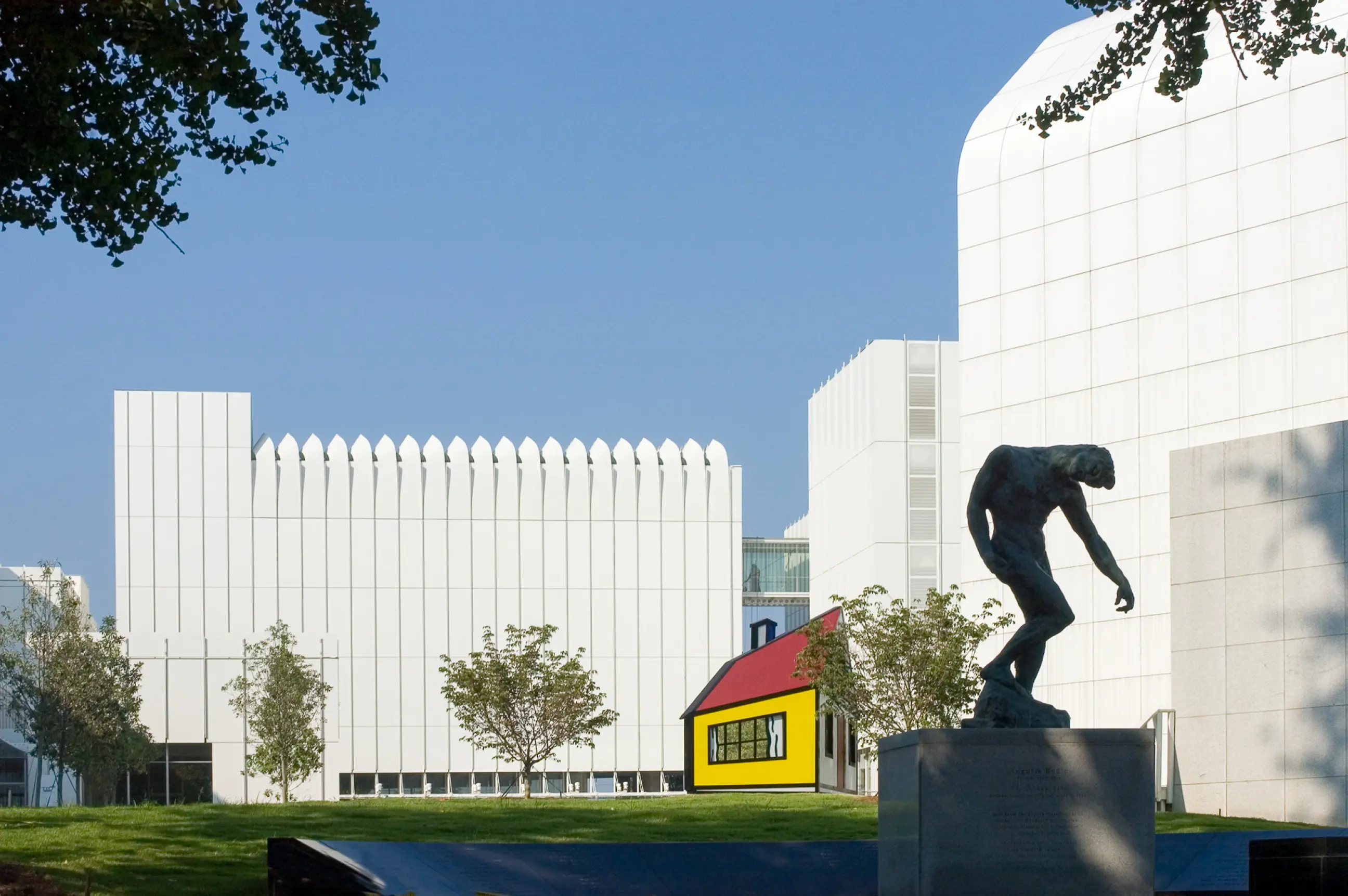 The High Museum campus expansion, designed in collaboration between Renzo Piano Building Workshop and Lord Aeck Sargent, involved a comprehensive effort to accommodate the growing needs of Atlanta's major cultural institutions. This project introduced a cohesive arrangement of new structures including museum buildings, an office space for the High Museum of Art, and residential and educational facilities for the Savannah College of Art and Design. The design integrates these elements around a new public plaza, opening the campus to the surrounding urban fabric. Additional elements such as an underground parking garage and restaurant further support the function of the campus, providing necessary infrastructure while maintaining a village-like atmosphere intended to foster engagement with the arts.