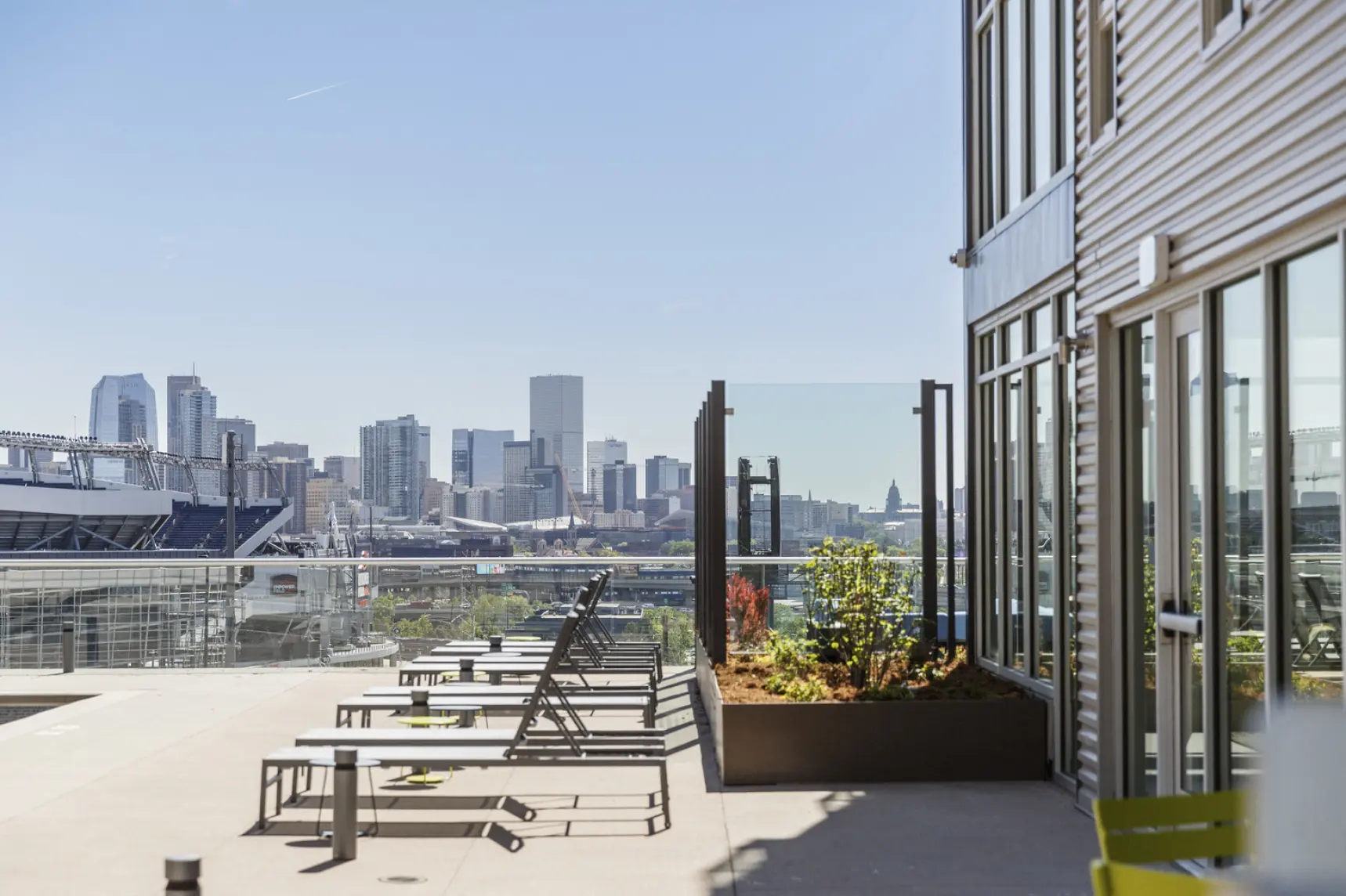 Positioned within one of Denver’s most dynamic neighborhoods, Cirrus offers residents access to both urban vitality and natural beauty. The rooftop deck frames panoramic views of Mile High Stadium and the Rocky Mountains, while nearby breweries, eateries, and outdoor spaces encourage an active lifestyle. Convenient access to I-25, 6th Avenue, and RTD’s Light Rail connects residents to the best of Denver and beyond, from shopping and dining to mountain adventures. By combining striking design, sustainable construction, and a prime location, Cirrus sets a new standard for urban living in Colorado. Project designed by Lord Aeck Sargent, then a Katerra Company, in collaboration with Davis Partnership Architects.