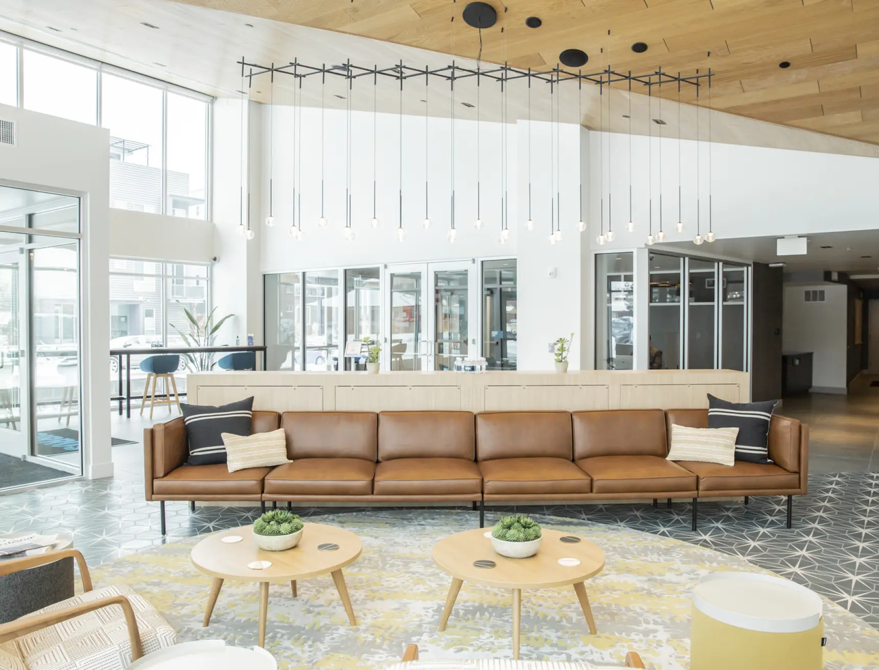 Cirrus is a seven-story residential apartment building located in Denver’s Sloan’s Lake and West Colfax neighborhood. Five residential levels sit above a podium that accommodates leasing, parking, and additional residential units, while two elevated courtyards provide views toward Downtown Denver and Mile High Stadium. The residential floors feature cross-laminated timber construction, left exposed within the units to highlight a warm, natural aesthetic. Designed to reflect Colorado’s connection to the outdoors, the building integrates contemporary finishes such as quartz countertops and wood plank flooring, creating apartment homes that balance modern comfort with environmental responsibility.