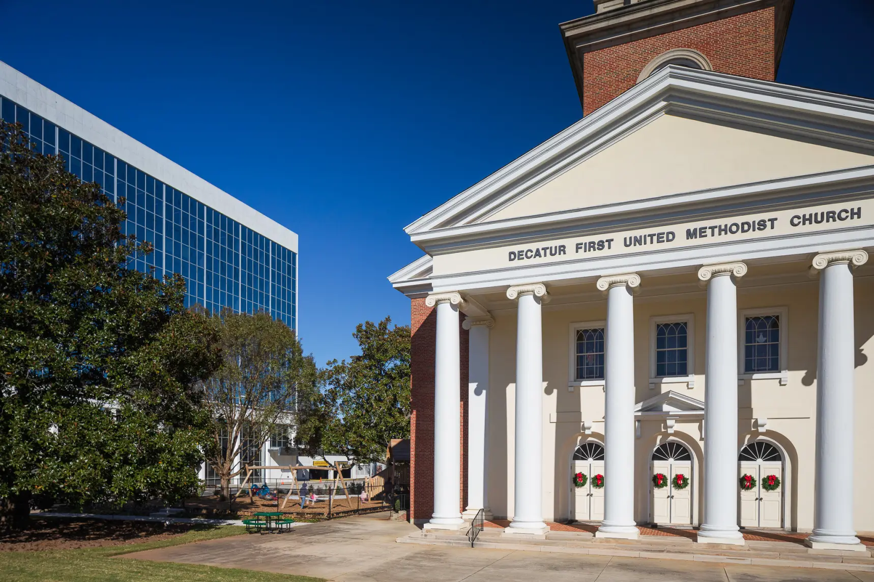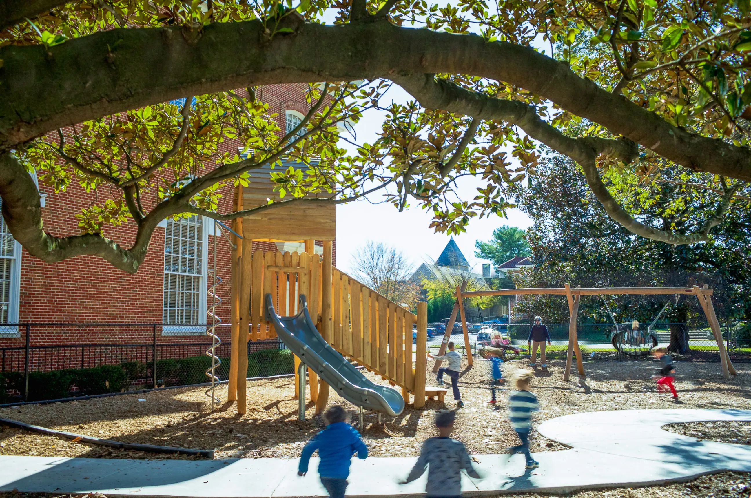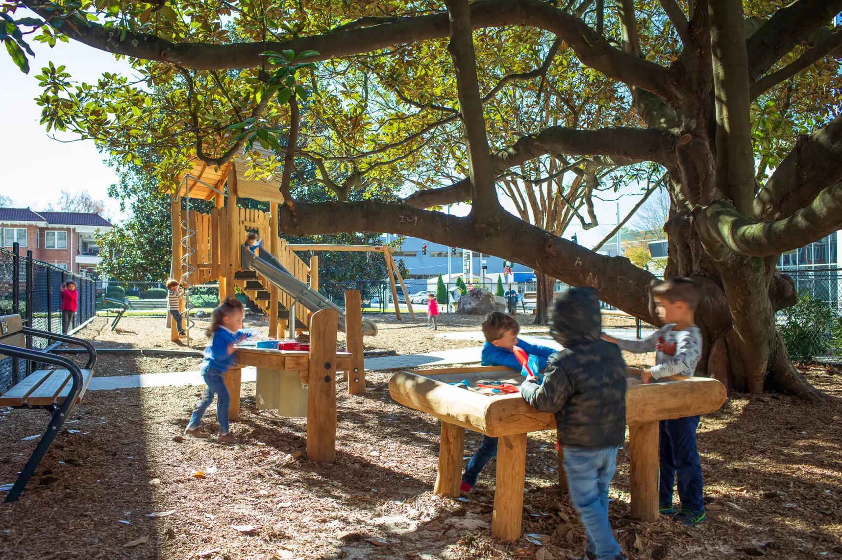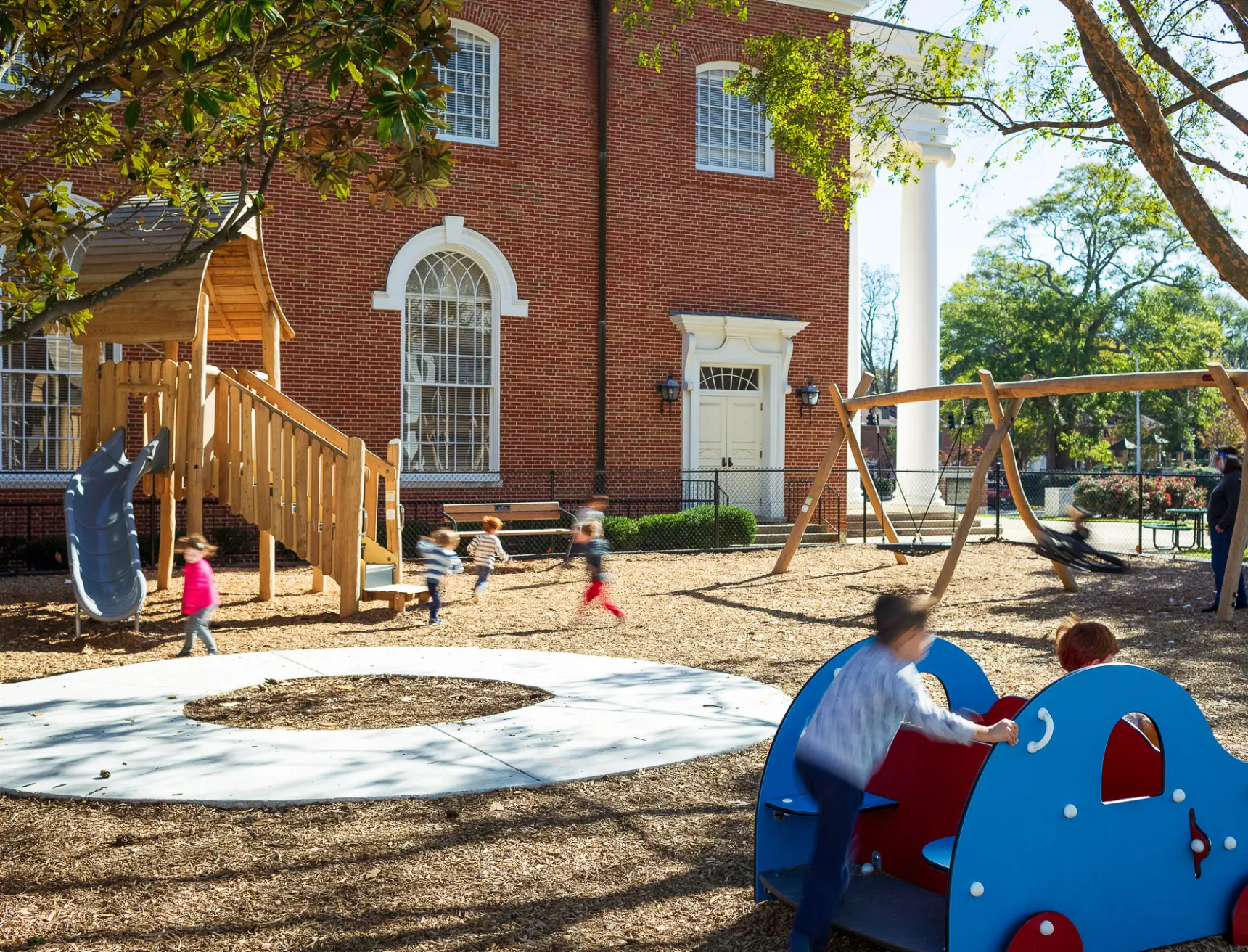 Lord Aeck Sargent’s landscape architecture approach to the Decatur First United Methodist Church project focuses on integrating a new playground into the church’s landscape while preserving its mature trees—a defining feature of the site. Collaborating closely with the City of Decatur, arborists, contractors, and equipment manufacturers, the firm’s role emphasized minimizing environmental impact through careful spatial planning, equipment selection, and siting strategies that protect the established canopy. This project, designed to meet Pre-K requirements, also seeks to create an accessible, inviting space for community engagement. Through mindful integration of natural elements with functional play structures, Lord Aeck Sargent balances the church's educational needs with sustainable landscape stewardship, reinforcing a community-oriented approach to design.