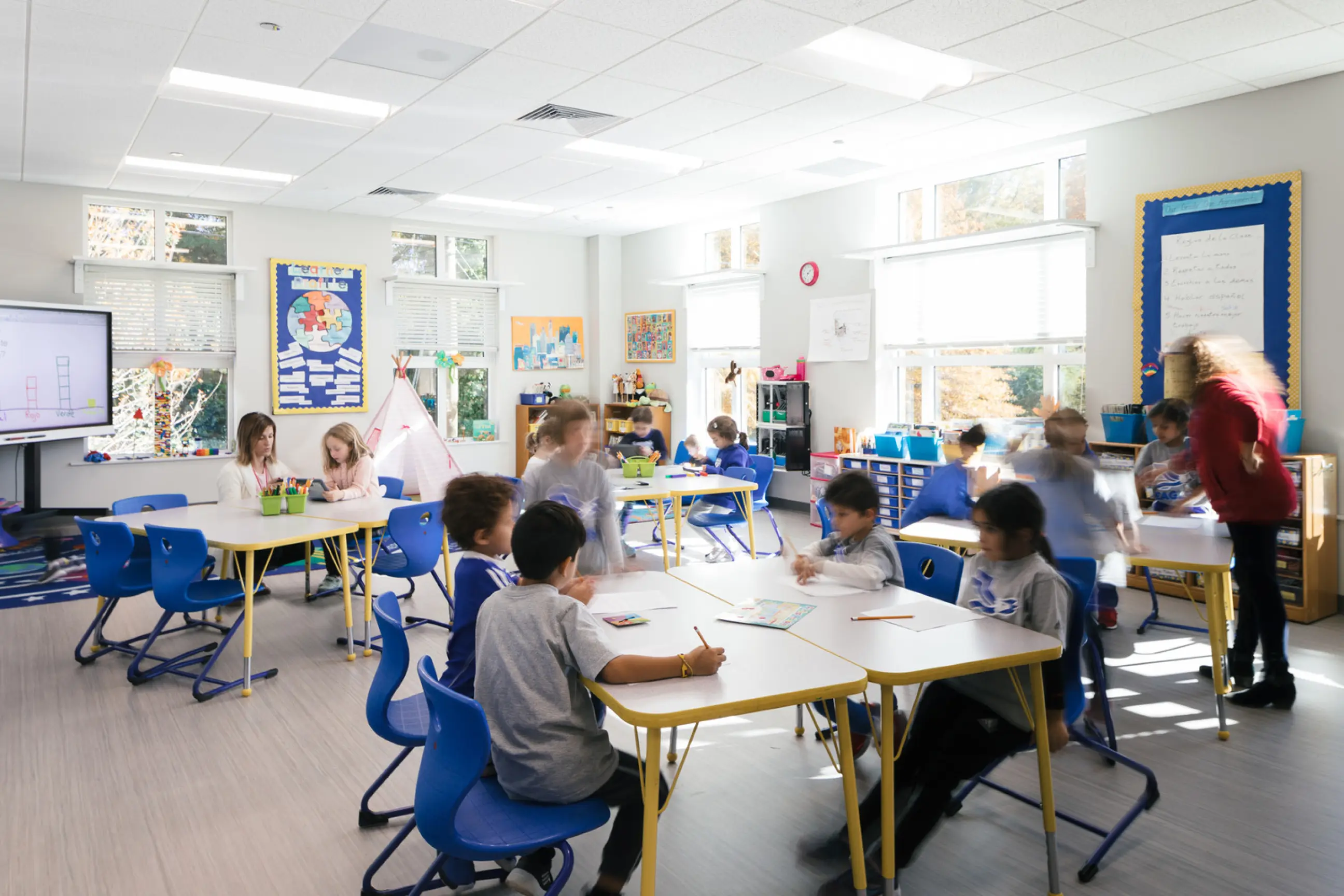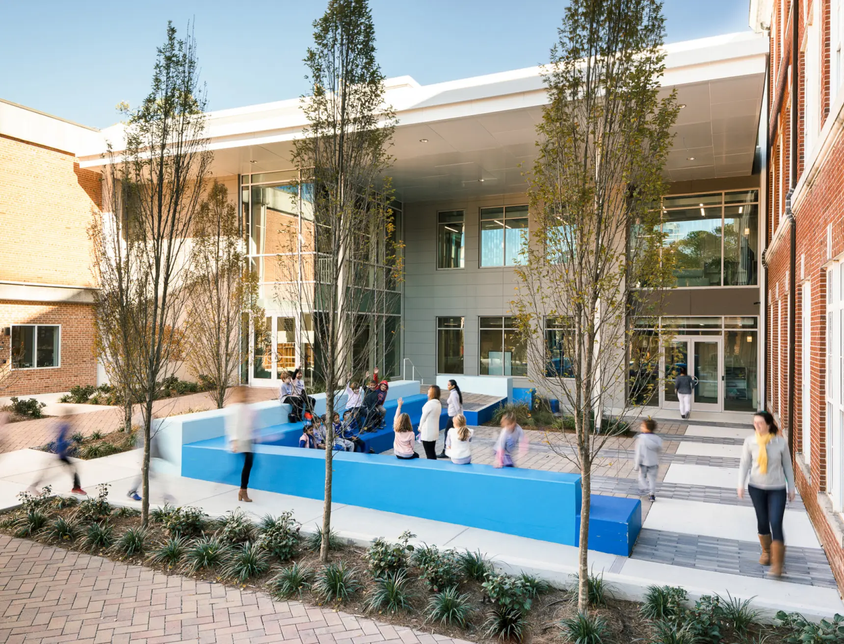 The design of the Atlanta International School’s (AIS) primary school expansion focuses on creating a cohesive and flexible learning environment for students in grades K-5. The project includes a new building with 21 classrooms spread across three stories, offering a variety of collaborative learning spaces designed to support the International Baccalaureate (IB) program. These spaces, including flexible learning studios, classrooms, and administrative offices, provide adaptable environments for both small and large group activities. A new entrance and dedicated carpool drop-off area were incorporated to give the primary school a more defined presence on campus. To address AIS’s existing layout, where primary school facilities were dispersed across several buildings, the expansion physically unites these spaces under one roof, creating a more cohesive environment for young learners. The design also emphasizes outdoor learning, integrating the new facility with outdoor classrooms and courtyards that connect indoor and outdoor learning environments, optimizing space and enhancing daylight and shading strategies to create a sustainable, functional learning atmosphere.