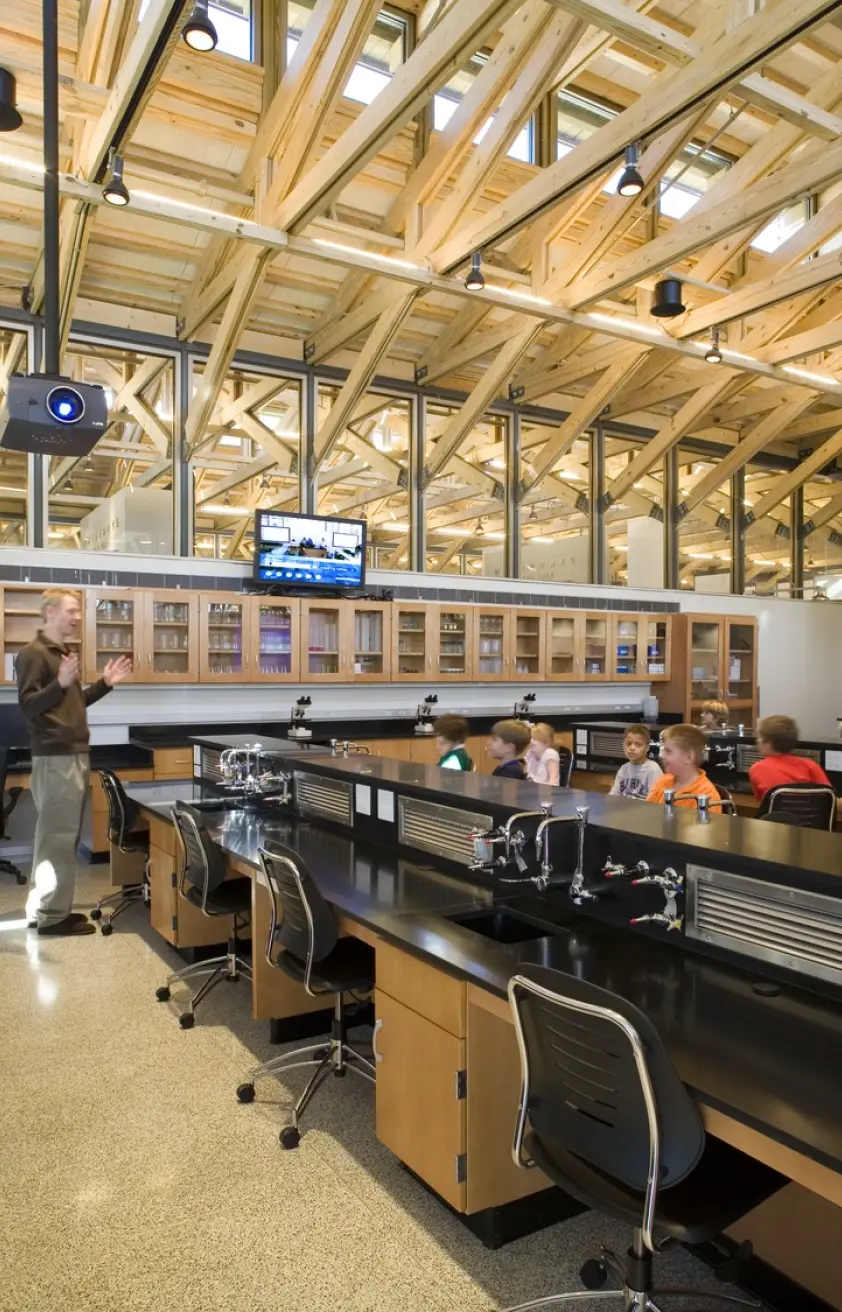 The Gwinnett Environmental & Heritage Center is a 65,000-square-foot interpretive learning facility designed to foster an understanding of water’s critical relationship to life, with a particular emphasis on sustainability and environmental stewardship. The building integrates interior exhibits and hands-on learning environments with outdoor trails, allowing for a seamless educational experience across both indoor and outdoor spaces. Sustainable design elements include a one-acre sloped vegetative roof, water reuse systems, pervious pavement, and daylight harvesting features, all working together to minimize environmental impact while enhancing energy efficiency. This project was developed through collaboration with local educational and government institutions, positioning the facility as a model of eco-conscious design that encourages interactive learning about natural resources.