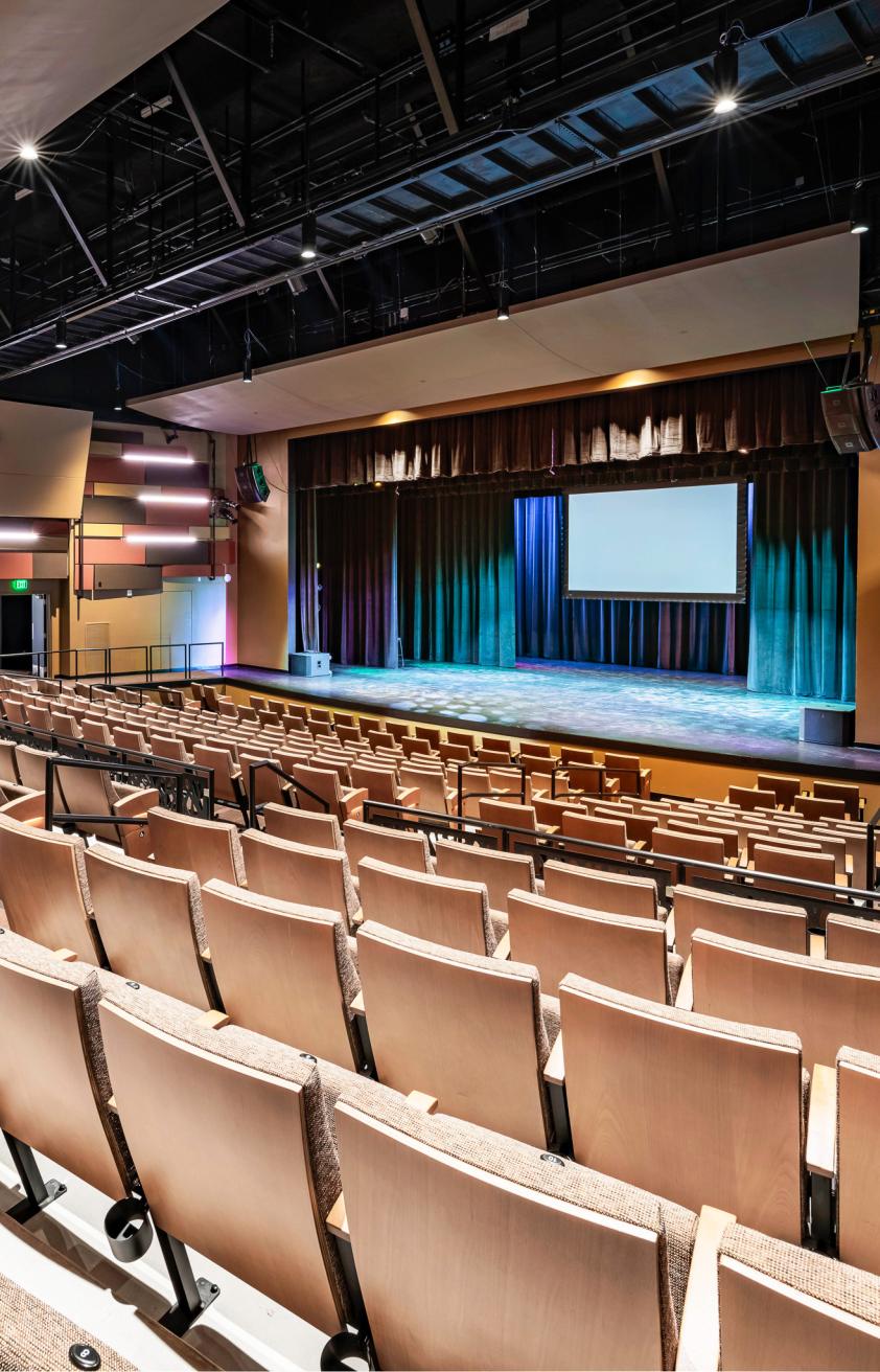 Lord Aeck Sargent led the design of the expanded Highlands Performing Arts Center, collaborating with Jones Lang LaSalle and Choate Construction. The project involved the creation of a new flexible theater space capable of seating 300 people, accommodating a variety of performances, from drama and musical theater to amplified music and film. The expansion strategically connects to the existing 200-seat recital hall, optimizing the use of shared amenities such as the new lobby, box office, concessions, and administrative offices. The design also includes vital backstage support spaces, such as dressing rooms, a green room, and set storage, all positioned for efficient access to the new stage. Throughout the construction phase, the original facility remained operational, demonstrating the project's careful planning and phased approach. The design further anticipates future growth, allowing for the potential addition of a black box theater. The expanded center enhances the venue’s capacity to support a broader range of local and regional arts groups as well as touring productions, serving as a vital cultural resource in the community.