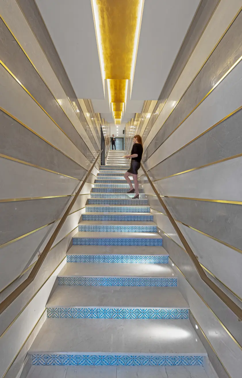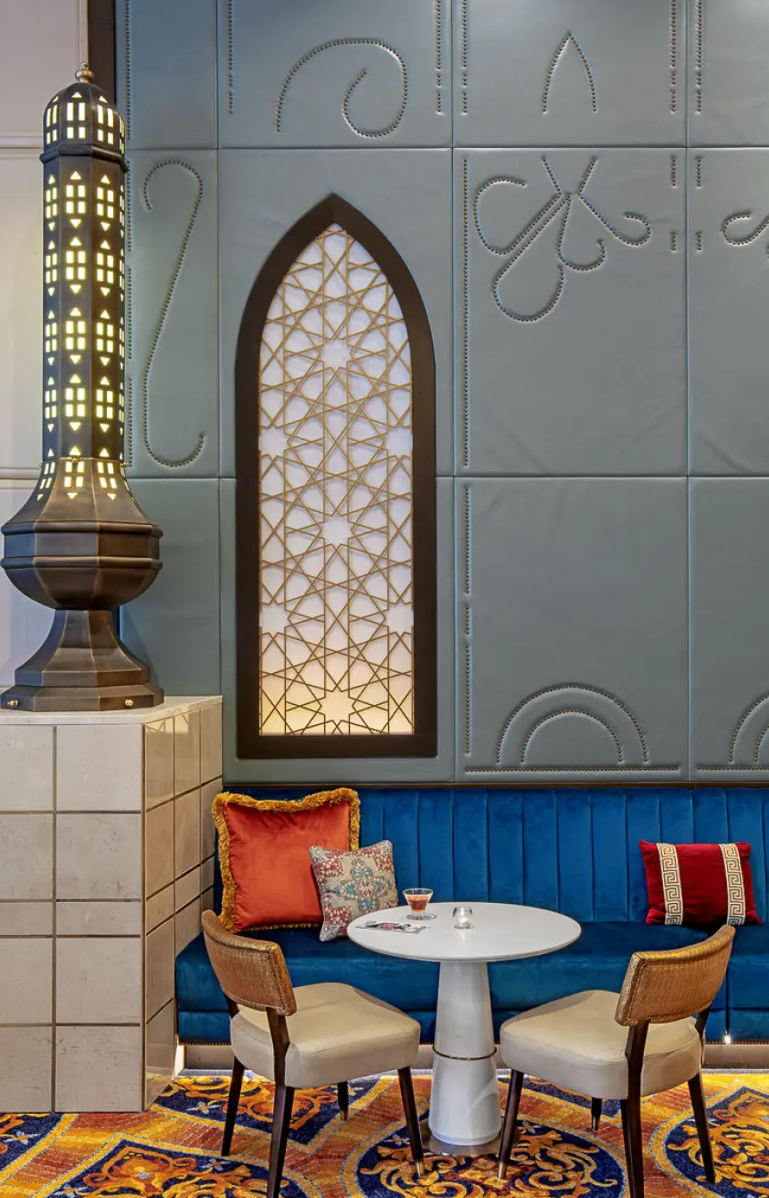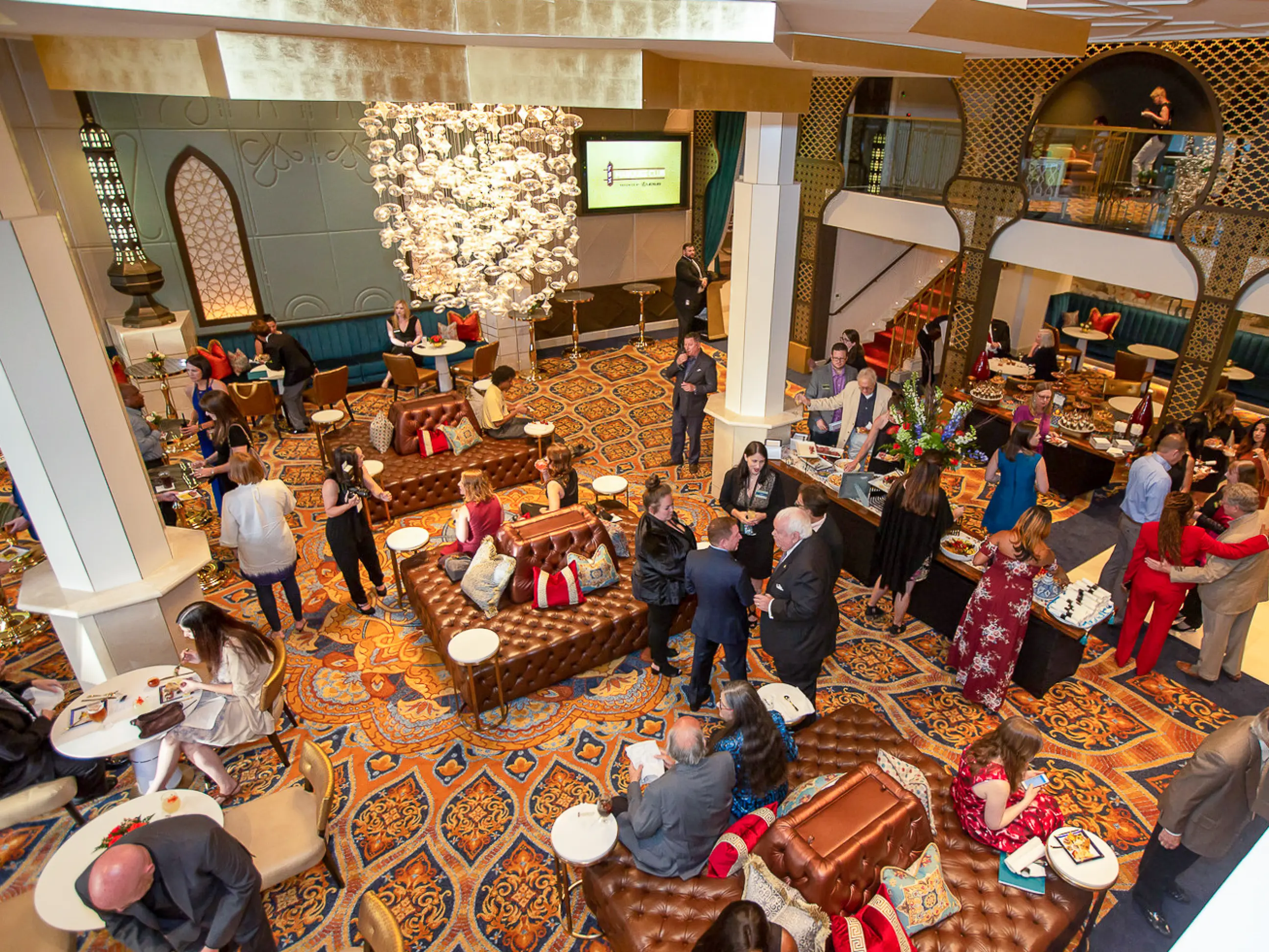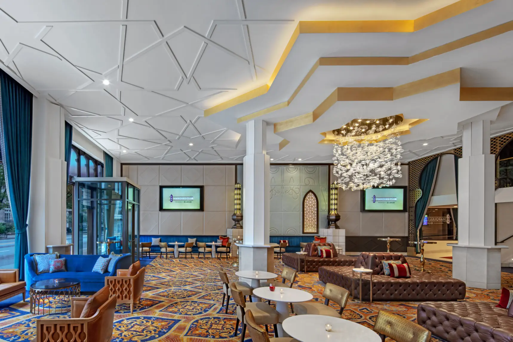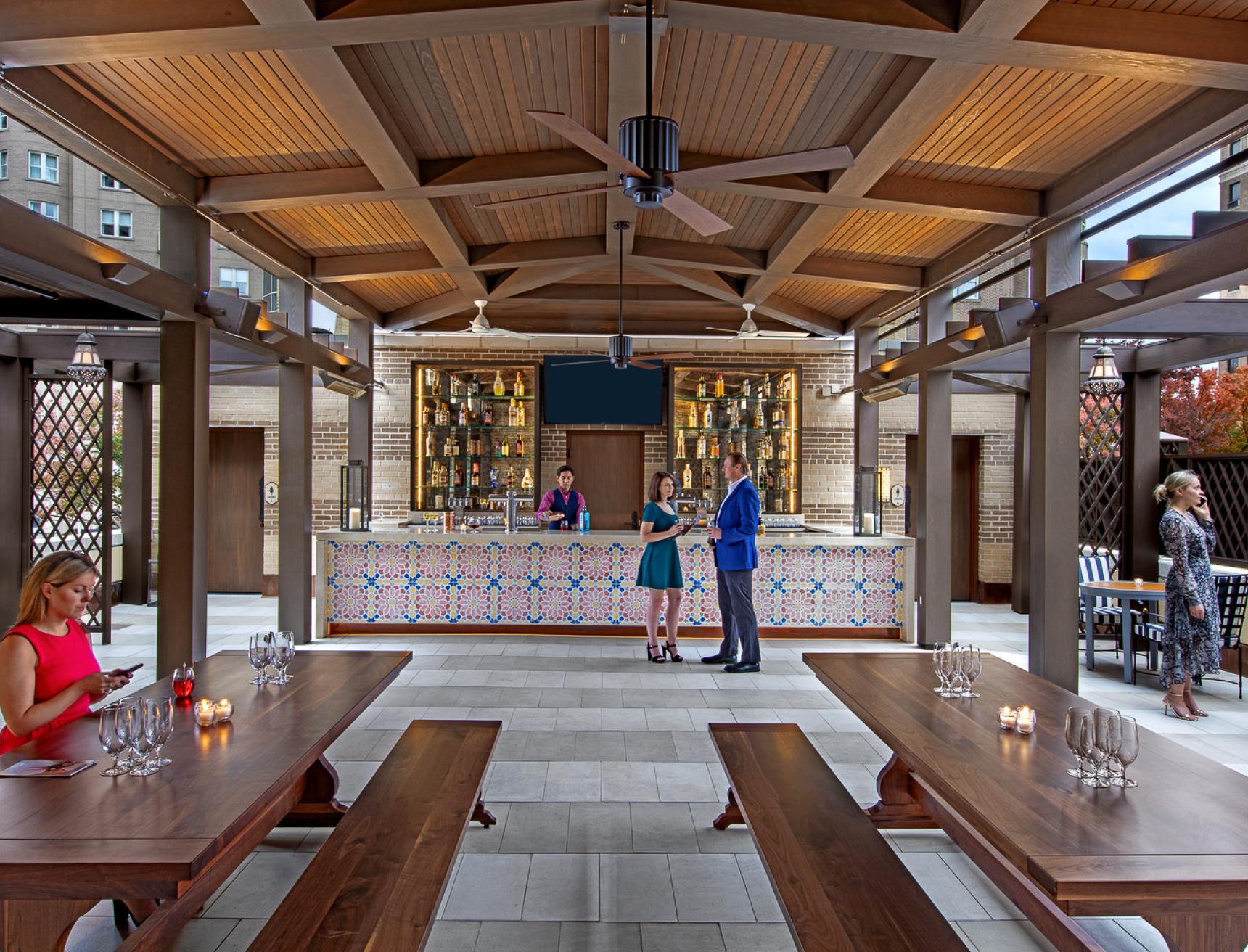 Lord Aeck Sargent collaborated with the Fox Theatre to design the Marquee Club, a premium event space featuring five bars and two rooftop terraces, providing, for the first time, a view overlooking the iconic Fox marquee and Peachtree Street. The four-level space accommodates 350 guests and includes seating for 100, a small kitchen, and two walk-in beer coolers. With entrances from both Peachtree Street and the Arcade, the design enlivens the storefront, enhancing the street life while offering a rich and inviting atmosphere. The project balances sophisticated interior spaces with outdoor terraces, which are especially popular during Atlanta's balmy evenings. The historic storefront windows were restored to offer a teasing glimpse into the club, seamlessly blending the original 1929 architecture with modern interventions.