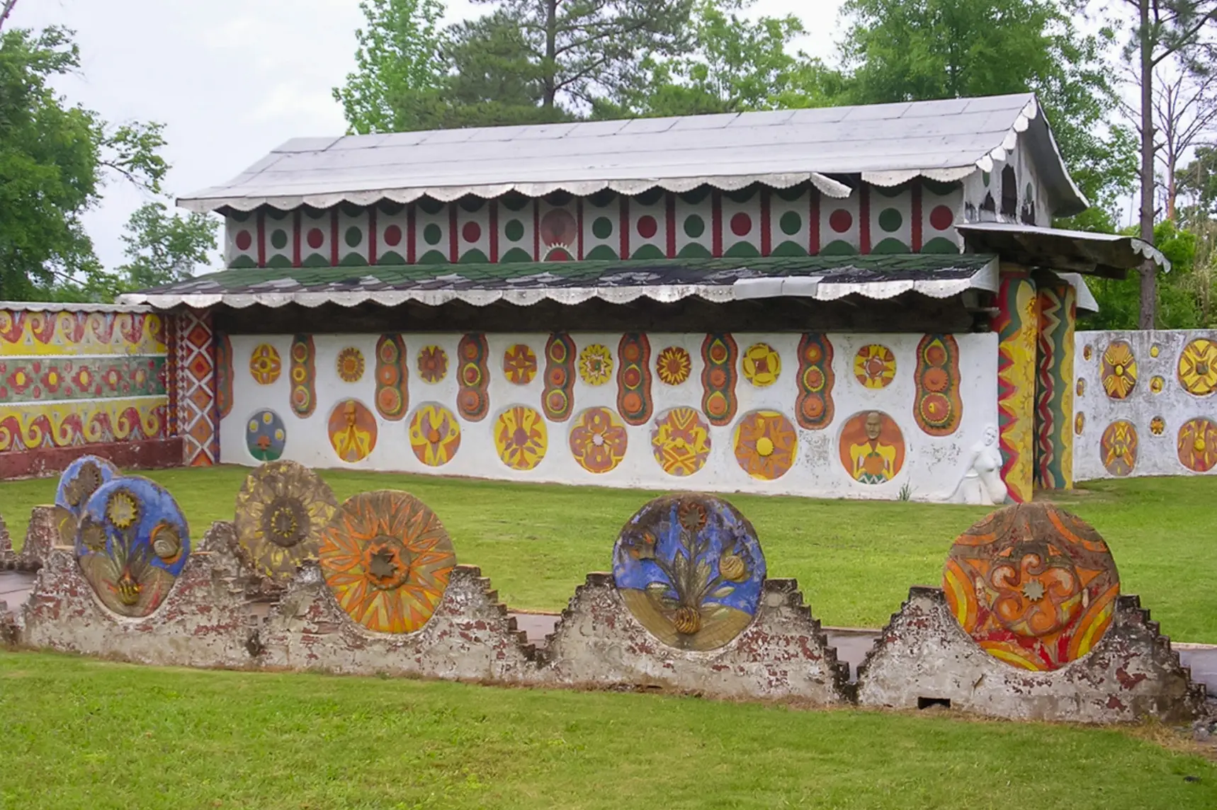 The Pasaquan Preservation Project centers around the assessment and preservation of a unique folk art environment created by Eddie Owens Martin, also known as St. EOM, near Buena Vista, Georgia. Lord Aeck Sargent played a key role in developing a comprehensive plan for the conservation of Pasaquan’s six buildings and extensive outdoor artworks, which were in severe deterioration due to exposure to natural elements. The firm conducted a thorough analysis of structural elements like roofing and foundations to stabilize critical areas while also addressing the conservation of Martin’s vibrant, polychromatic renderings on concrete surfaces. The assessment provided immediate protective measures to halt further degradation and offered a long-term conservation strategy. This detailed preservation plan also included cost estimates for the recommended interventions and serves as a critical tool for site management, grant applications, and ongoing fundraising efforts.
