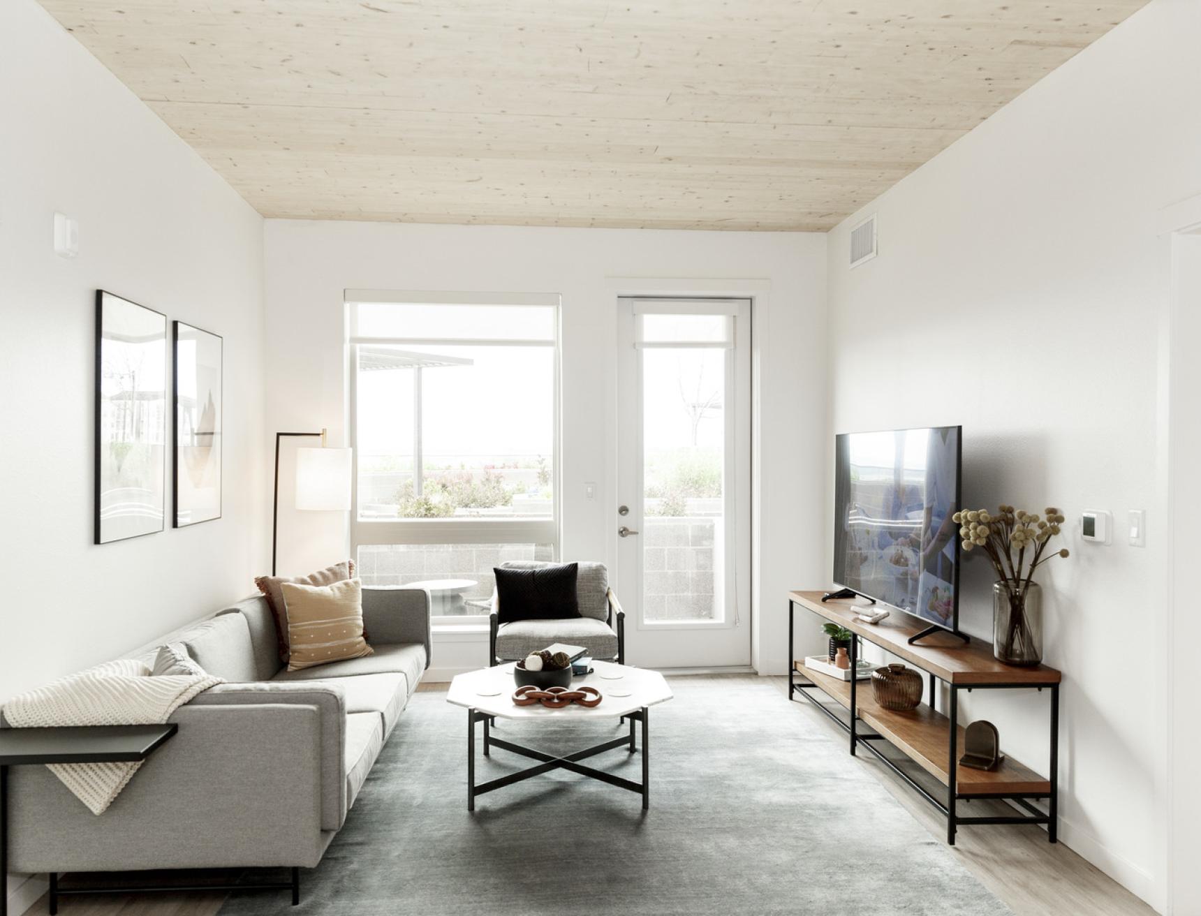 Cirrus is a seven-story residential apartment building located in Denver’s Sloan’s Lake and West Colfax neighborhood. Five residential levels sit above a podium that accommodates leasing, parking, and additional residential units, while two elevated courtyards provide views toward Downtown Denver and Mile High Stadium. The residential floors feature cross-laminated timber construction, left exposed within the units to highlight a warm, natural aesthetic. Designed to reflect Colorado’s connection to the outdoors, the building integrates contemporary finishes such as quartz countertops and wood plank flooring, creating apartment homes that balance modern comfort with environmental responsibility.