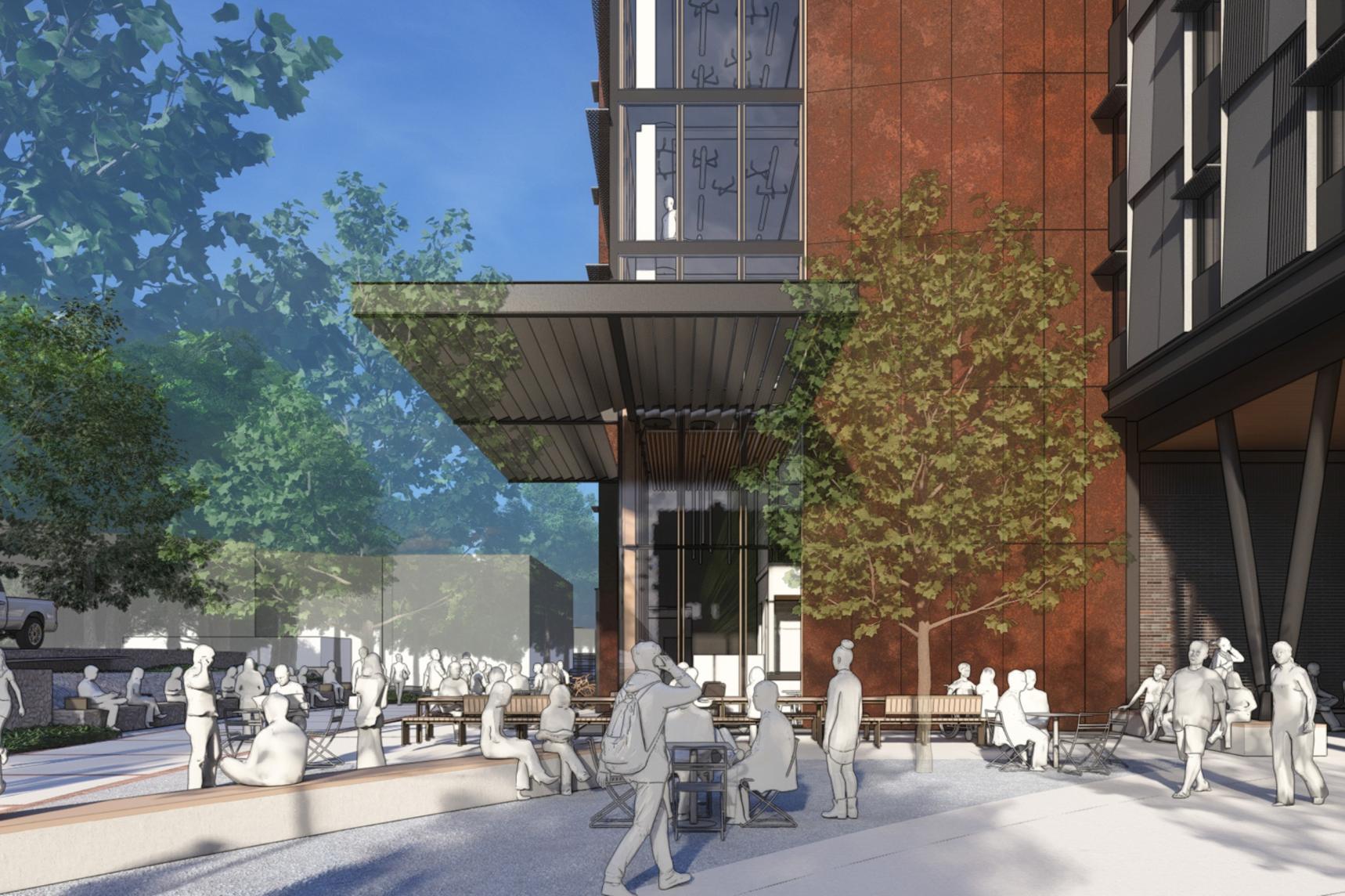The Georgia Tech First Year Residence Hall, located on Curran Street, is designed to accommodate 862 beds with a focus on community engagement. The program features communal indoor and outdoor spaces including a “front porch” area for relaxation and connection to the campus ecosystem, while ensuring resident safety and future connections to the Westside neighborhood of Atlanta.