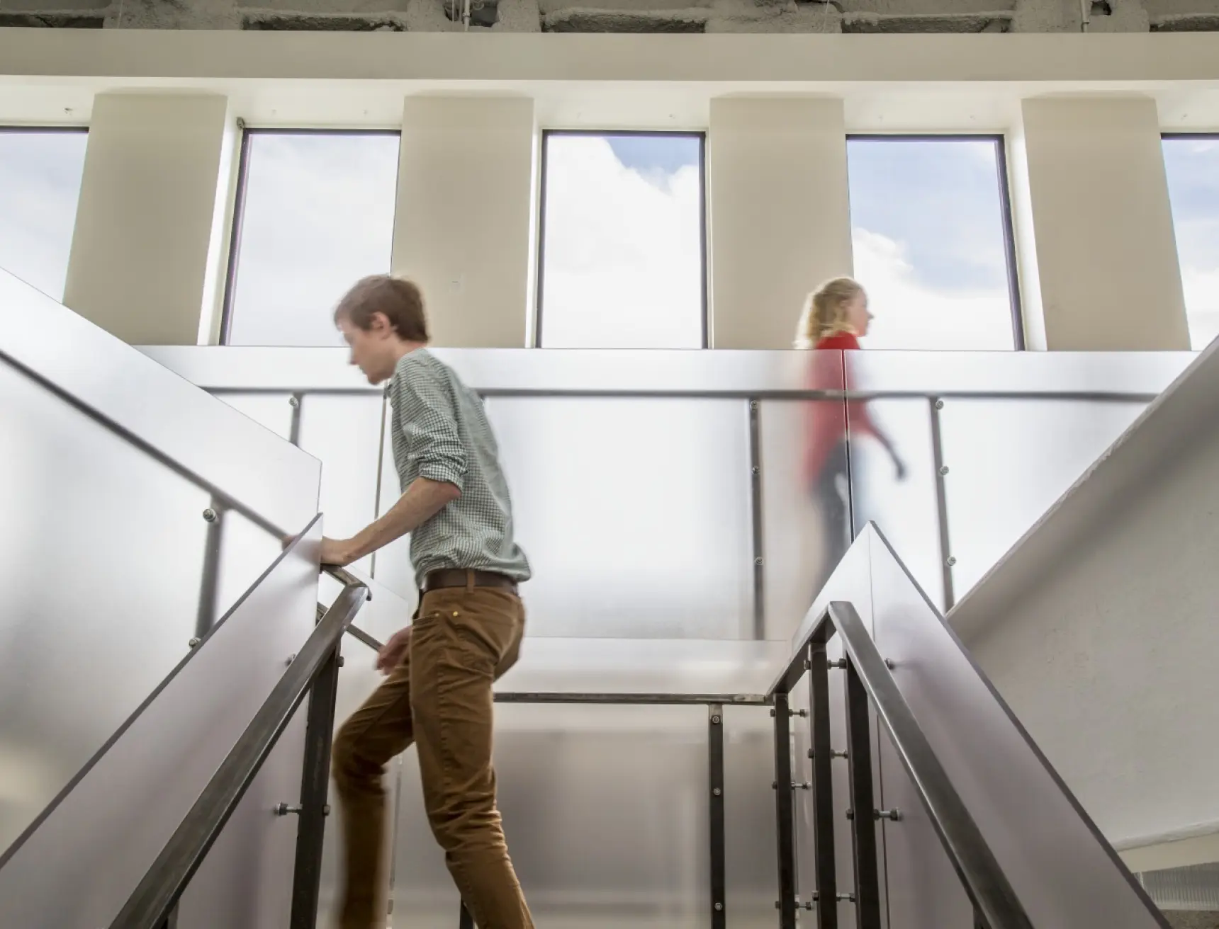 The relocation of the architectural firm's office to the top two floors of a 1970s-era building in Colony Square was approached with sustainability at the forefront. The project integrates various environmentally conscious strategies, including LED fixtures with daylight harvesting, reducing the lighting power density by 53%, and maximizing natural daylight. The design features flexible workspaces and open office layouts, with a focus on promoting movement and collaboration through a monumental stair connecting the two floors. To encourage alternative transportation, the office includes bicycle storage and showers, supporting low-carbon commuting options. Water-saving fixtures, such as low-flow toilets and pressure-reducing valves, achieve a 41% water reduction. Materials were thoughtfully chosen, with many reclaimed from the previous office, and 28% of new materials sourced regionally. The design also minimizes energy consumption by incorporating EnergyStar-rated appliances and efficient HVAC systems.