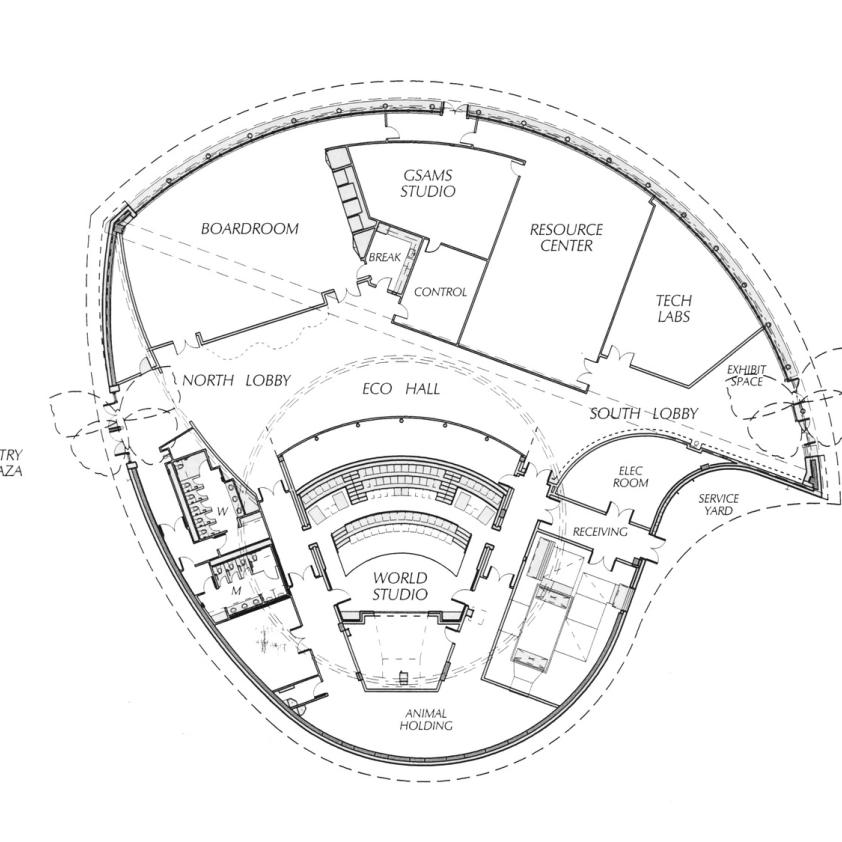 The Conservation Action Resource Center (ARC) demonstrates an integrated approach to sustainability, aligning architectural design with environmental education. The project utilized reclaimed materials such as recycled Coca-Cola bottles and bamboo for interior finishes, as well as salvaged Georgia granite and recycled copper shingles for the exterior. The building is embedded into a hillside to enhance insulation, while a living roof with native vegetation mitigates heat gain, reduces cooling demands, and decreases stormwater runoff. The facility’s fluid design and siting reflect a harmony with the natural landscape, reinforcing conservation principles through both structure and function.