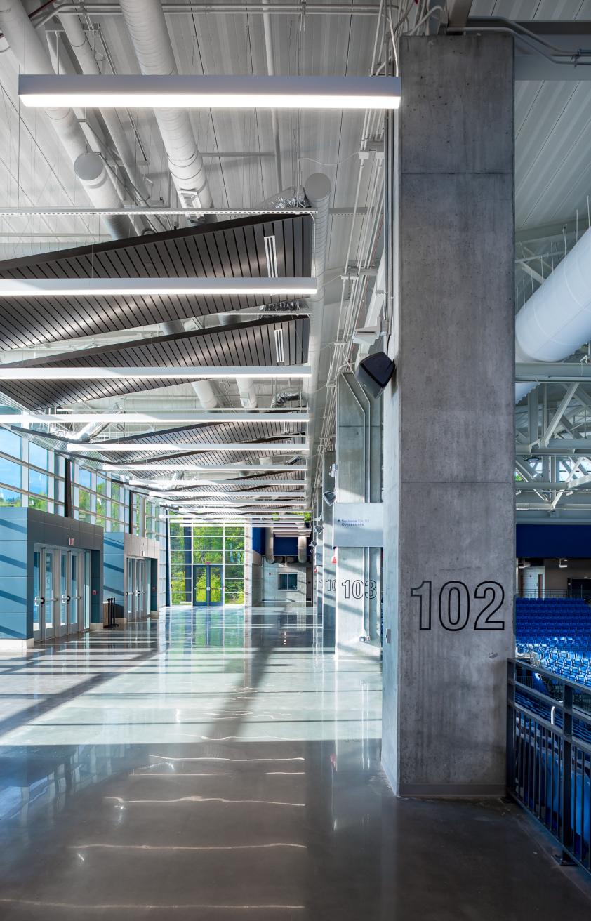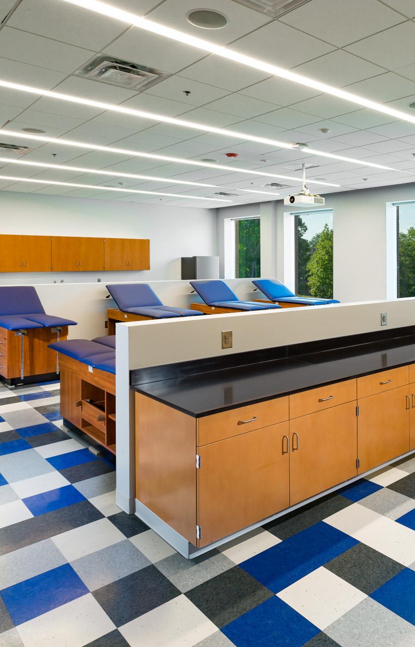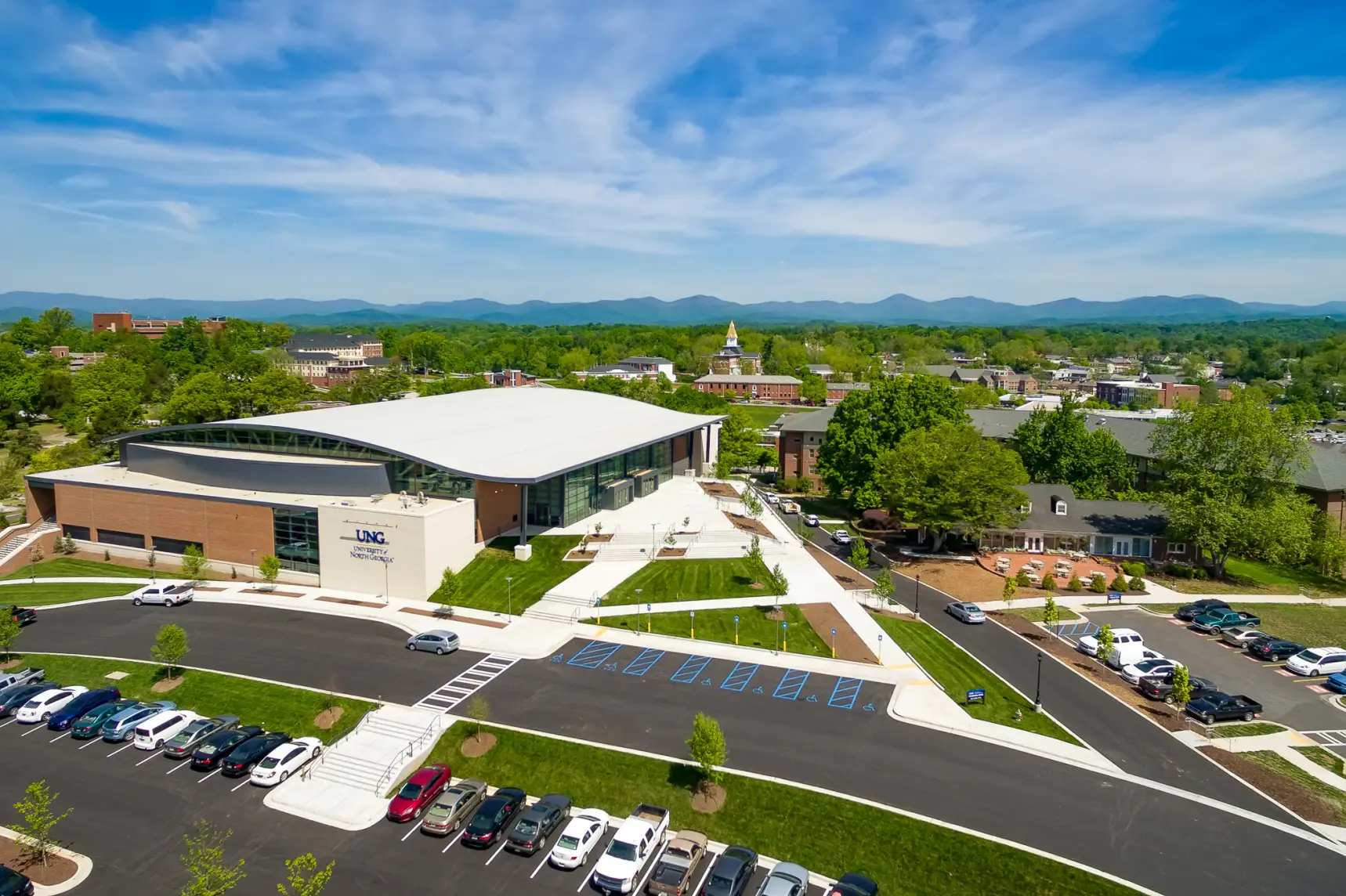 The Convocation Center at the University of North Georgia's Dahlonega campus is a versatile facility designed to host a wide range of academic, athletic, and community events. Situated atop a low knoll, the center includes a modern, flexible event space for up to 4,000 guests, as well as instructional and meeting spaces that cater to the needs of the Health and Physical Education and Military Science programs. Additional features include academic offices, classrooms, an athletic training clinic lab, and support spaces. The project also involves the renovation of 15,000 square feet within the historic Memorial Hall. This center, developed in collaboration with Rossetti Architects, provides a vital hub for student and community engagement, overlooking the Drill Field and enhancing the southern side of the campus.