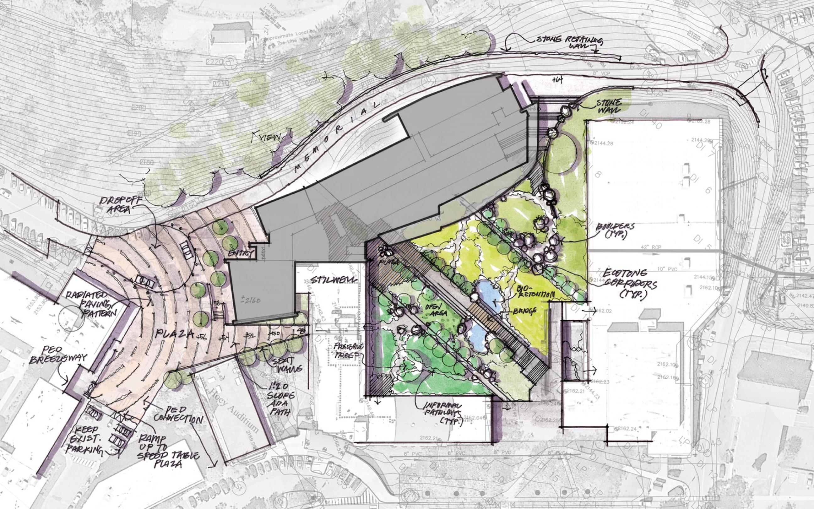 Lord Aeck Sargent designed the Tom Apodaca Science Building to replace Western Carolina University's outdated 1970s Natural Sciences Building, enhancing active learning and research across science disciplines. Connected to the Stillwell Science Building, the new facility integrates interdisciplinary labs, classrooms, and faculty offices while drawing inspiration from western North Carolina's unique history and Cherokee influences. The design honors the region's cultural heritage, with elements aligned to a nearby Cherokee mound and reflecting the area's natural topography. Key gathering spaces like "the gorge" and "the commons" foster collaboration, while sustainability features include biophilic design, a rooftop terrace, and stormwater management. The building reflects the university's commitment to interdisciplinary learning, sustainability, and community engagement.
