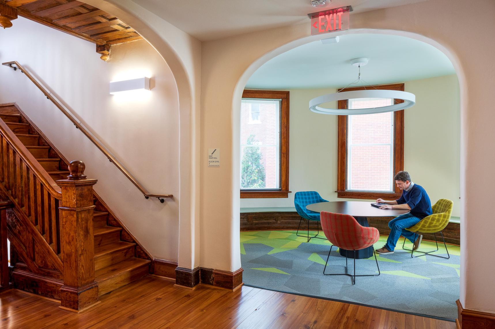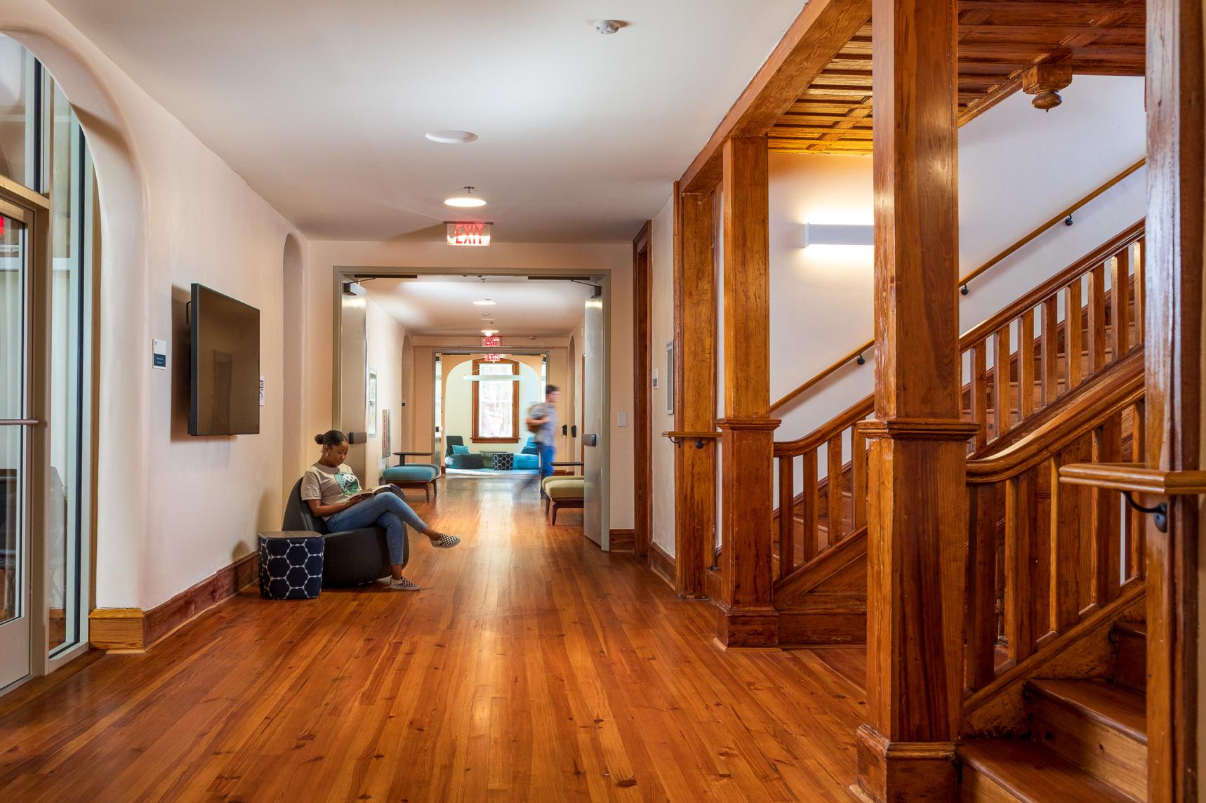 Lord Aeck Sargent led the comprehensive rehabilitation of Terrell Hall at Georgia College & State University, a 1909 structure originally serving as a dormitory. The project sought to preserve and uncover the building's historical elements, which had been concealed by mid-20th century renovations. Efforts included restoring the brick façades, wood elements, and plaster, as well as reintroducing the original lounge spaces to allow natural light throughout. Upgrades encompassed modern HVAC, electrical, and plumbing systems, as well as the installation of an elevator for accessibility while maintaining the building’s historic integrity. This meticulous restoration not only returned Terrell Hall to its architectural roots but also adapted it to contemporary educational needs, ensuring functionality for the Mass Communications Department. The project highlights the challenge of integrating modern amenities into a historic fabric while preserving its significance within the college's iconic front campus.