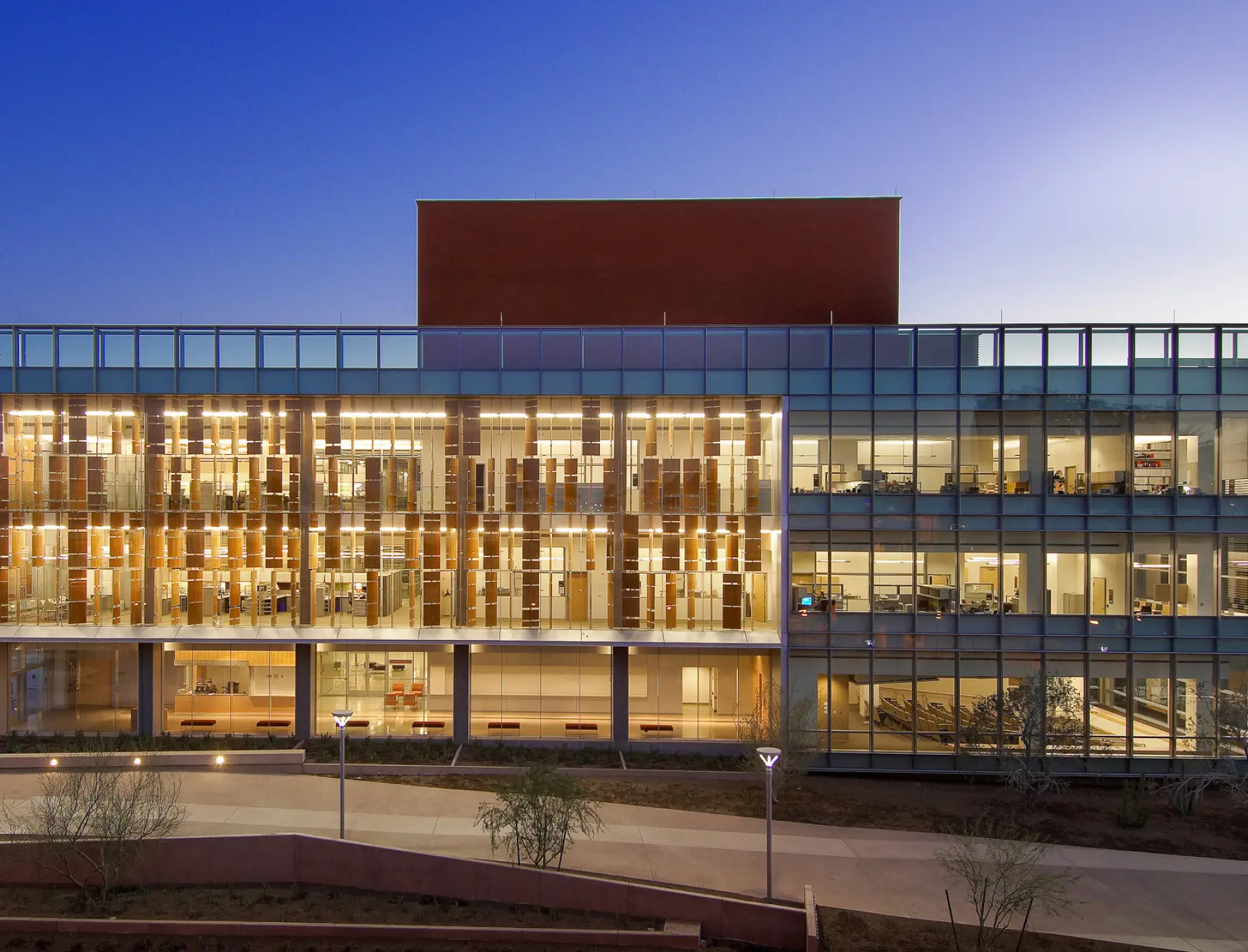 Lord Aeck Sargent spearheaded the design of a cutting-edge interdisciplinary research facility, encompassing Buildings A and B, for Arizona State University's Biodesign Institute. Building A, spanning 176,018 square feet, accommodates nano-research, microbiology, and bioinformatics, featuring highly sensitive research tools in the basement and flexible laboratory space on upper floors. Building B, covering 174,373 square feet, expands upon ASU's commitment to pioneering research, housing high-tech laboratories including BSL-2 and BSL-3 containment areas and light-filled office spaces. Both buildings promote collaboration across scientific fields through flexible design modules, while emphasizing sustainability, earning accolades from the USGBC and R&D Magazine Laboratory of the Year. Collaborating with Gould Evans Associate Architects, the Biodesign Institute stands as a beacon of sustainable design and innovative research.