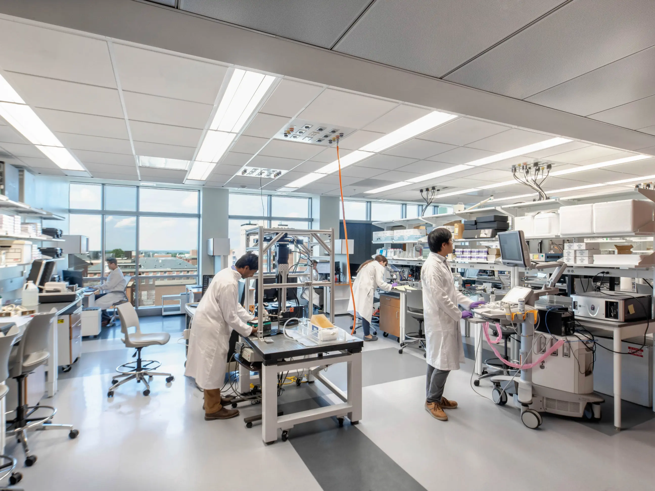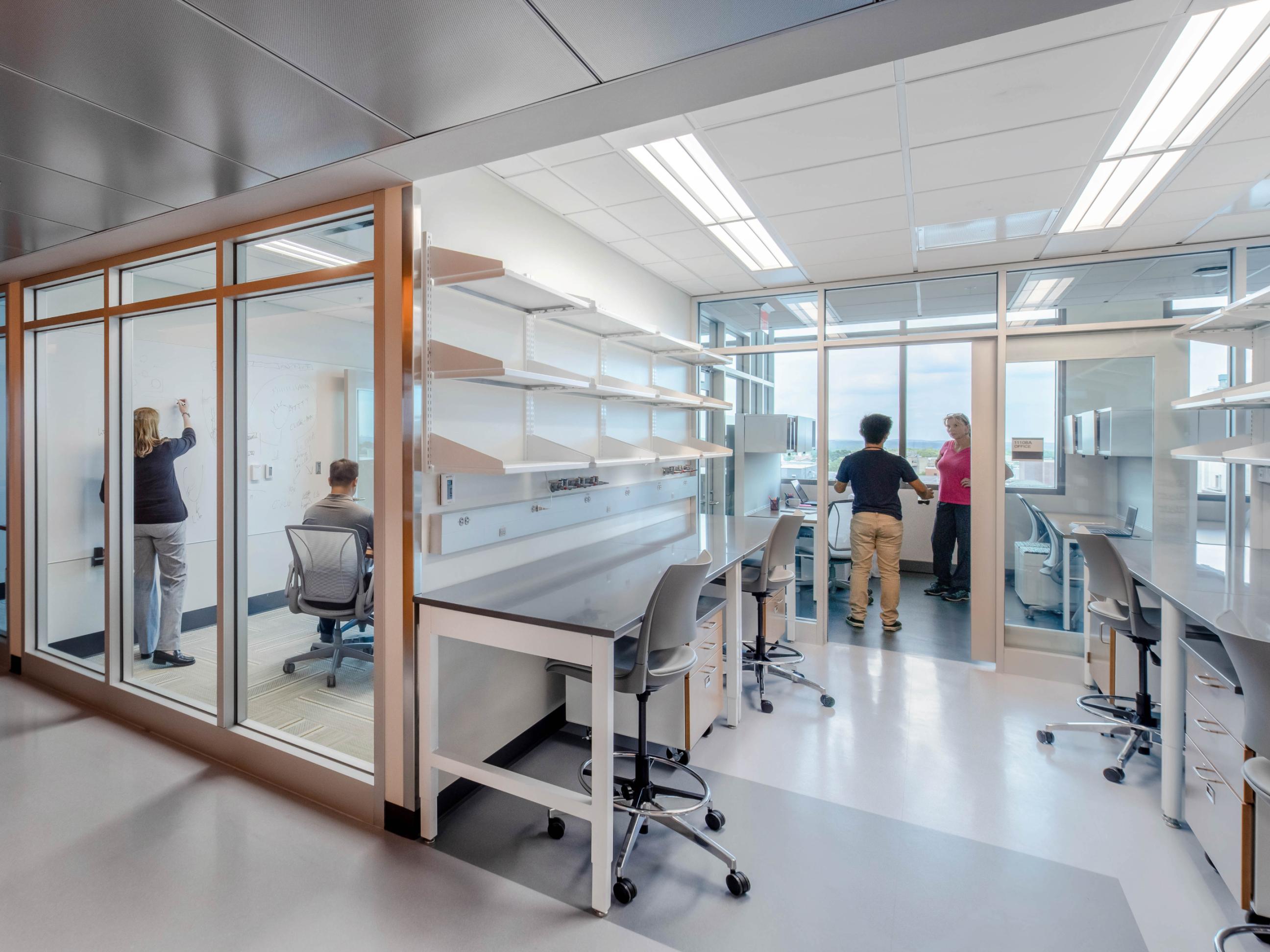 The Mary Ellen Jones Research Building, originally completed in 1978, underwent a comprehensive renovation to modernize its facilities for the University of North Carolina (UNC) School of Medicine. Lord Aeck Sargent conducted a Feasibility Study to guide the renovation process, resulting in the transformation of outdated laboratories into open, flexible spaces conducive to collaborative and interdisciplinary research. Exterior improvements involved recladding a significant portion of the building with a high-performance curtainwall system, enhancing both the working environment and interior daylighting. The renovated facility now houses general biomedical research areas, specialized spaces for initiatives like the UNC Food Allergy Institute and Computational Medicine, Neuroscience Center Research Labs, and dedicated floors for Biomedical Engineering, including undergraduate design labs. Additionally, a centralized meeting and collaboration zone fosters interaction among researchers and staff.