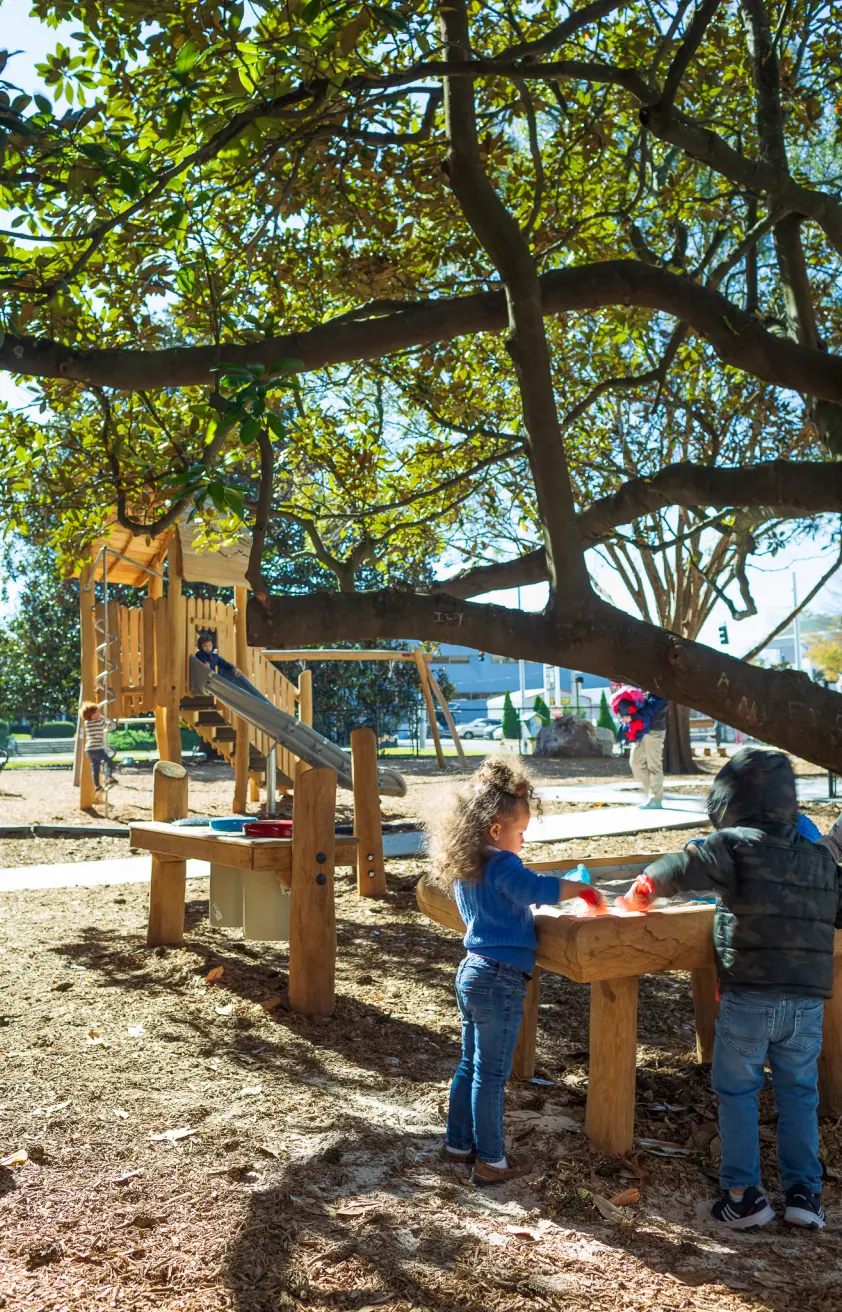 Lord Aeck Sargent’s landscape architecture approach to the Decatur First United Methodist Church project focuses on integrating a new playground into the church’s landscape while preserving its mature trees—a defining feature of the site. Collaborating closely with the City of Decatur, arborists, contractors, and equipment manufacturers, the firm’s role emphasized minimizing environmental impact through careful spatial planning, equipment selection, and siting strategies that protect the established canopy. This project, designed to meet Pre-K requirements, also seeks to create an accessible, inviting space for community engagement. Through mindful integration of natural elements with functional play structures, Lord Aeck Sargent balances the church's educational needs with sustainable landscape stewardship, reinforcing a community-oriented approach to design.