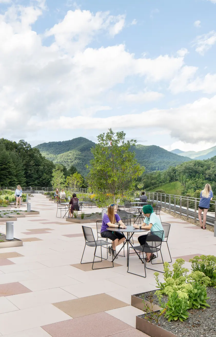Lord Aeck Sargent's design for Western Carolina University’s new Science building carefully integrates landscape architecture with the cultural and natural history of the region. The site layout, shaped by the location of a historical Cherokee mound, aligns key architectural elements with the mound's center, embedding a sense of heritage into the new landscape. This design approach extends to the surrounding topography, where the undulating ridgeline informs the curved forms of the building’s south façade. A new outdoor quadrangle anchors the site, fostering pedestrian connectivity while echoing local materials with freestanding granite walls—a nod to the campus’s historical landscape features. The building and landscape are interwoven, with wood-clad structures and natural slate façades bridging indoor and outdoor spaces, referencing both regional vernacular architecture and the University's roots. The integration of native materials and the creation of social spaces that blur boundaries between built and natural environments highlight a design approach that responds thoughtfully to the cultural context.
