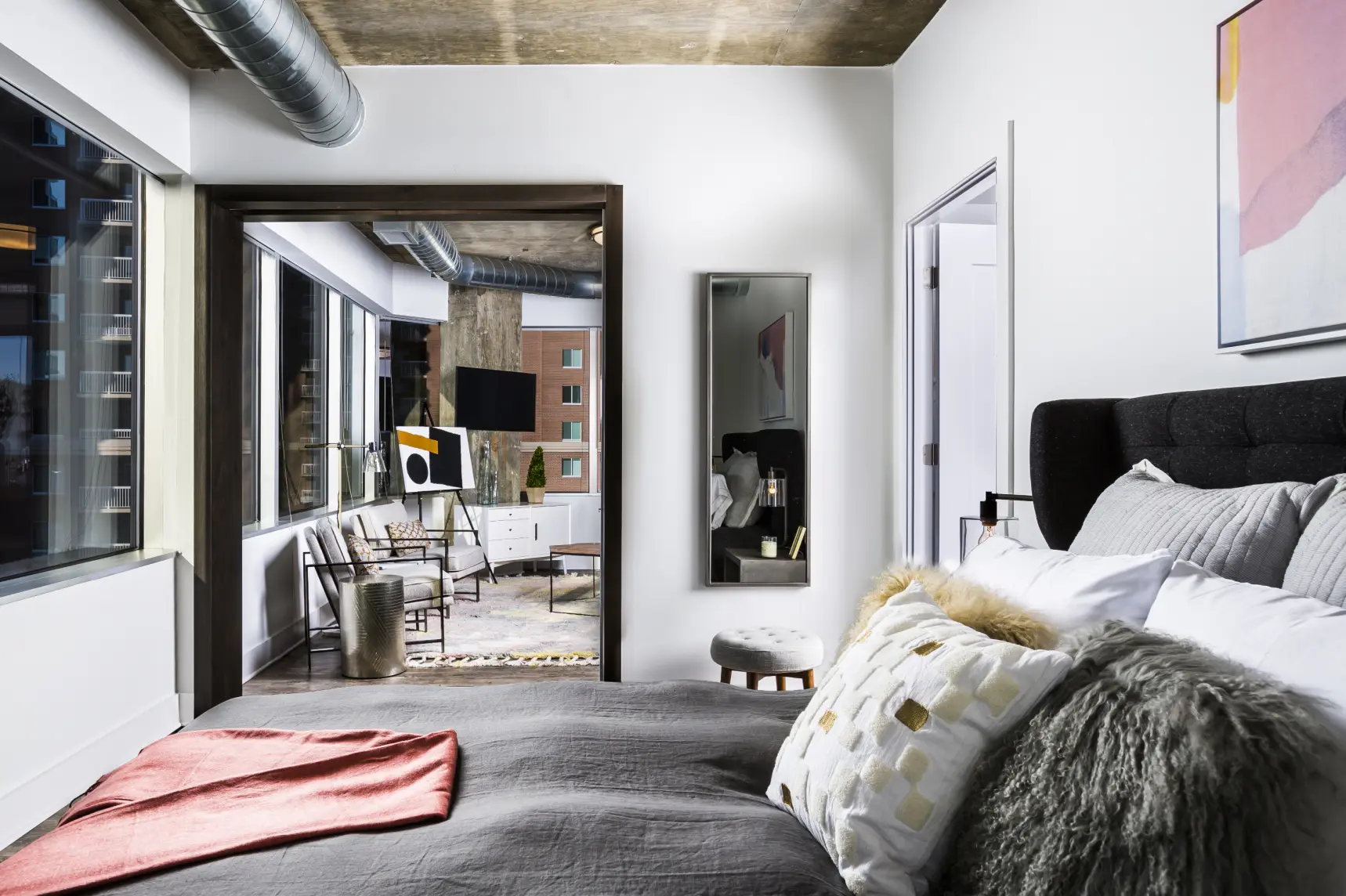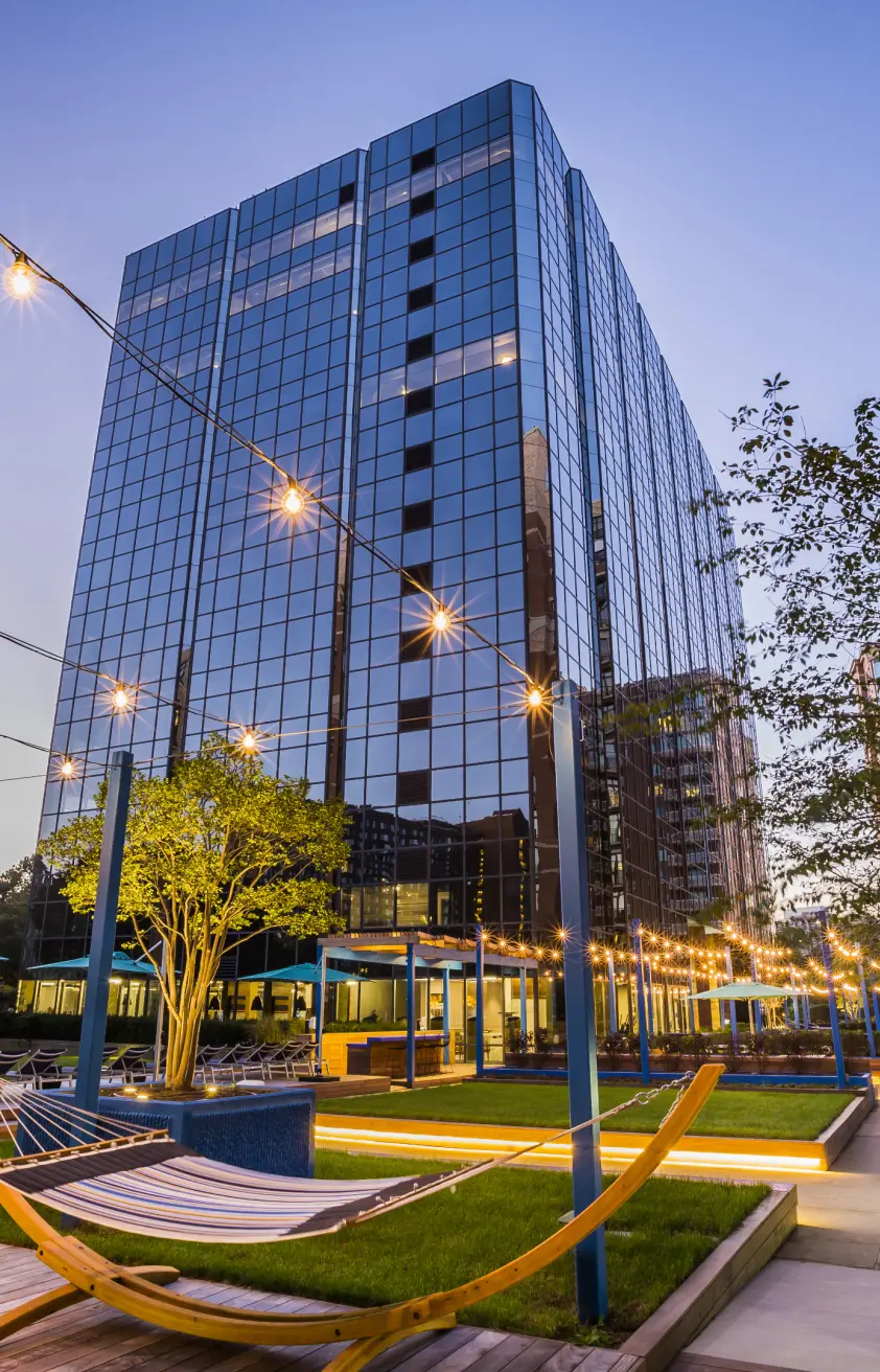 The 4501 Ford Ave e-lofts project in Alexandria, Virginia, reimagined by Lord Aeck Sargent, involves the adaptive reuse of a 14-story office building originally constructed in the 1980s. This transformation creates approximately 200 flexible live/work loft spaces designed to accommodate both residential and office functions within the same units. These units, ranging from 650 to 1,200 square feet, feature 10-foot exposed ceilings, large windows, movable pocket walls, Euro-style kitchens, walk-in showers, and full-size washer/dryers, with robust IT infrastructure. The design emphasizes the building’s original tall ceilings and open floor plans, aligning with its office architecture. The conversion includes maintaining the four-level below-grade parking structure and integrating roughly 7,200 square feet of common amenities on the ground level to support the mixed-use environment. In collaboration with Gensler for interior design and visioning, the project demonstrates a commitment to sustainability and responsive design by leveraging existing structures and integrating shared spaces such as a rooftop patio and sports areas, providing a cohesive living environment to meet contemporary demands for versatile living and working spaces.