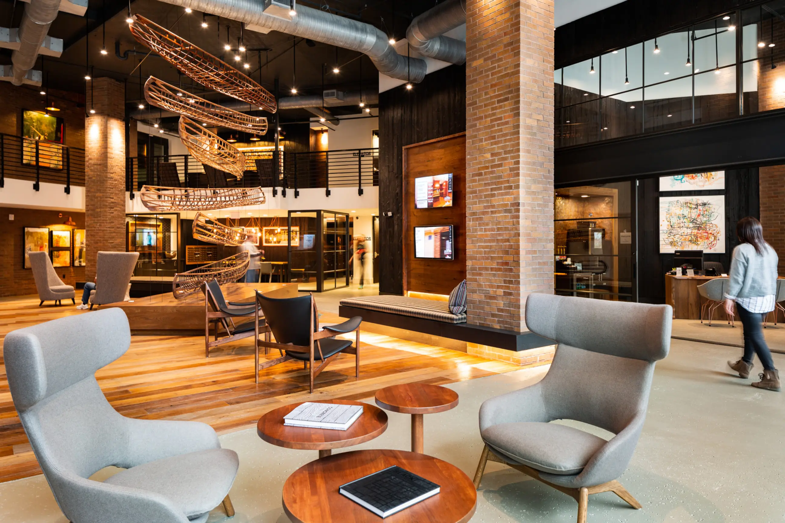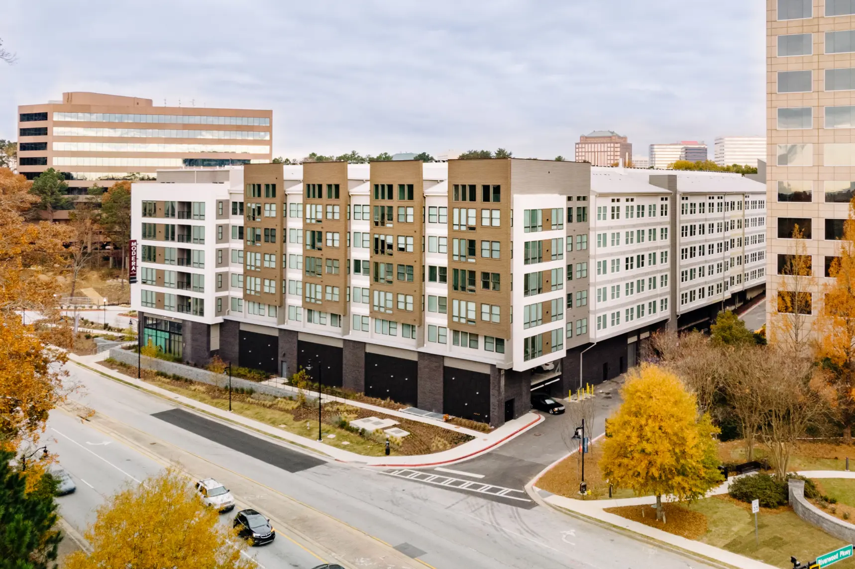 Vinings Lofts and Apartments (formerly Modera Vinings), situated at the start of the Silver Comet Trail, exemplifies a multifamily mixed-use project designed to encourage an active lifestyle. Overlooking a pond, the development integrates 269 luxury apartment units ranging from one to three bedrooms across five levels atop a podium featuring retail, leasing, and parking facilities. The site includes amenities such as a large pool with swim lanes, a 24-hour fitness center, a trail around the pond, and a two-story clubroom with access to a central courtyard and a screened porch. The project enhances community connectivity and promotes sustainable living through its strategic location and comprehensive on-site amenities.