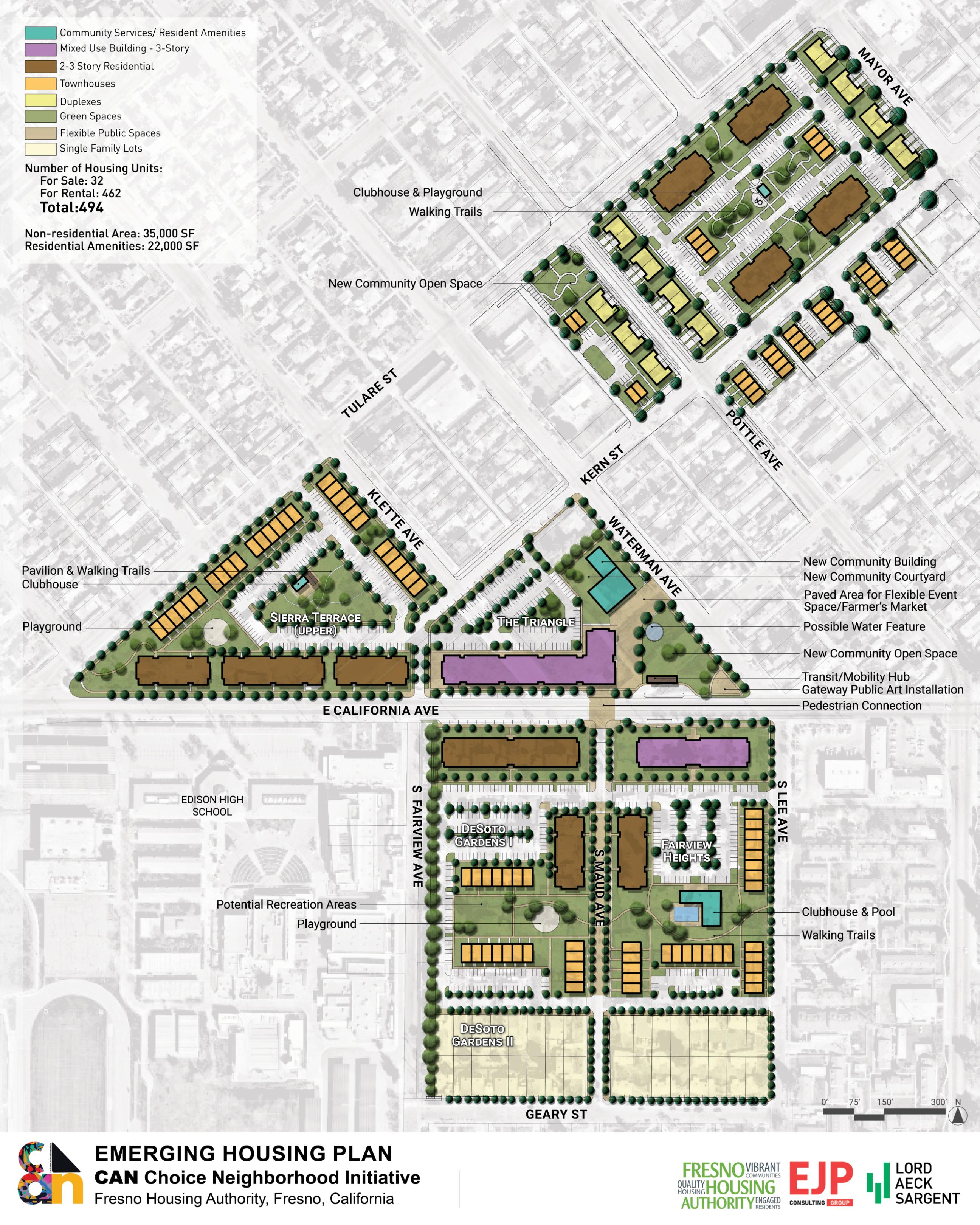 Fresno Housing Authority received a Choice Neighborhoods Planning Grant in 2020 to develop a revitalization plan for the West Fresno California Avenue Neighborhood (CAN). The plan focused on three key areas: People, Housing, and Neighborhood. Lord Aeck Sargent (LAS) was engaged as part of the Planning Coordinator team, with a focus on developing the Neighborhood and Housing Plan for CAN.