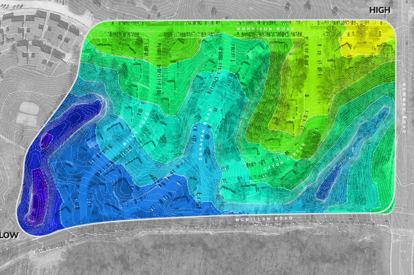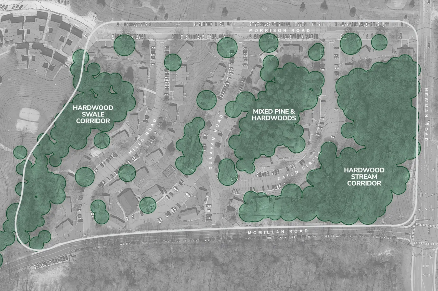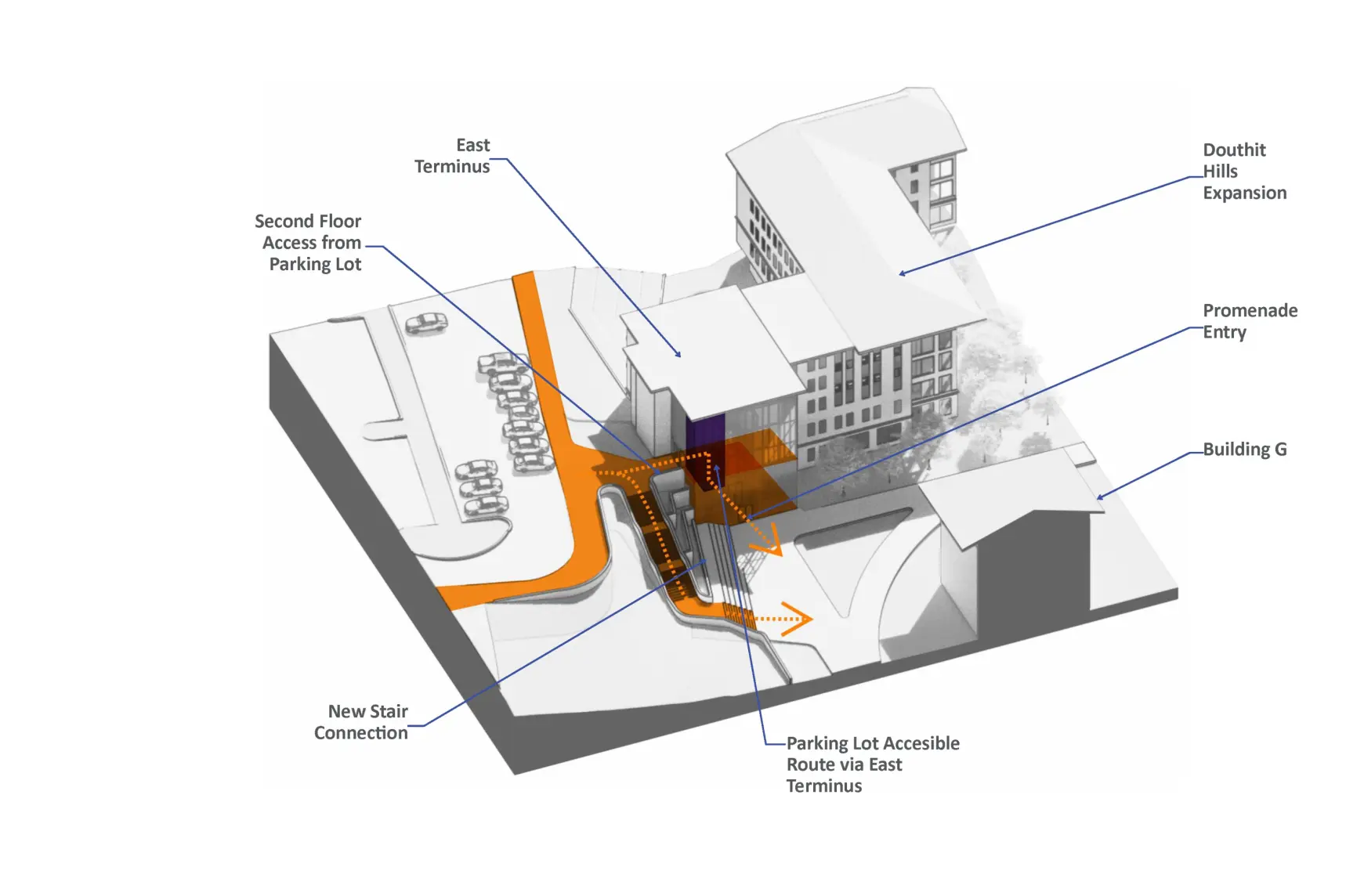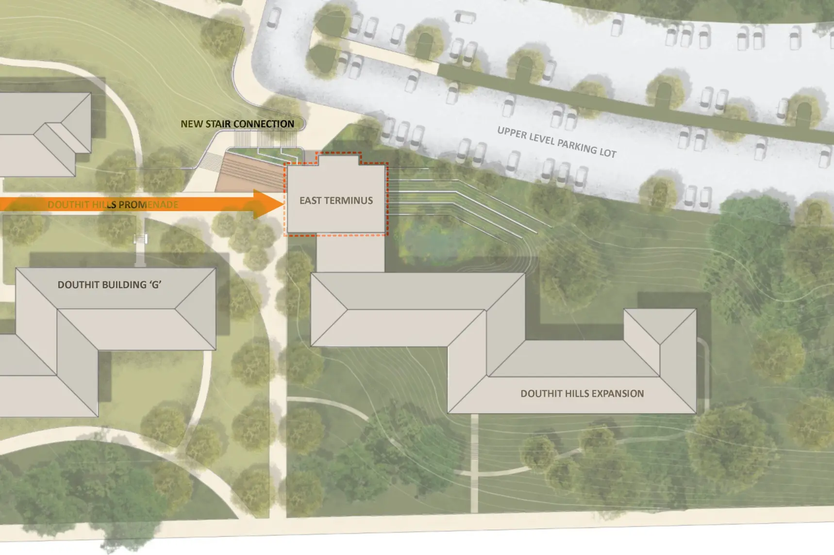 The Thornhill Village Housing and Dining Feasibility Study reimagines a low density precinct of one story structures into a vibrant residential community with five mid rise buildings, a Community Building, and an energy plant. The development will provide 2,130 revenue generating beds and 71 RA beds, with dining for 950 (plus 160 exterior seats), collaboration and meeting areas, and office space for Dining and Auxiliary Enterprises. Organized into RA groupings of 30 students per floor, the new housing is designed as a connected, park like setting that fosters community, integrates with the broader campus, and serves as a major expansion of first year housing capacity.