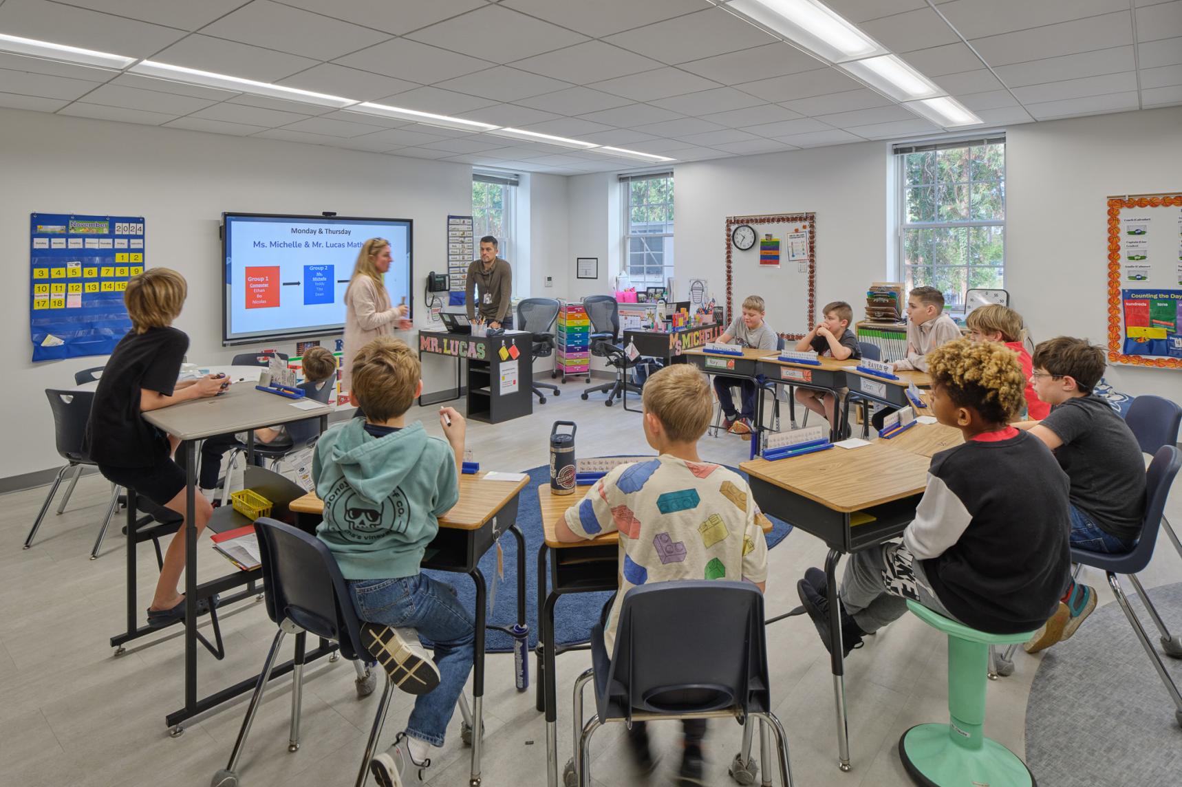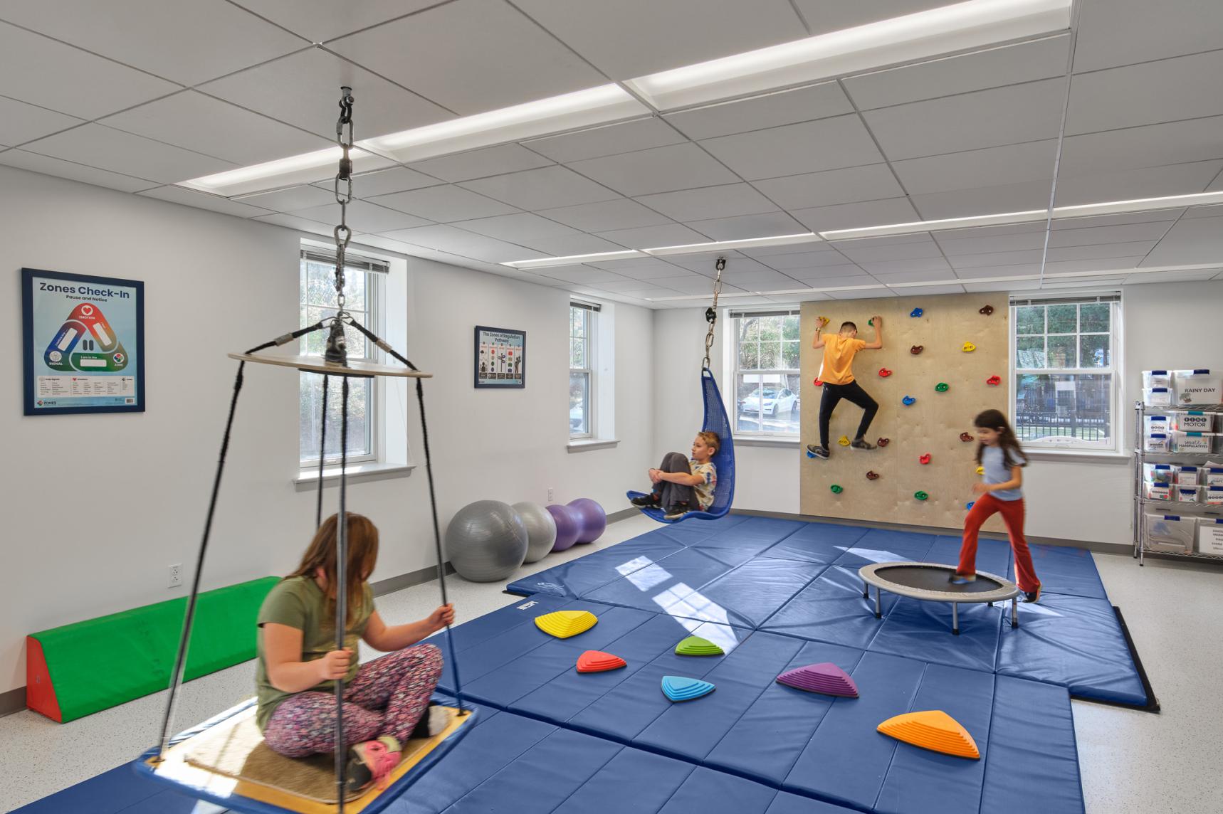 Lord Aeck Sargent successfully completed the renovation and conversion of a three-story, 28,440-square-foot building in Bethesda, Maryland, for the Diener School. The project transformed the existing structure into a state-of-the-art educational facility tailored to the needs of the school's neurodiverse K-8 student population. The design involved the full interior conversion of the former office building to create specialized learning spaces, integrating therapeutic support services directly into the classrooms. The exterior was also enhanced to include outdoor play areas, providing students with spaces for physical activity and experiential learning. This renovation marks the completion of the first phase of the Diener School’s expansion. Future phases are anticipated to include the addition of a gymnasium and expanded recreational areas, further supporting the school’s projected enrollment growth. Throughout the project, the design team ensured that the building met all local standards while maintaining sensitivity to the surrounding natural environment.