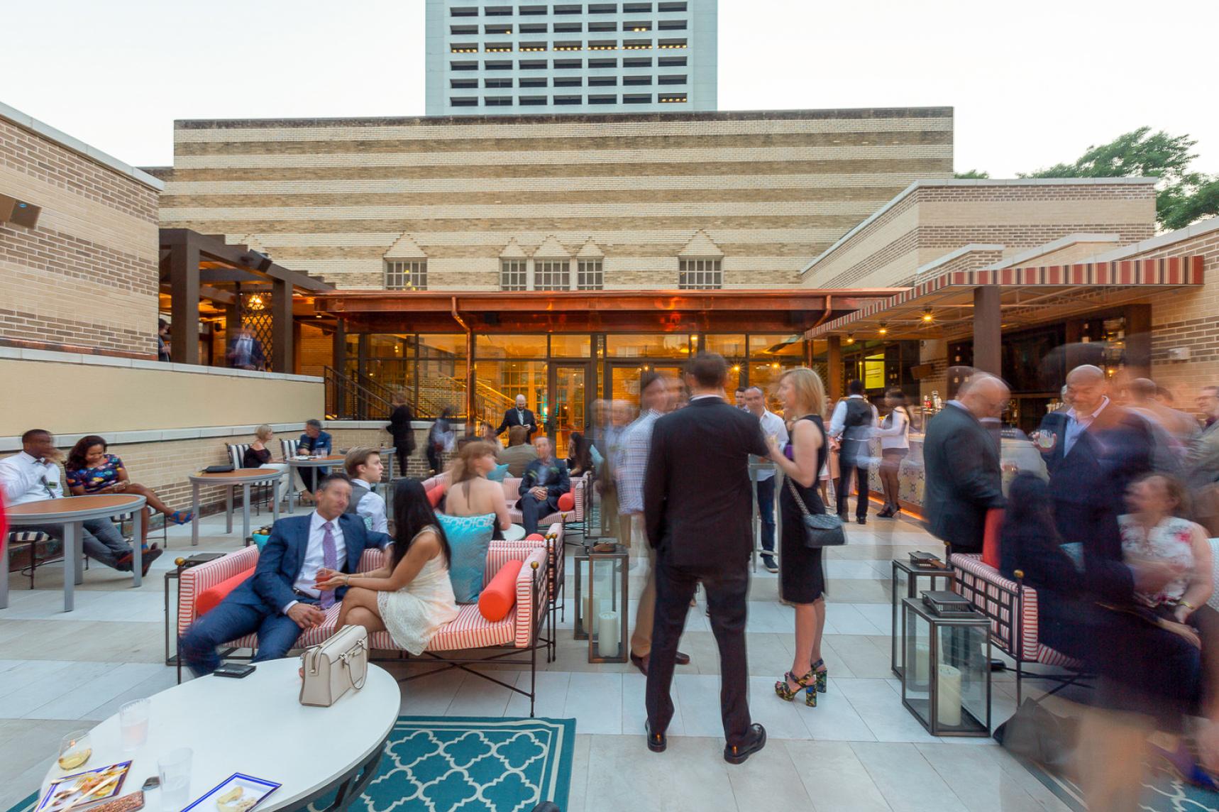 Lord Aeck Sargent collaborated with the Fox Theatre to design the Marquee Club, a premium event space featuring five bars and two rooftop terraces, providing, for the first time, a view overlooking the iconic Fox marquee and Peachtree Street. The four-level space accommodates 350 guests and includes seating for 100, a small kitchen, and two walk-in beer coolers. With entrances from both Peachtree Street and the Arcade, the design enlivens the storefront, enhancing the street life while offering a rich and inviting atmosphere. The project balances sophisticated interior spaces with outdoor terraces, which are especially popular during Atlanta's balmy evenings. The historic storefront windows were restored to offer a teasing glimpse into the club, seamlessly blending the original 1929 architecture with modern interventions.