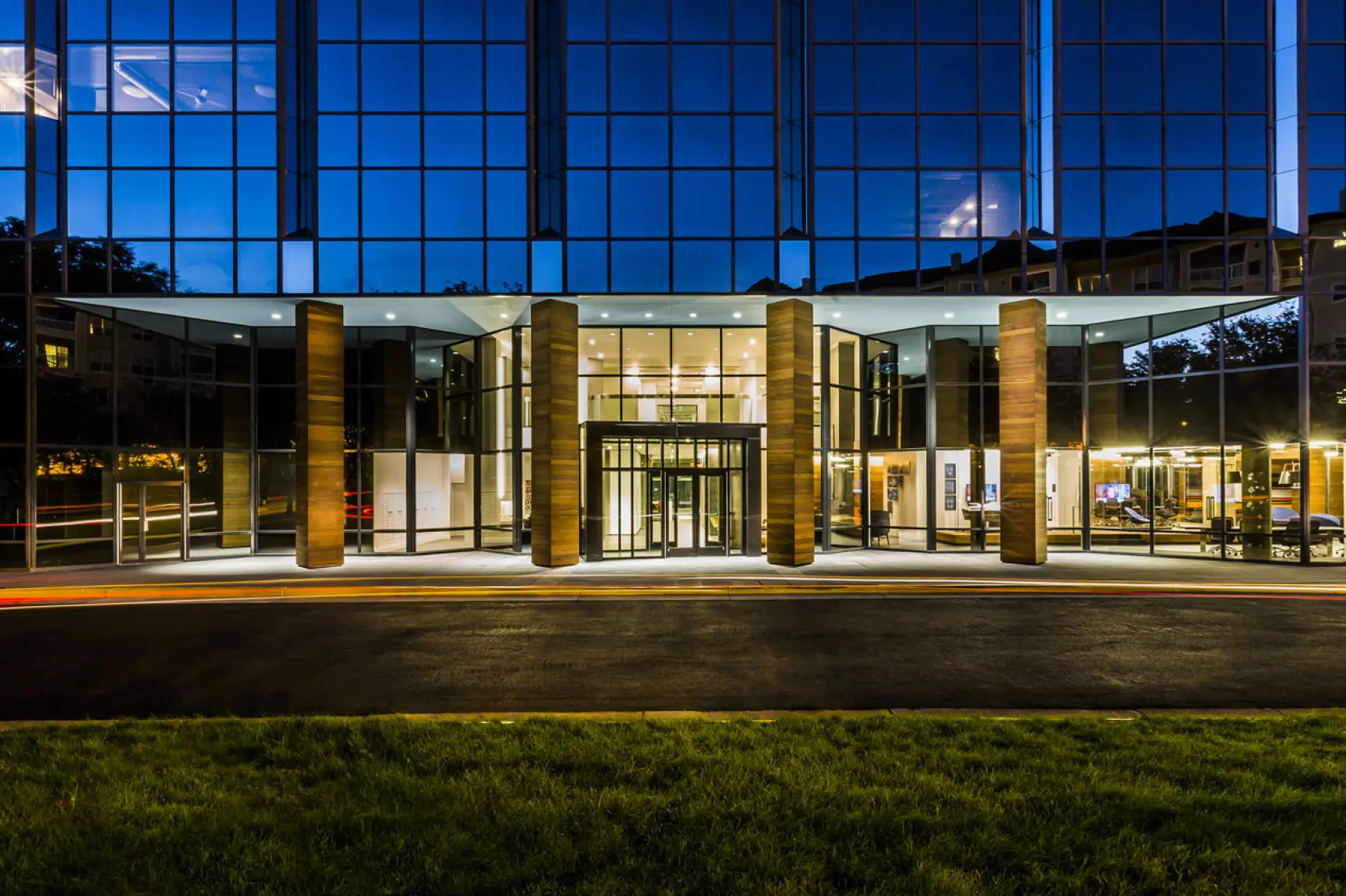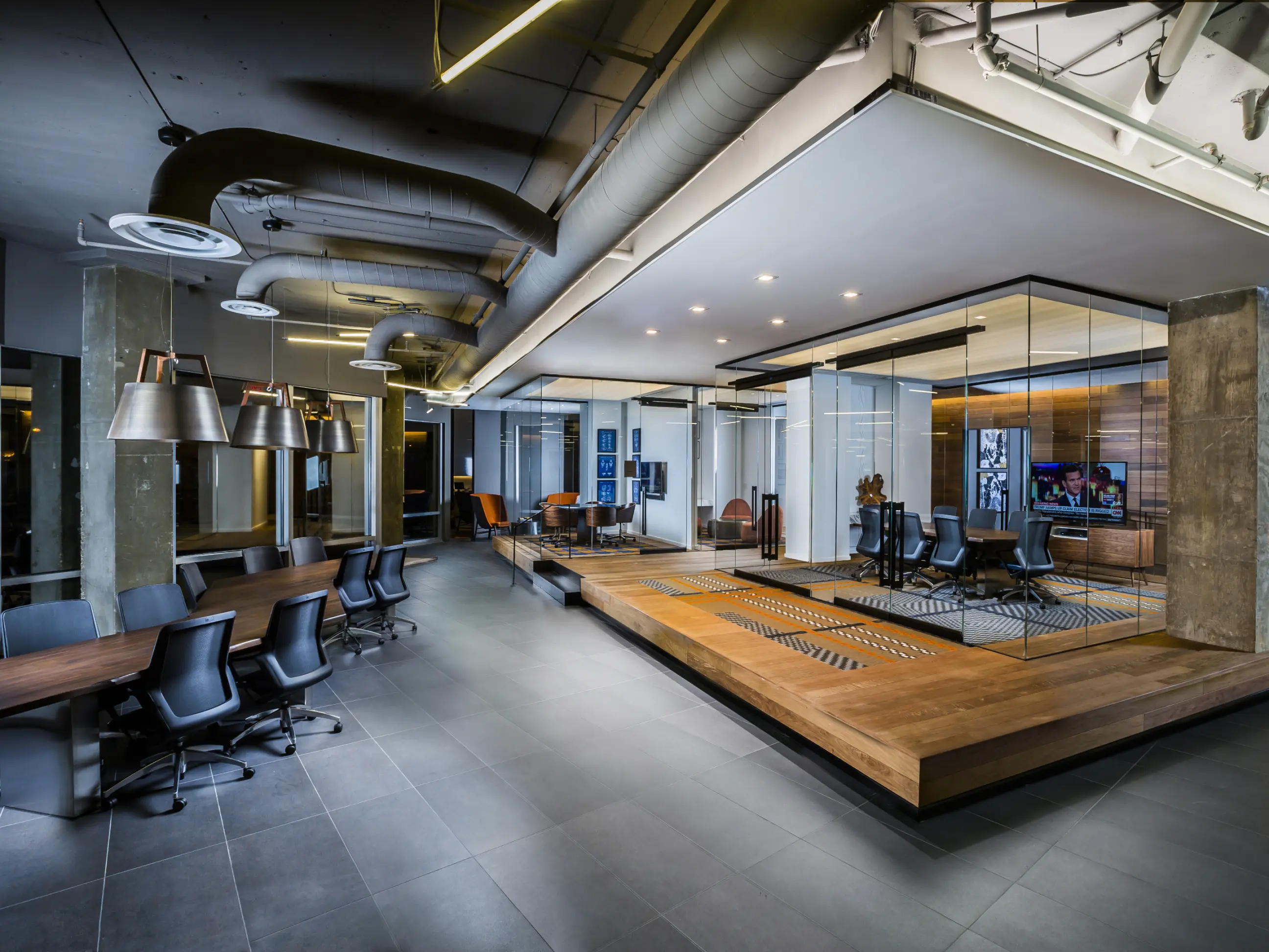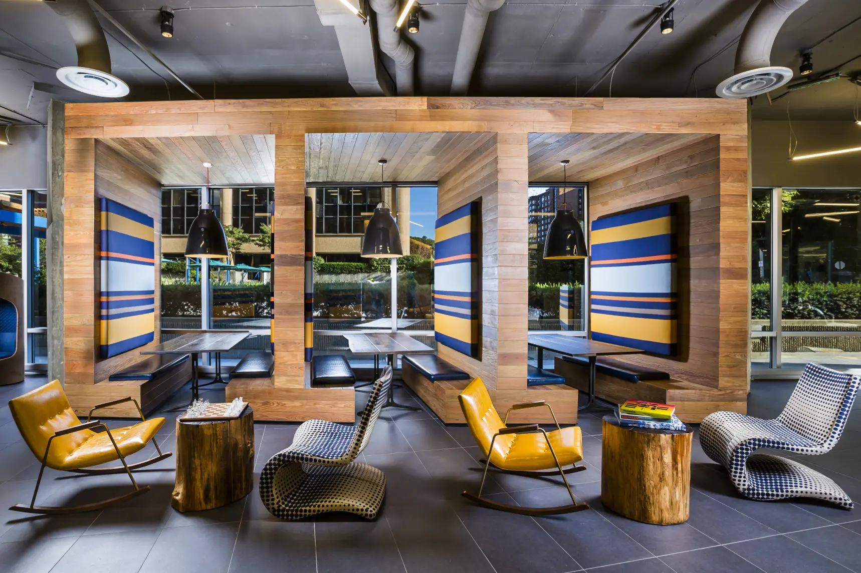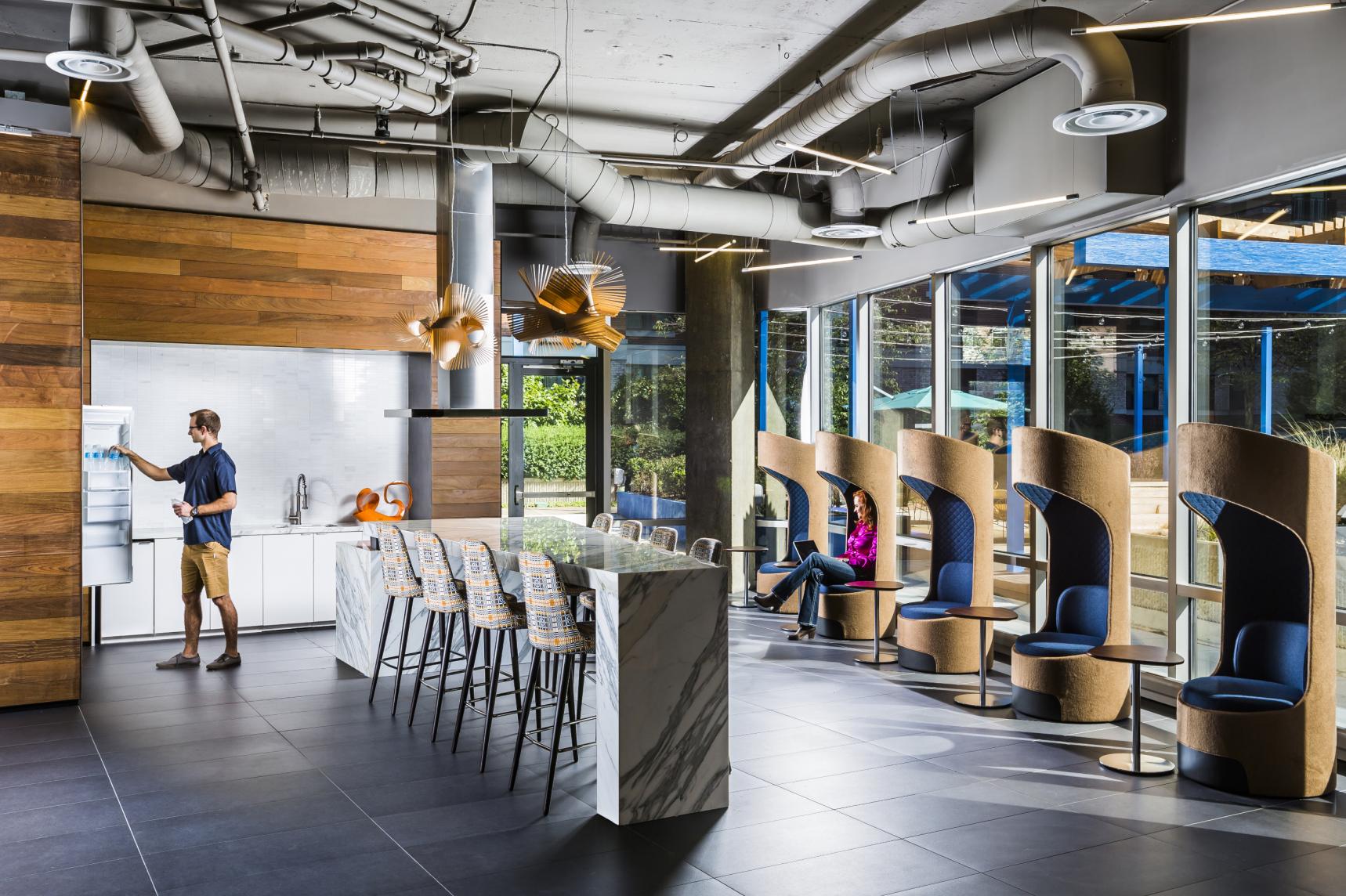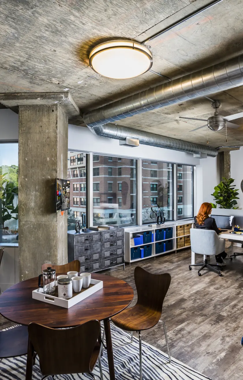 The 4501 Ford Ave e-lofts project involved the adaptive reuse of a fourteen-story office building from the 1980s into a mixed-use development accommodating both residential and office spaces. The building, located in Alexandria, Virginia, was transformed by Lord Aeck Sargent into approximately 200 flexible units that could serve as living spaces, workspaces, or a combination of both. This design leveraged the building's existing tall ceilings, large windows, and open floor plans to create highly amenitized loft-style spaces. Each unit features movable pocket walls, Euro-style kitchens, and robust IT infrastructure with fiber optic service, catering to modern office needs. The project included about 7,200 square feet of shared amenities on the ground level and maintained the existing four-level below-grade parking deck to support the building's mixed occupancy. The design emphasized flexibility and modern functionality, with units equipped for high-tech office use or comfortable living. In collaboration with Gensler for interior design and visioning, the project integrated sustainable practices and created a cohesive working environment with amenities such as a rooftop patio, lounge areas, and active sports spaces. This conversion responded to the increasing demand for flexible living and working environments, transforming a vacant office building into a vibrant, multifunctional space.