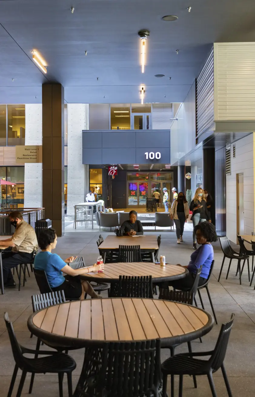 Colony Square, a pioneering mixed-use development from the late 1960s and 1970s, required revitalization to reclaim its status in Midtown Atlanta. In collaboration with Beyer Blinder Belle, Lord Aeck Sargent led the transformation, focusing on creating a dynamic public space at the heart of the neighborhood. The project involved opening the formerly enclosed retail mall to the sky, introducing accessible pathways from Peachtree Street, and updating office lobbies and retail areas. New structures, such as Buildings 300 and 500, along with outdoor areas like The Plaza and The Grove, redefine the site's urban landscape, fostering interaction and connectivity. These interventions honor Colony Square's original vision while addressing modern needs for engaging communal spaces.