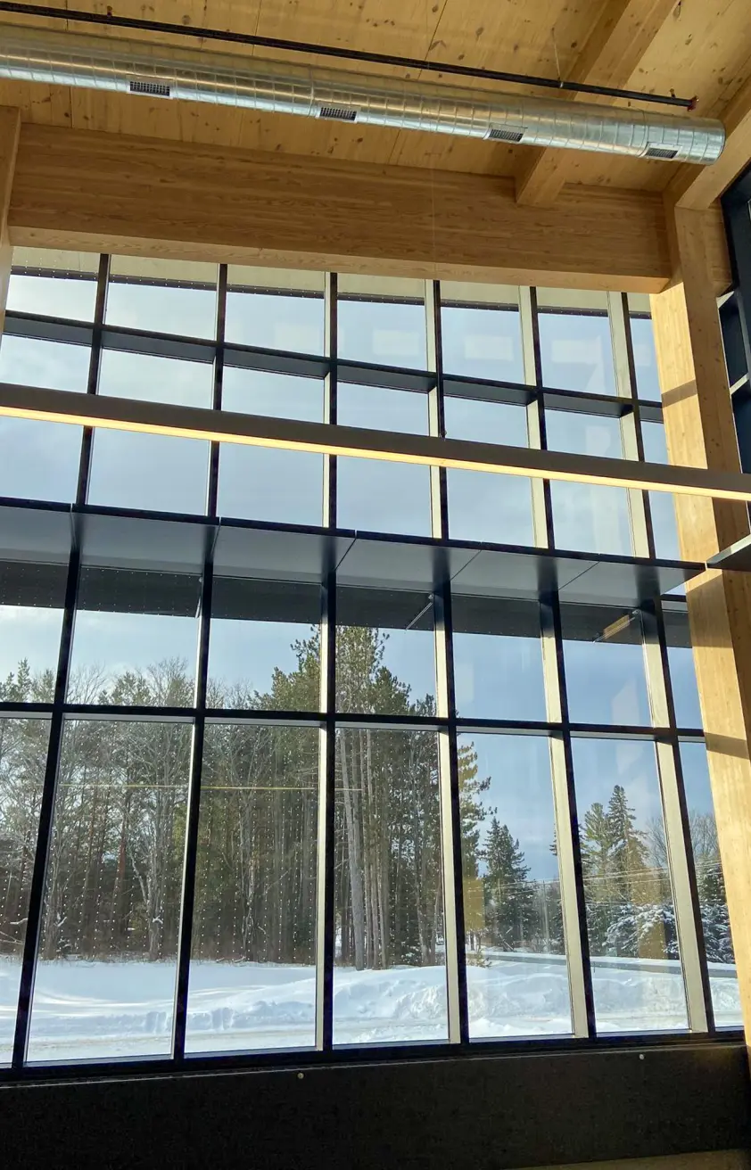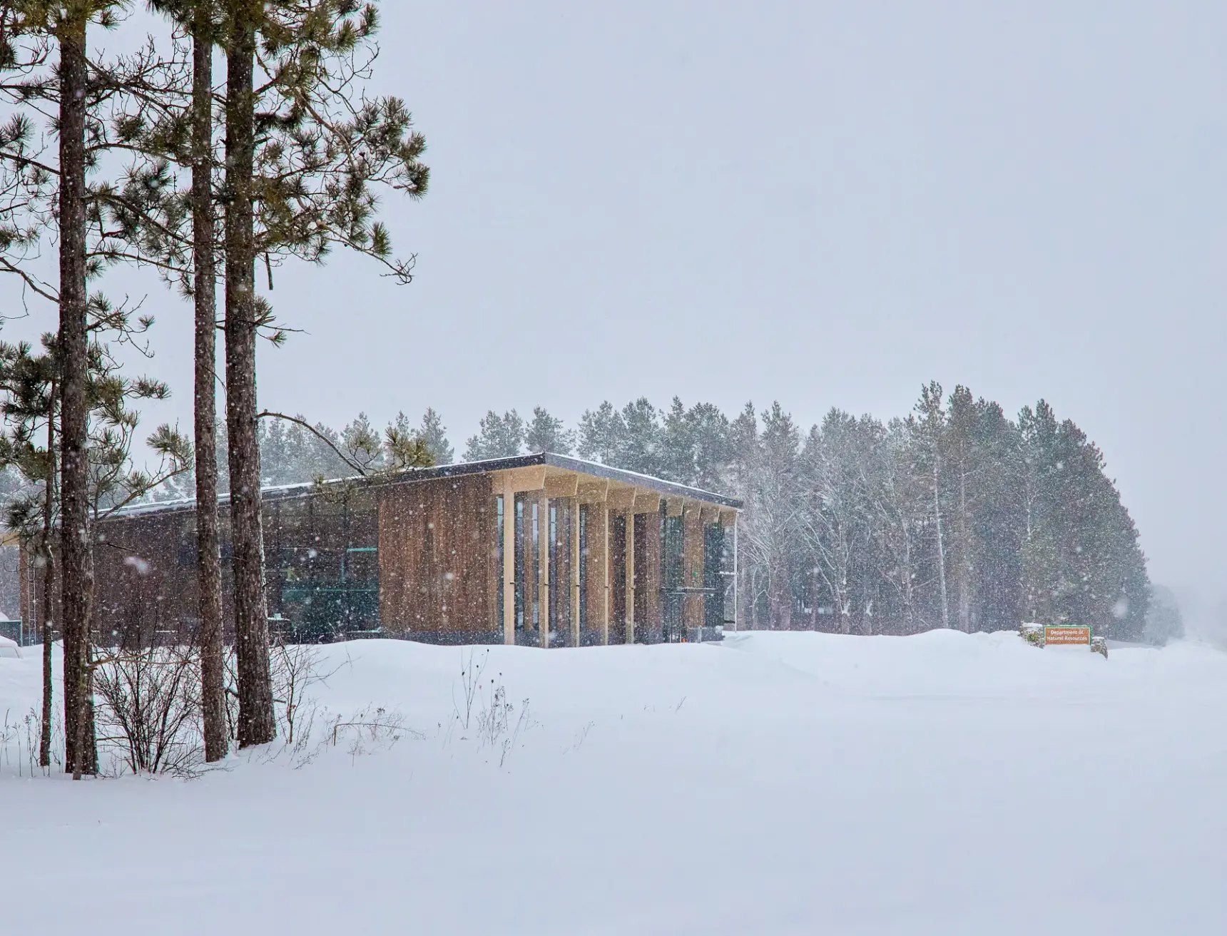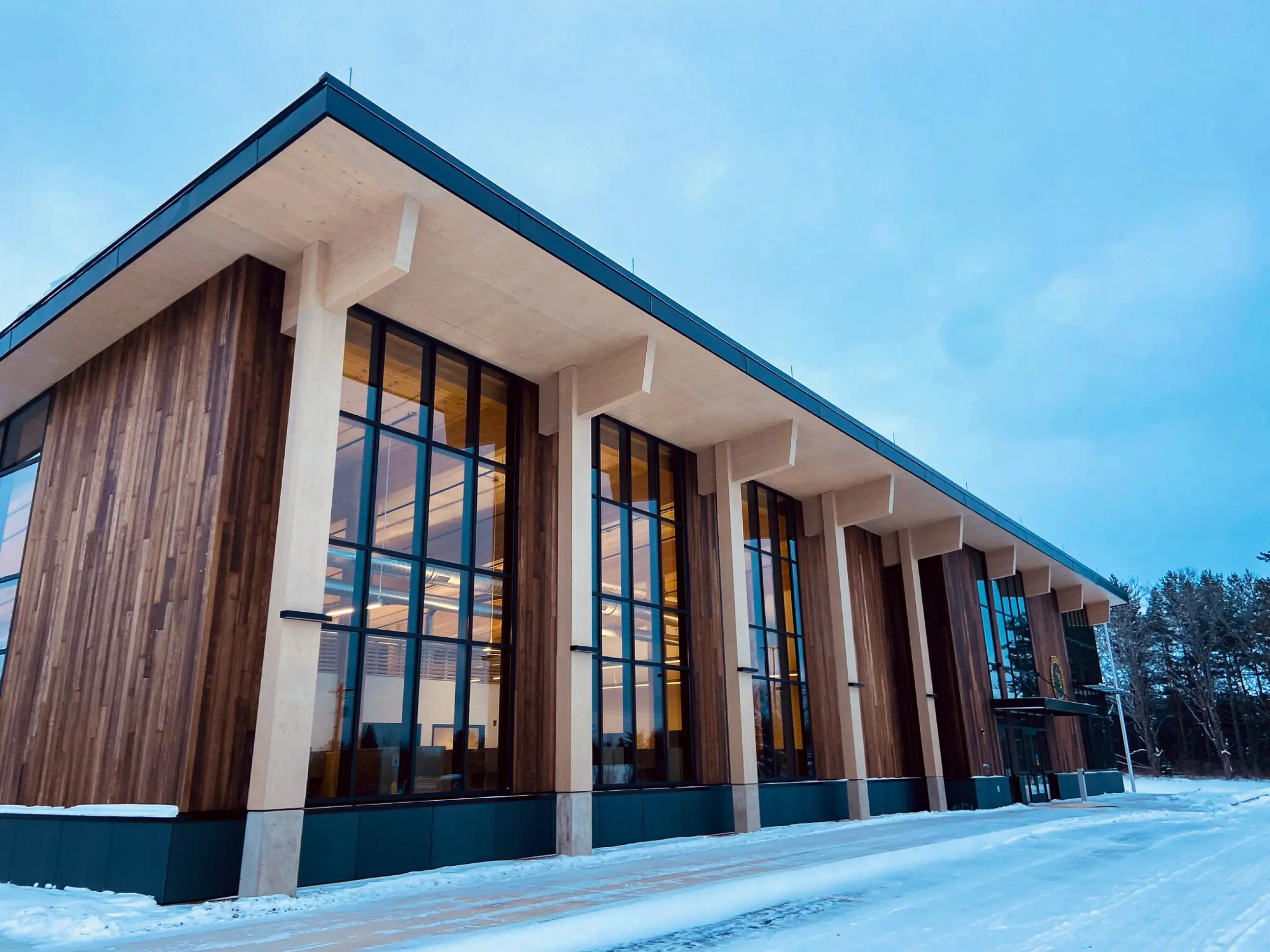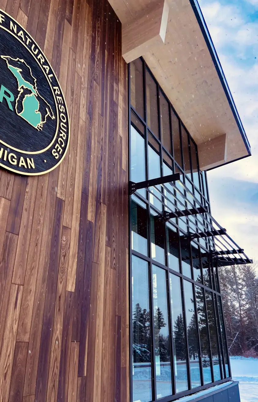 The Newberry Customer Service Center & Storage Facility is a completed state-of-the-art facility designed to support the operational needs of the Michigan Department of Natural Resources (DNR) while integrating sustainable construction methods. The two-phase project consists of a 13,900-square-foot Customer Service Center and a 16,000-square-foot storage facility for DNR equipment. The design prominently features mass timber panel technology, utilizing Michigan-sourced red pine for structural components, demonstrating the feasibility of regional timber use in large-scale construction. In addition to housing DNR operations, the facility includes a community room, providing a dedicated space for public engagement and training. Located approximately one mile north of its former site, the completed project stands as a model for sustainable building practices and an investment in Michigan’s forestry industry.
