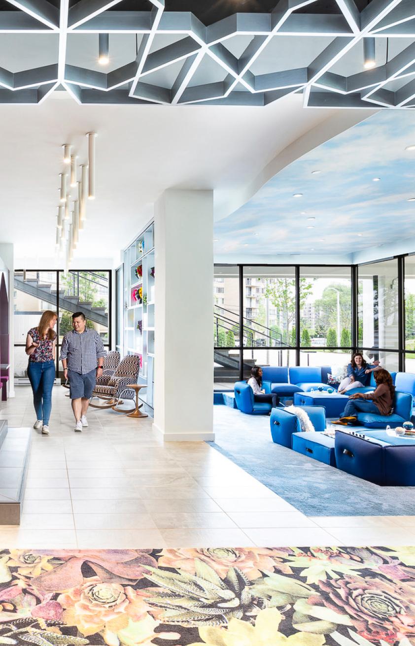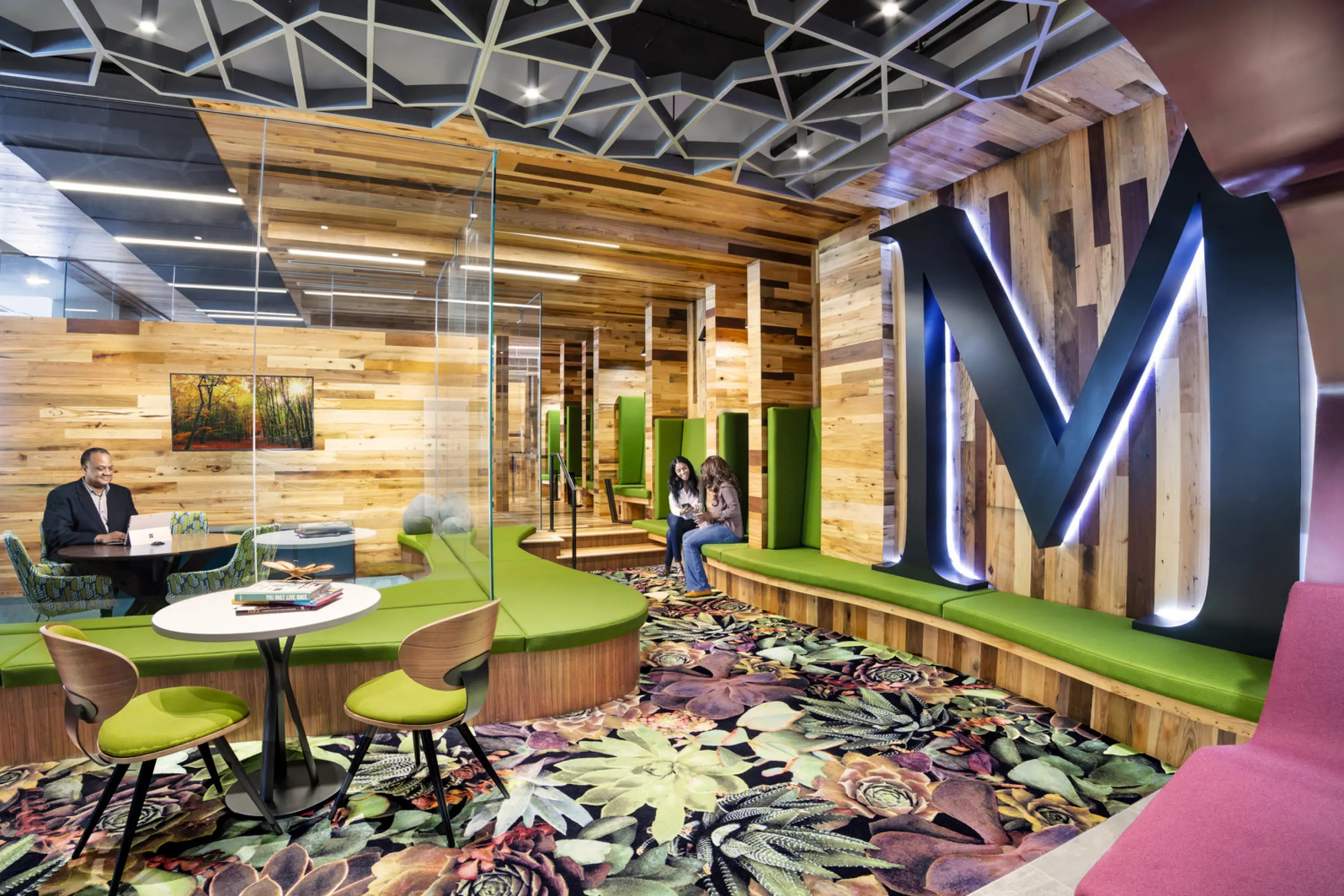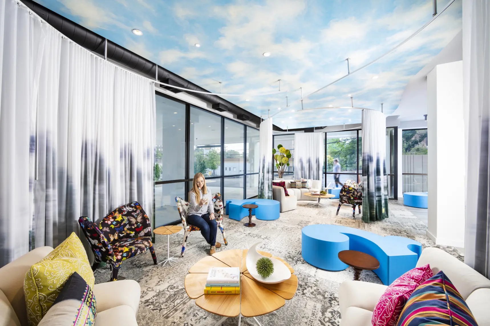 The Mission Lofts project at 5600 Columbia Pike in Fairfax County, Virginia, involved the adaptive reuse and renovation of a ten-story, 50-year-old office building into a vibrant mixed-use development comprising 156 high-end live/work units. The building's existing features, such as tall ceilings, large windows, and a concrete frame, were leveraged to support the live/work functionality. Key modifications included exposed concrete floors and ceilings, transforming a former mechanical pump room into a fitness center, and replacing surface parking with a wildflower meadow to enhance biodiversity. The design incorporated exterior courtyards, sundecks, conference rooms, varied workspaces, a community kitchen, fitness center, music practice rooms, and a dog wash, creating a variety of spaces for tenants to live, work, and socialize.