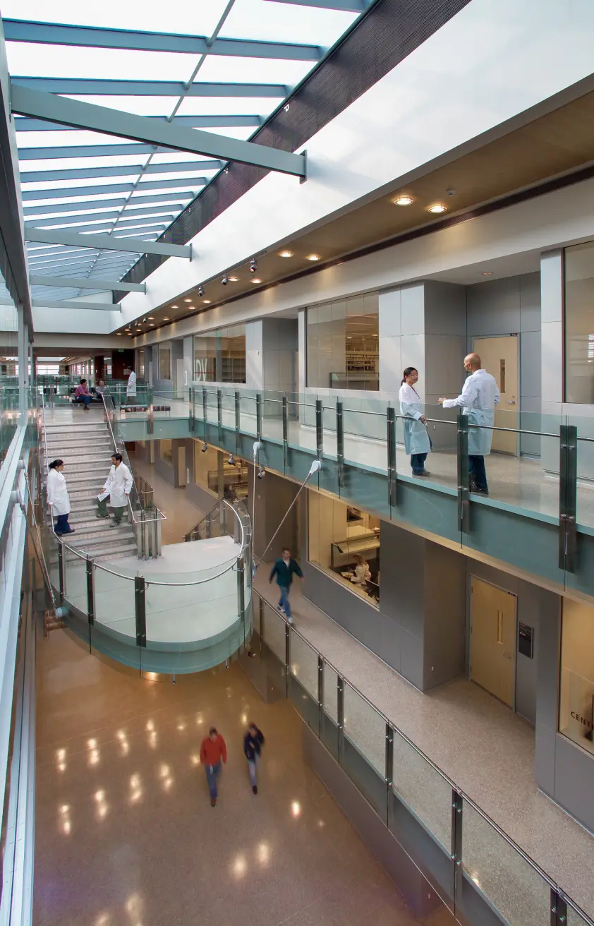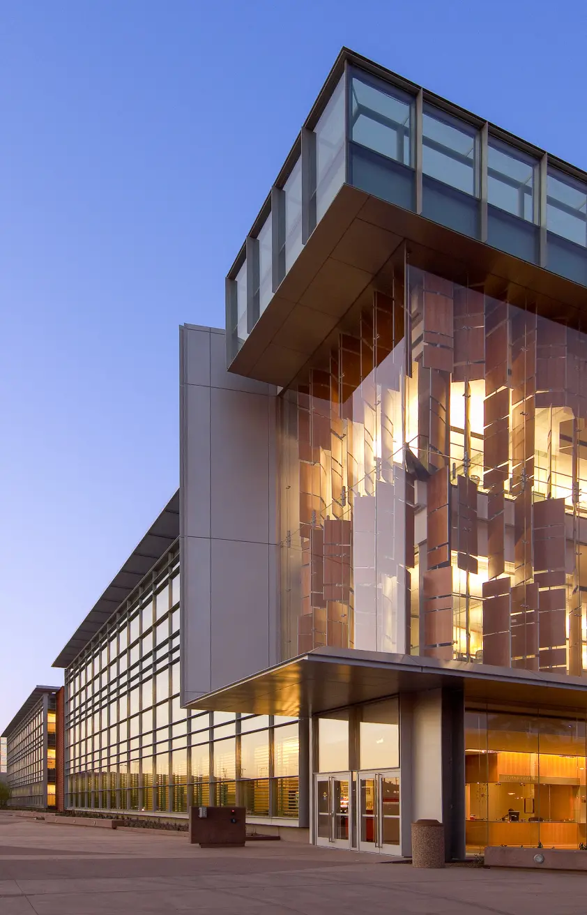 The Biodesign Institute at Arizona State University represents an advanced example of sustainable and adaptable architectural design. This multi-phase facility integrates life sciences and engineering disciplines to support cutting-edge research in biotechnology, bioengineering, and nanotechnology. Its design emphasizes flexibility, featuring modular research spaces that can evolve with scientific advancements. From an environmental standpoint, the Institute incorporates numerous sustainable features, including drought-tolerant landscaping, a stormwater management system, and energy-efficient systems that meet rigorous LEED standards. Building A achieved LEED Gold, while Building B attained LEED Platinum certification. The project’s sustainable strategy extends from site selection, which leverages urban infrastructure and transit options, to the use of low-VOC materials, high-efficiency water and energy systems, and the optimization of natural light. The architectural approach facilitates interdisciplinary collaboration while prioritizing energy efficiency and environmental responsibility, positioning the Institute as a leader in ecological research facility design. This project was designed in partnership with Multistudio (formerly Gould Evans Associate Architects).