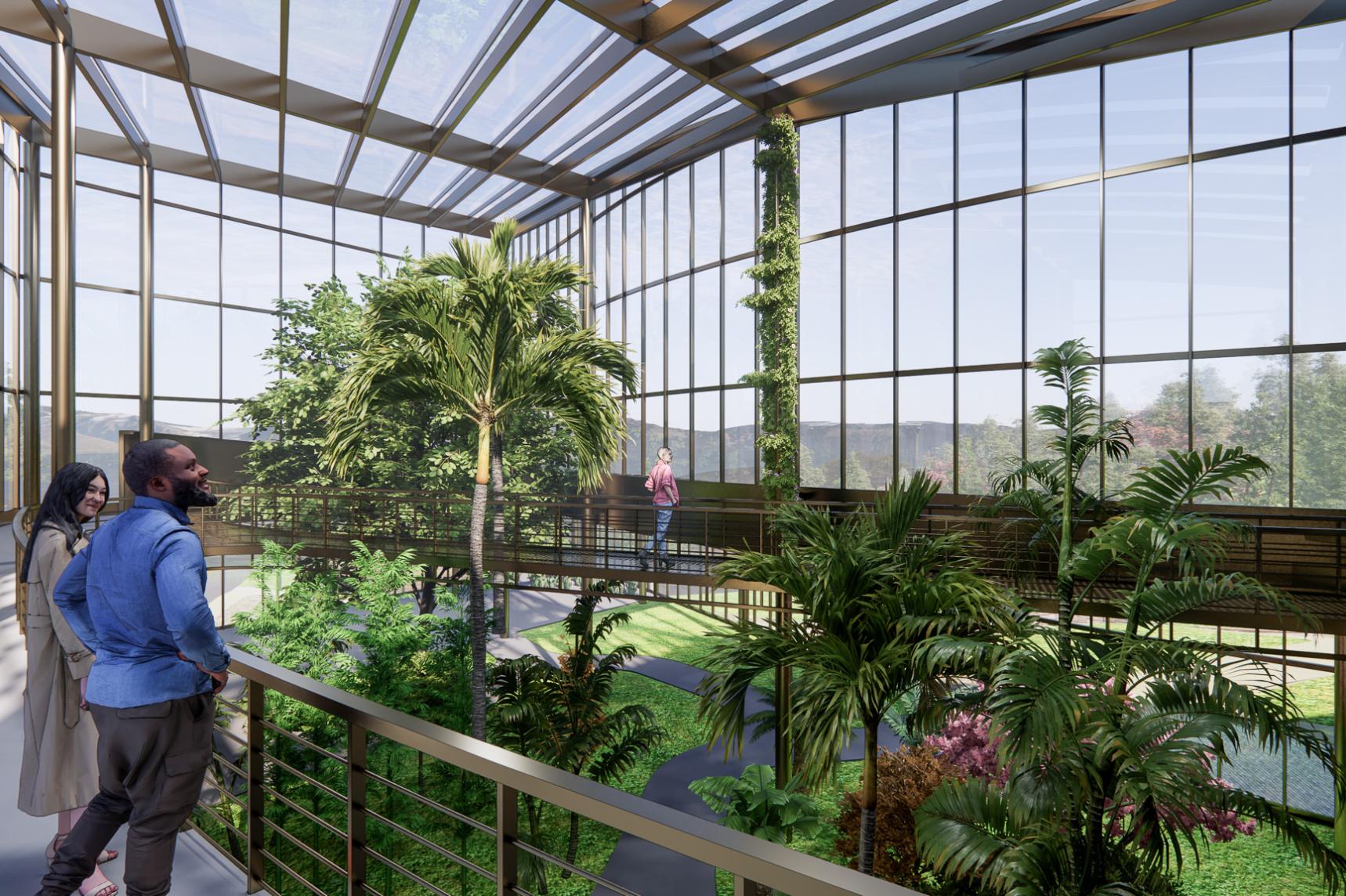 CBEaR is a new highly sustainable, cutting edge, multi-purpose facility featuring conservatories, greenhouses, research spaces, classrooms and support spaces. Targeting Living Building Core and Energy Petal Certification, the project receives services from adjacent geothermal wells, photovoltaic panels and wind turbines. CBEaR will serve as home for biological research, but also welcomes visitors who can tour the tropical, desert, cold, and temperate conservatories, and then meet in the large classrooms which open out to the gardens.