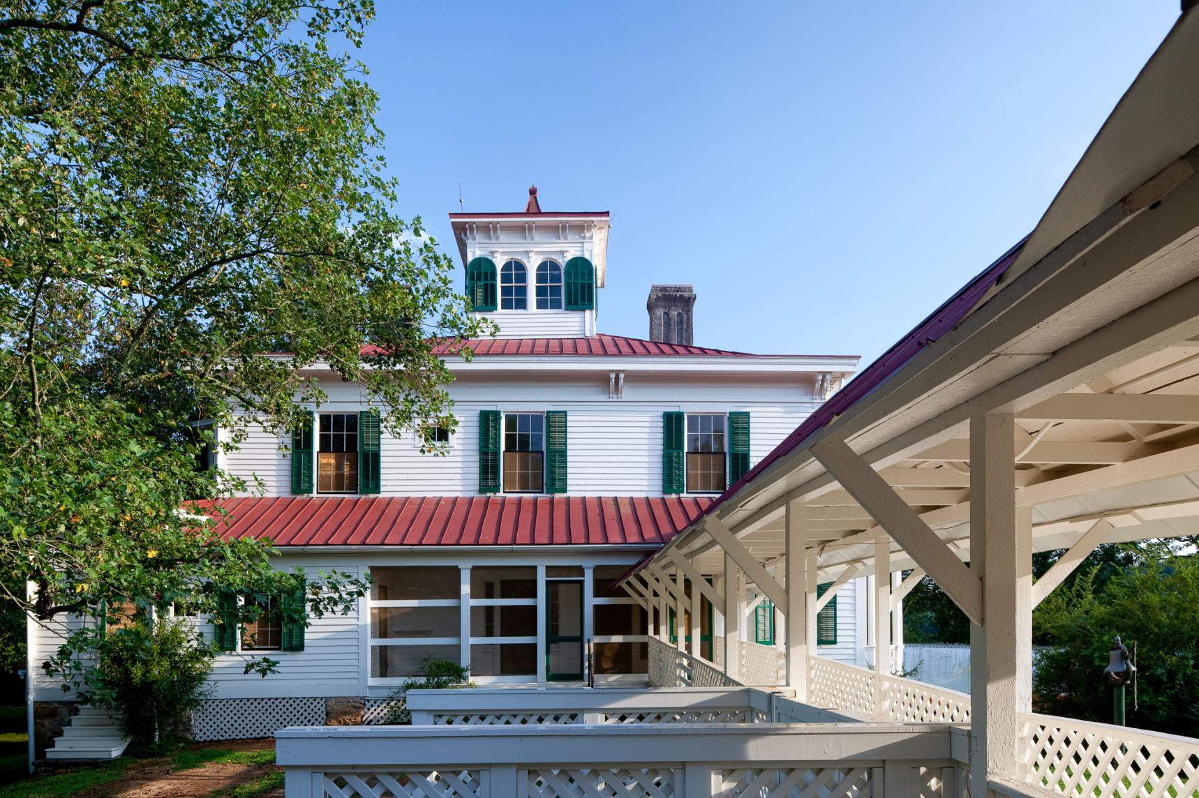 The restoration project at Hardman Farm in the Nacoochee Valley involved careful preservation and sustainable design approaches to maintain the historic integrity of the property while integrating modern energy solutions. Lord Aeck Sargent collaborated with construction and governmental teams to conserve the house's original materials, using methods like computational fluid dynamics and eQuest modeling to analyze and optimize the building's natural climate control systems. By minimizing mechanical interventions, the team preserved the historic fabric while enhancing energy efficiency. Features such as underfloor radiant heating and a photovoltaic array were introduced to reduce environmental impact. These decisions, guided by sustainability principles, led to the project achieving LEED Gold certification.