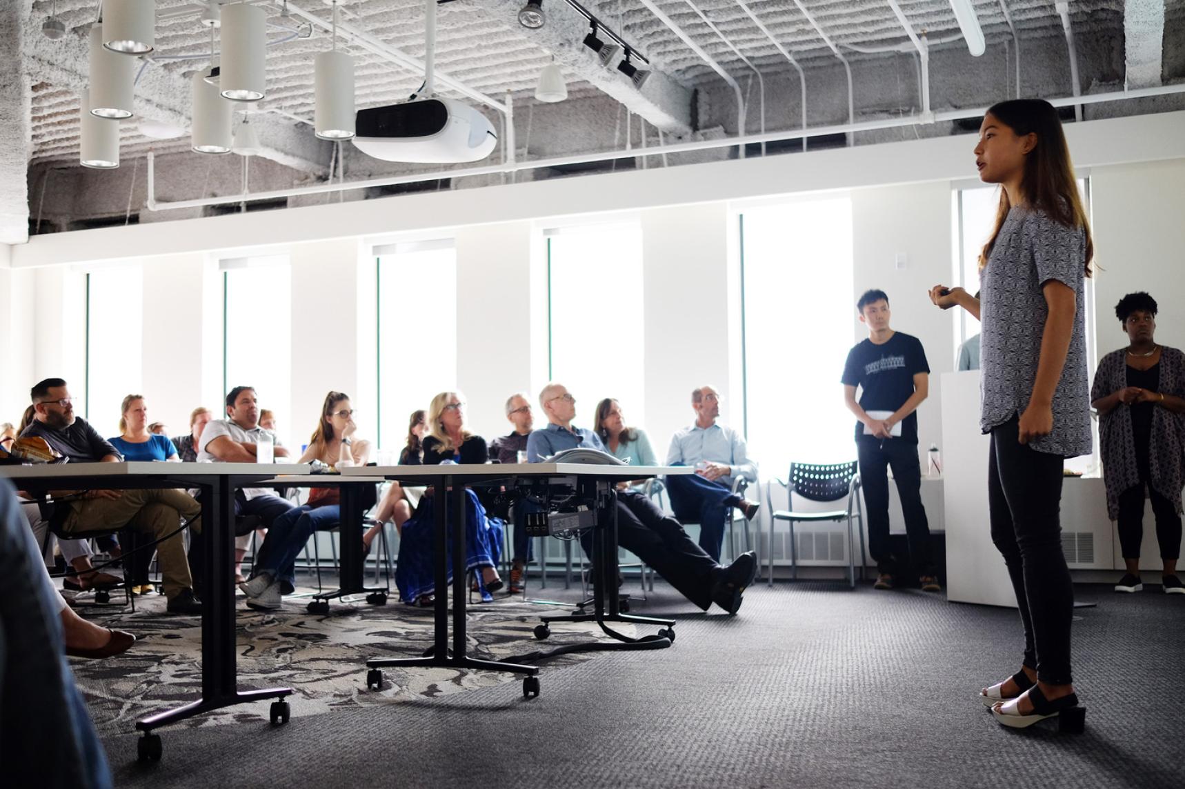 The relocation of the architectural firm's office to the top two floors of a 1970s-era building in Colony Square was approached with sustainability at the forefront. The project integrates various environmentally conscious strategies, including LED fixtures with daylight harvesting, reducing the lighting power density by 53%, and maximizing natural daylight. The design features flexible workspaces and open office layouts, with a focus on promoting movement and collaboration through a monumental stair connecting the two floors. To encourage alternative transportation, the office includes bicycle storage and showers, supporting low-carbon commuting options. Water-saving fixtures, such as low-flow toilets and pressure-reducing valves, achieve a 41% water reduction. Materials were thoughtfully chosen, with many reclaimed from the previous office, and 28% of new materials sourced regionally. The design also minimizes energy consumption by incorporating EnergyStar-rated appliances and efficient HVAC systems.