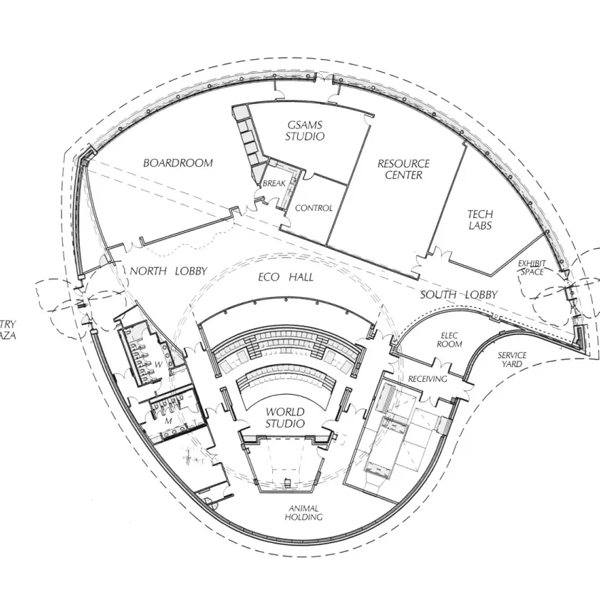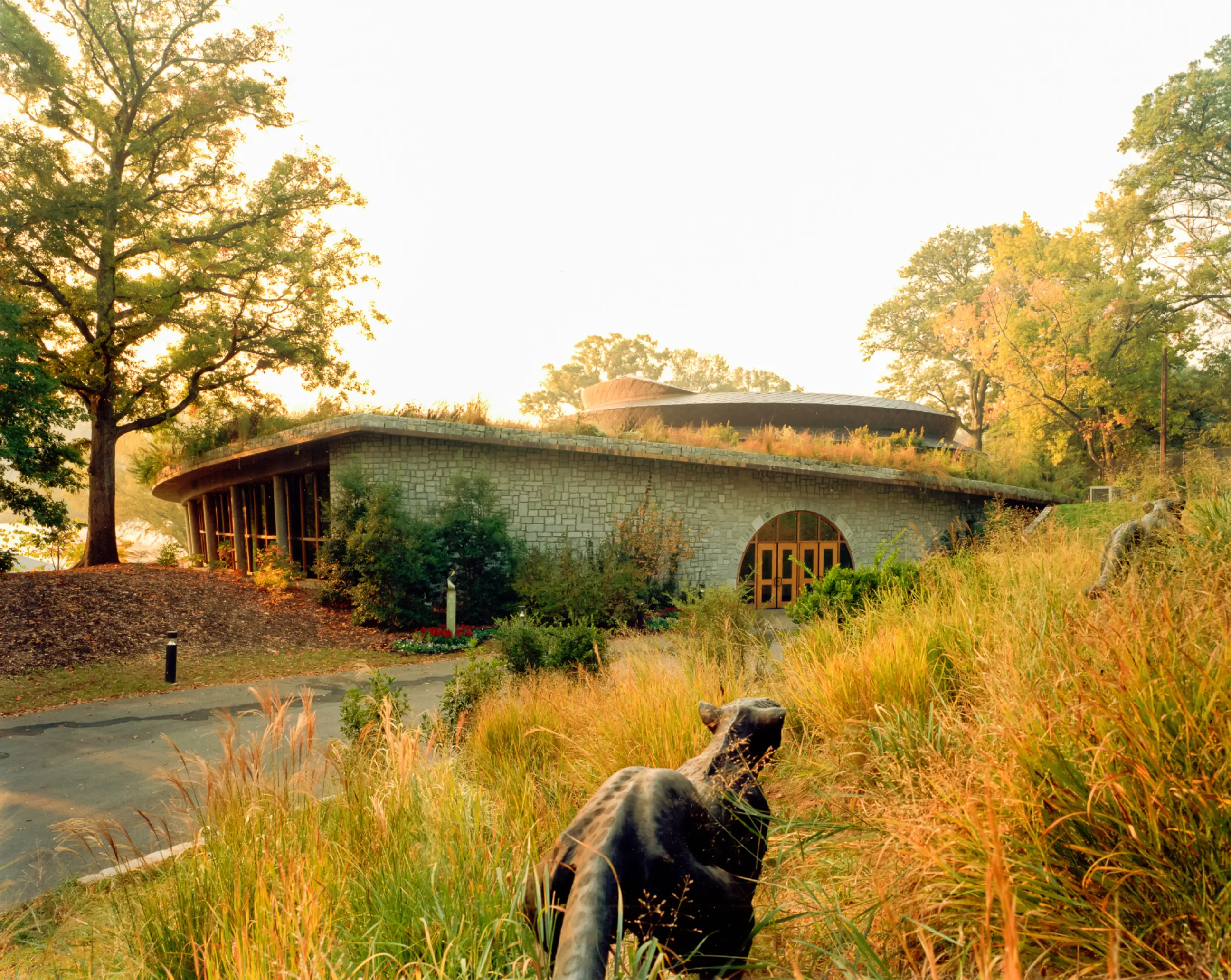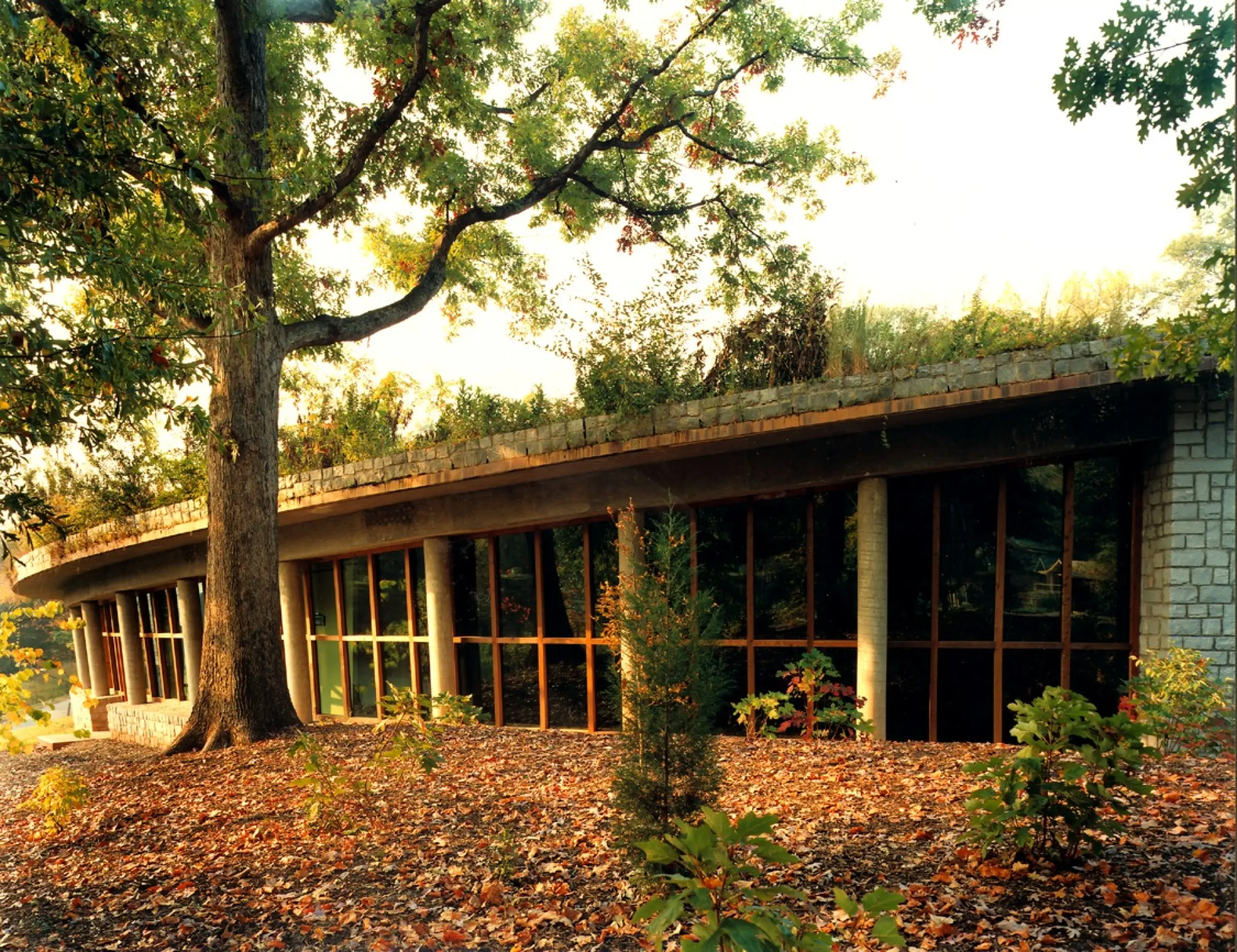 The Conservation Action Resource Center (ARC) demonstrates an integrated approach to sustainability, aligning architectural design with environmental education. The project utilized reclaimed materials such as recycled Coca-Cola bottles and bamboo for interior finishes, as well as salvaged Georgia granite and recycled copper shingles for the exterior. The building is embedded into a hillside to enhance insulation, while a living roof with native vegetation mitigates heat gain, reduces cooling demands, and decreases stormwater runoff. The facility’s fluid design and siting reflect a harmony with the natural landscape, reinforcing conservation principles through both structure and function.