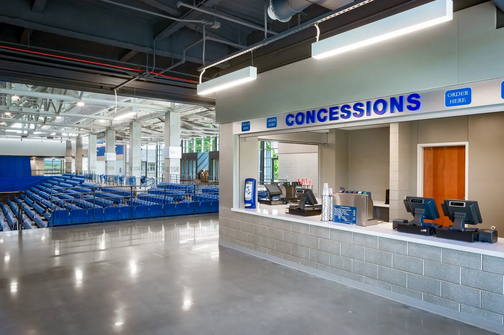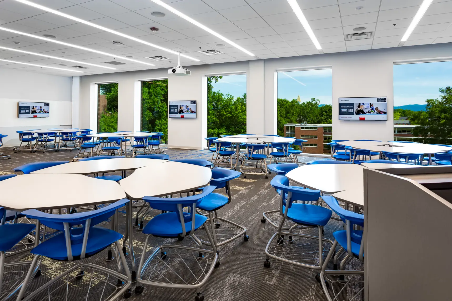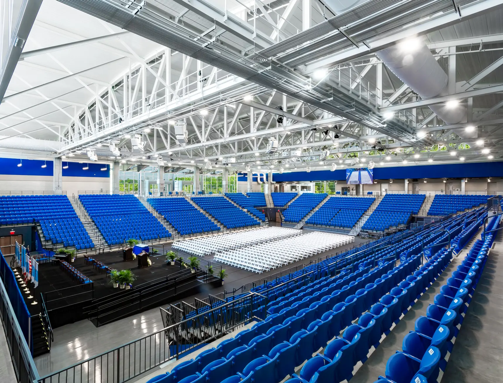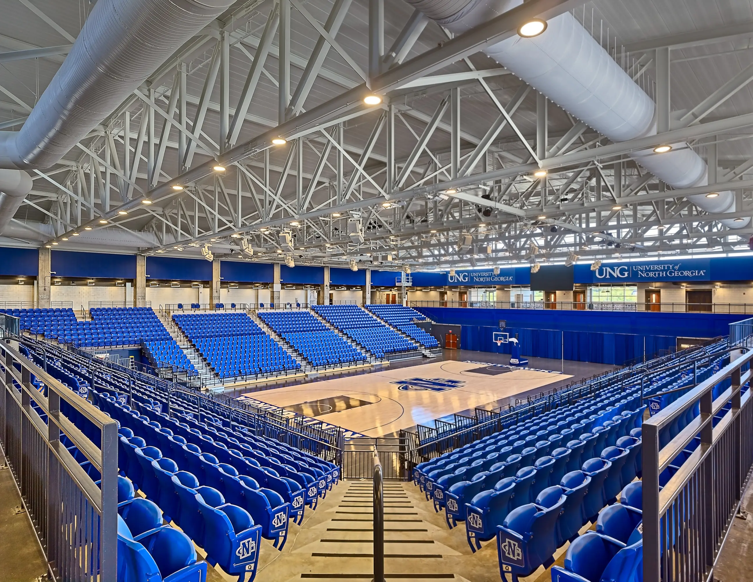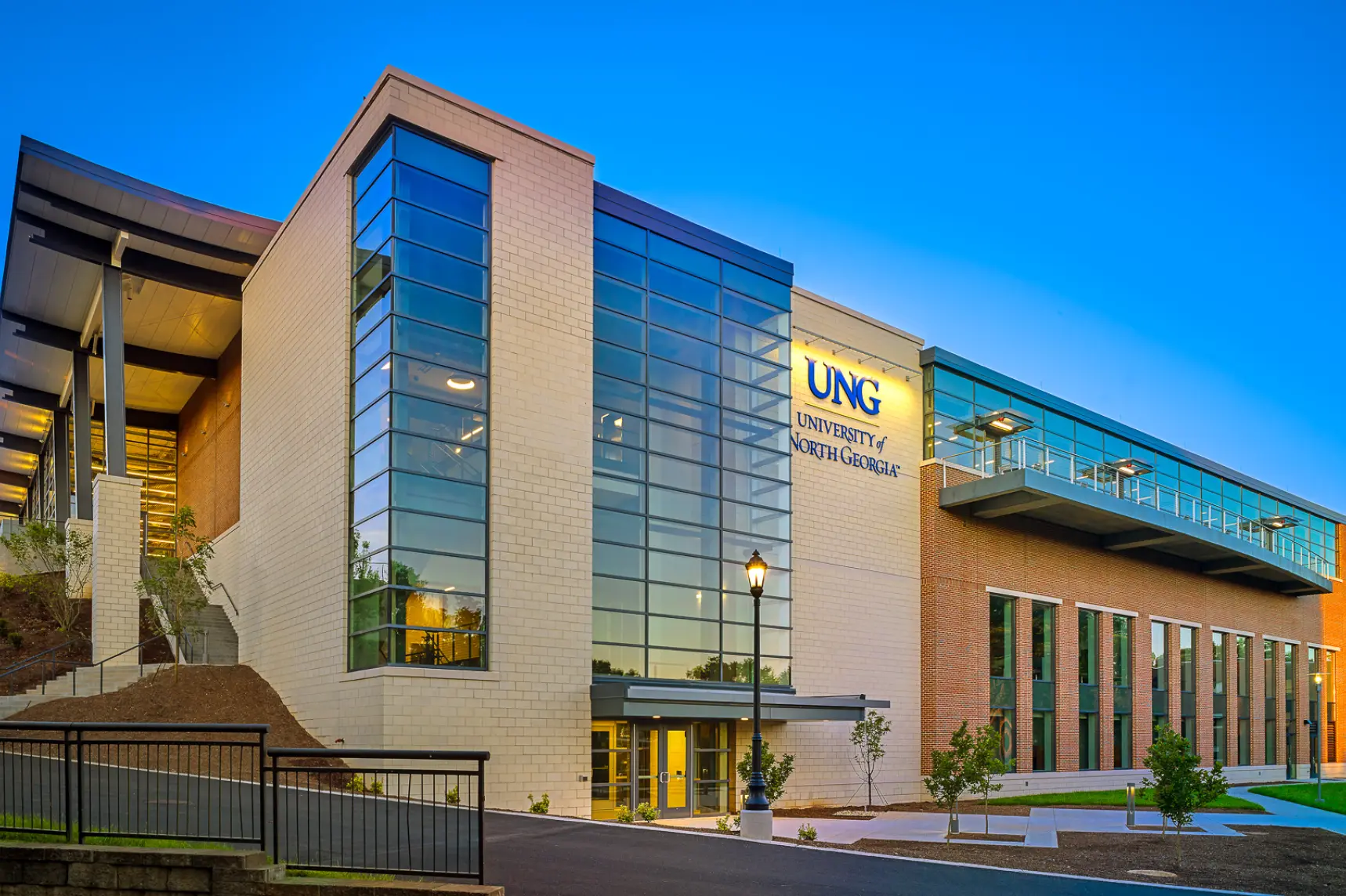 The Convocation Center at the University of North Georgia's Dahlonega campus is a versatile facility designed to host a wide range of academic, athletic, and community events. Situated atop a low knoll, the center includes a modern, flexible event space for up to 4,000 guests, as well as instructional and meeting spaces that cater to the needs of the Health and Physical Education and Military Science programs. Additional features include academic offices, classrooms, an athletic training clinic lab, and support spaces. The project also involves the renovation of 15,000 square feet within the historic Memorial Hall. This center, developed in collaboration with Rossetti Architects, provides a vital hub for student and community engagement, overlooking the Drill Field and enhancing the southern side of the campus.