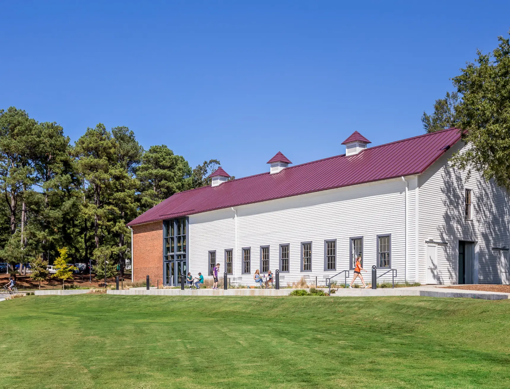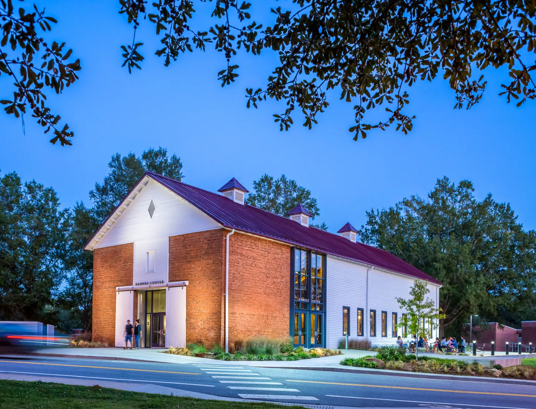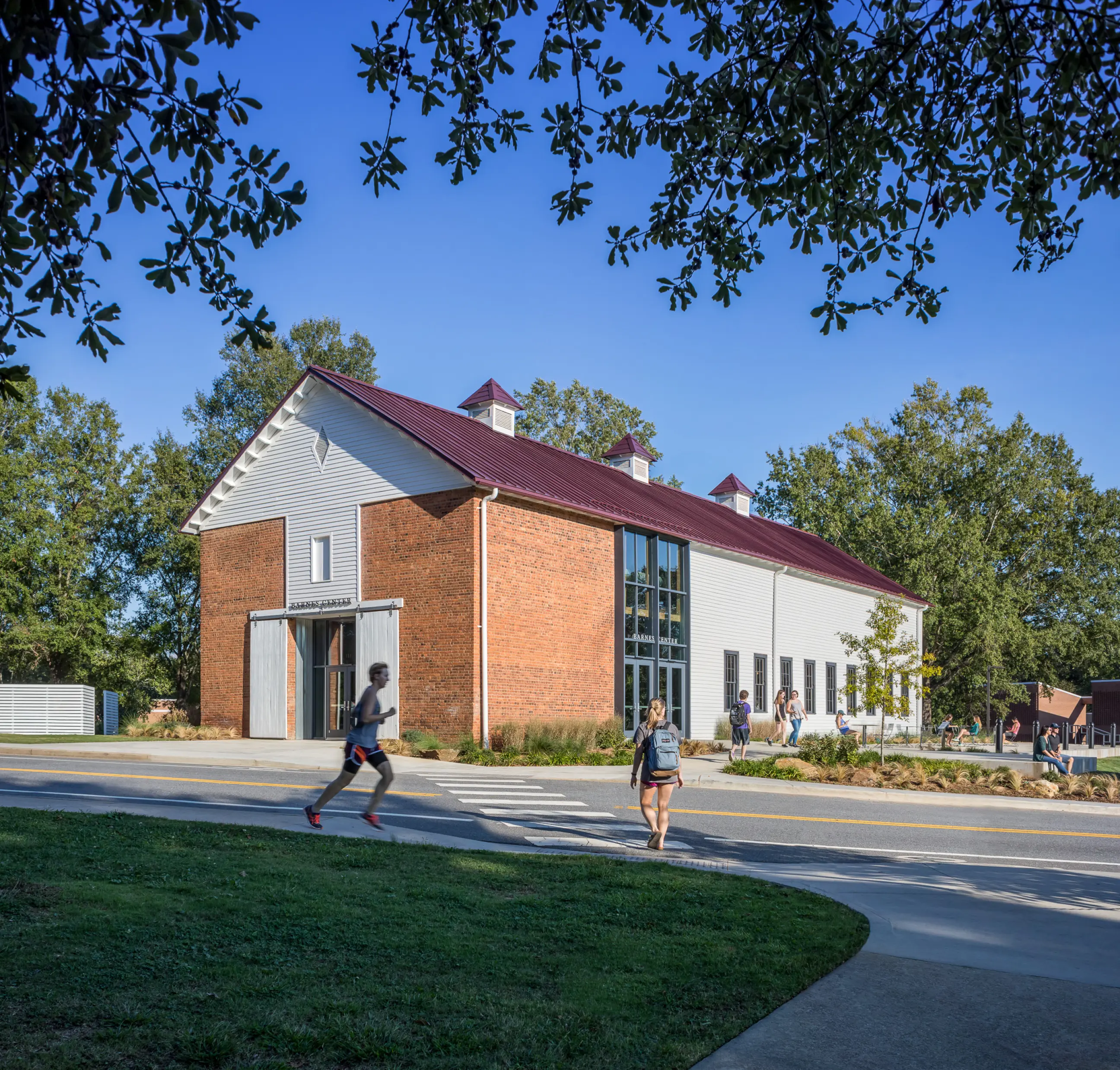 Originally constructed in the early 20th century, Clemson University’s Sheep Barn is a historically significant structure listed on the National Register of Historic Places. The renovation project carefully restored the barn’s defining architectural features, including its distinctive wood-frame construction and two integrated brick silos. The building, once central to agricultural research, was transformed into a modern student activity center while preserving its historical character. Key exterior repairs addressed structural deterioration, while the silos were thoughtfully repurposed for dining spaces, ensuring the building’s unique elements were retained. Inside, the expansive open floor plan was adapted to host various student activities, performances, and social events, with subtle modern updates to ensure functionality. An additional outbuilding was constructed to support the main structure, enabling it to maintain its historical integrity while accommodating contemporary programmatic needs. This renovation honors the barn’s rich history while securing its place as a functional, modern campus facility.