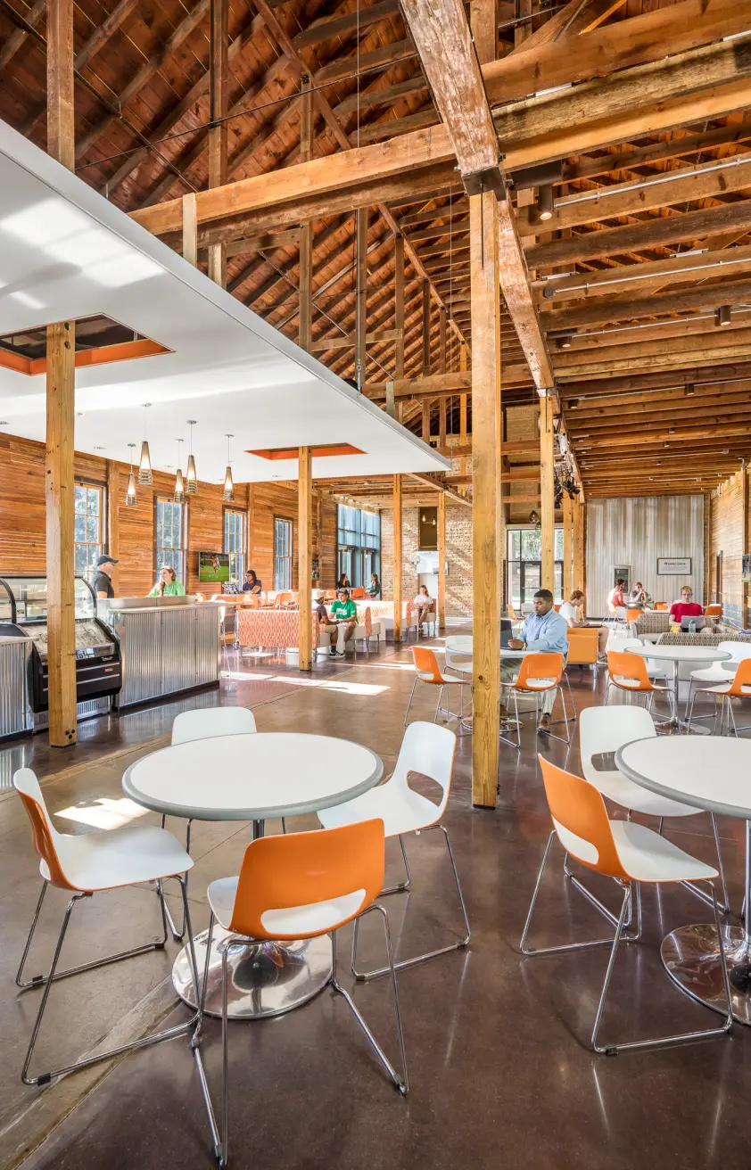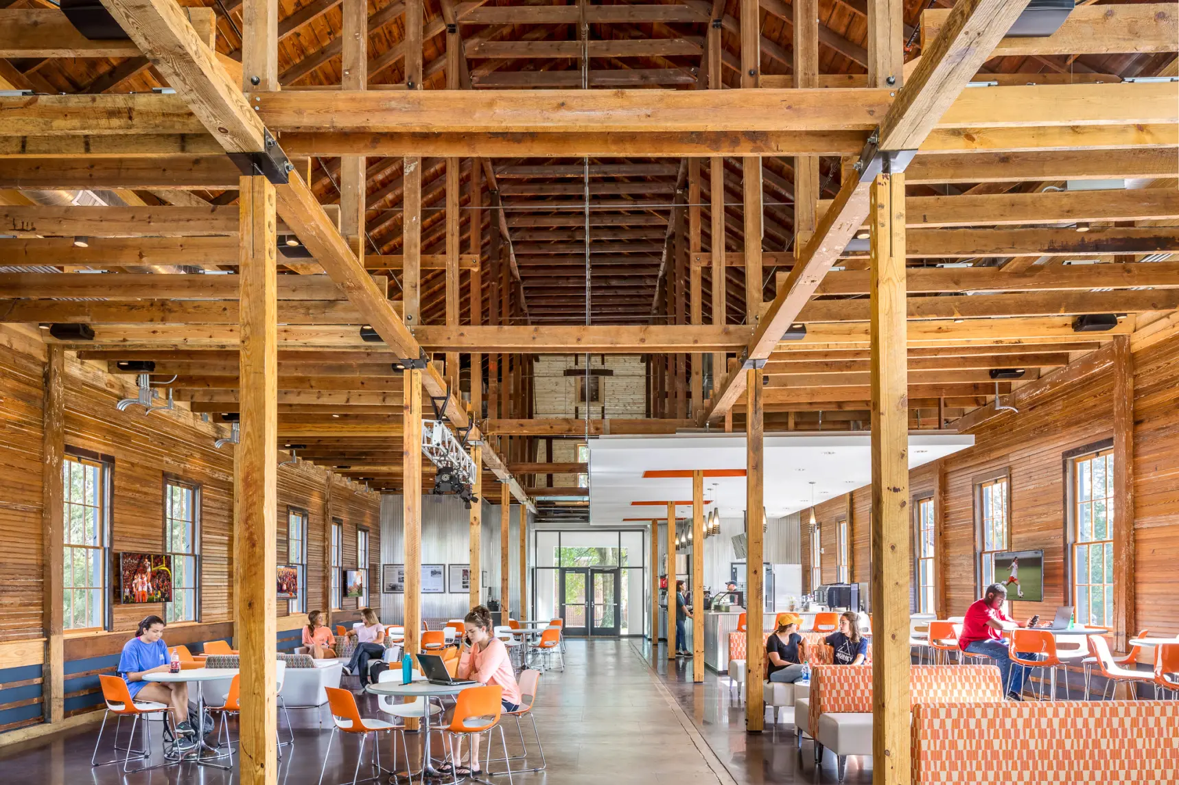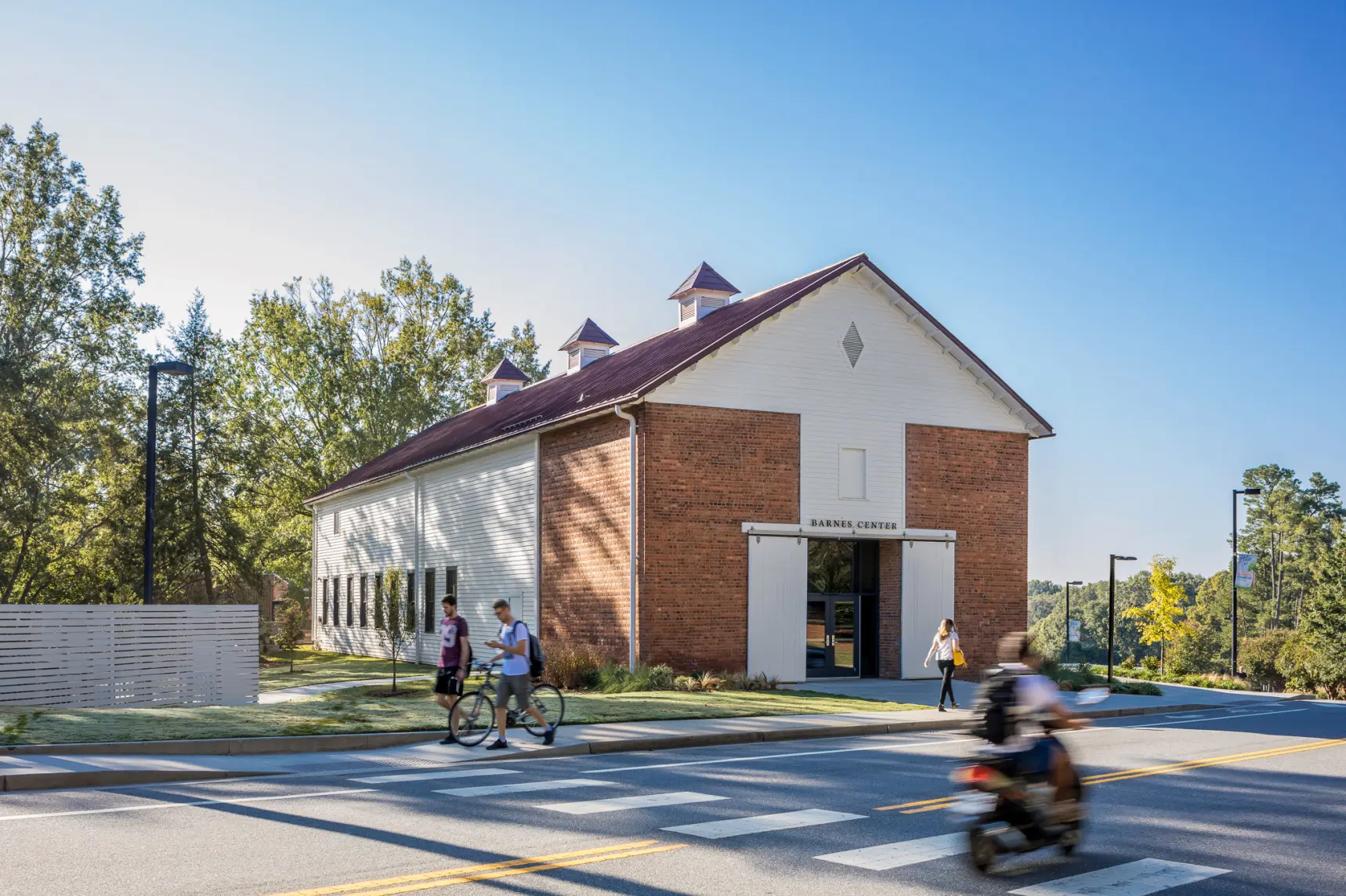 Originally constructed in the early 20th century, Clemson University’s Sheep Barn is a historically significant structure listed on the National Register of Historic Places. The renovation project carefully restored the barn’s defining architectural features, including its distinctive wood-frame construction and two integrated brick silos. The building, once central to agricultural research, was transformed into a modern student activity center while preserving its historical character. Key exterior repairs addressed structural deterioration, while the silos were thoughtfully repurposed for dining spaces, ensuring the building’s unique elements were retained. Inside, the expansive open floor plan was adapted to host various student activities, performances, and social events, with subtle modern updates to ensure functionality. An additional outbuilding was constructed to support the main structure, enabling it to maintain its historical integrity while accommodating contemporary programmatic needs. This renovation honors the barn’s rich history while securing its place as a functional, modern campus facility.