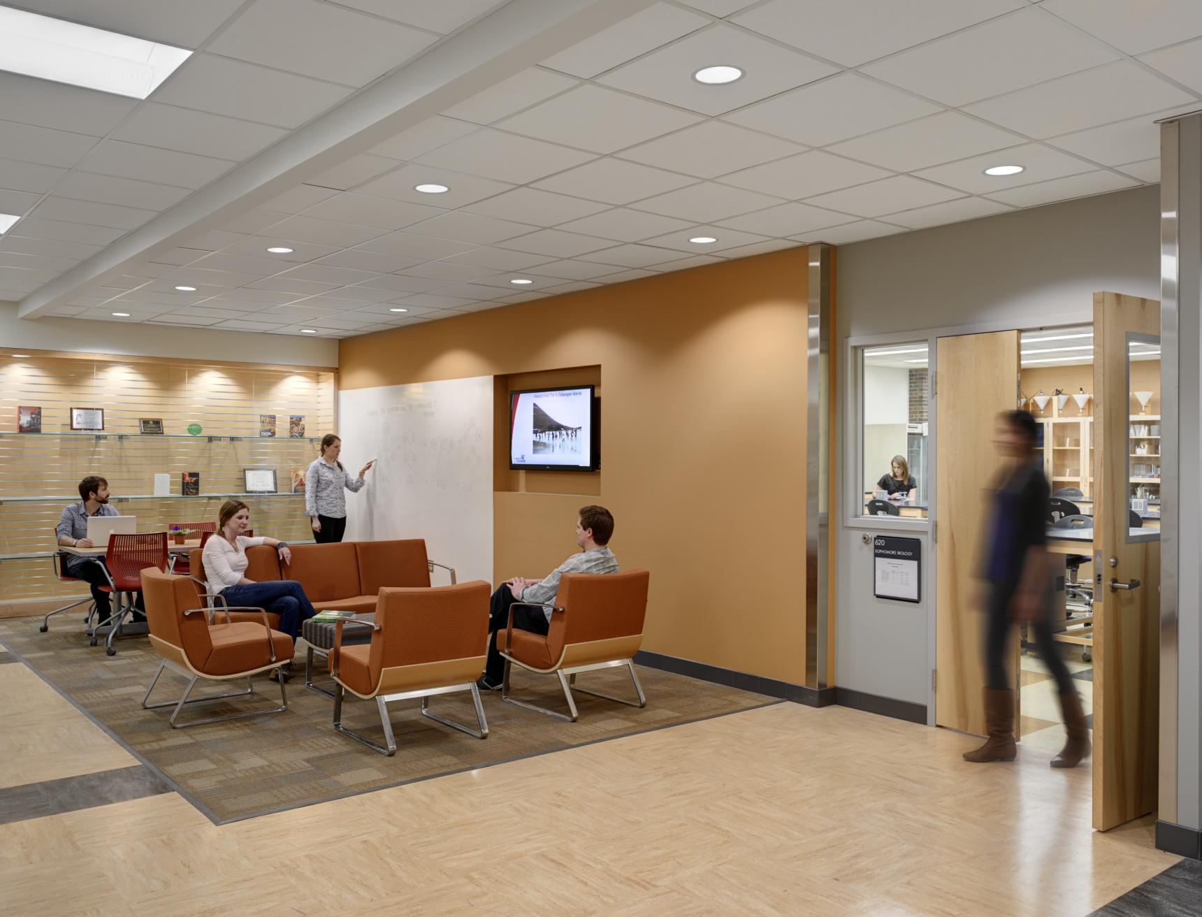 Lord Aeck Sargent, in collaboration with GBBN Architects, spearheaded a multi-phase renovation of Rieveschl Hall at the University of Cincinnati, an eight-story building dating back to 1968. The Phase Four renovation focused on revitalizing the sixth and seventh floors for the Department of Biology, creating adaptable spaces to accommodate evolving teaching and research needs. The 42,000-square-foot updates included redesigned teaching labs for interactive learning, expanded research labs to foster collaboration, and revamped offices, conference rooms, and informal meeting areas. Infrastructure enhancements encompassed a new VAV HVAC system, updated plumbing and electrical distribution, asbestos removal, and a modern fire protection system. Phase Five continued these improvements, renovating an additional 52,000 square feet for chemistry and biology research spaces along with associated offices and conference rooms.