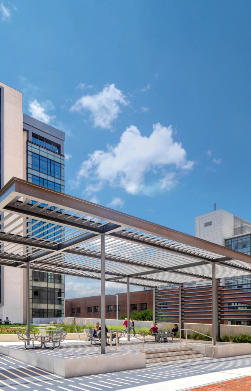 The Mary Ellen Jones Research Building, originally completed in 1978, underwent a comprehensive renovation to modernize its facilities for the University of North Carolina (UNC) School of Medicine. Lord Aeck Sargent conducted a Feasibility Study to guide the renovation process, resulting in the transformation of outdated laboratories into open, flexible spaces conducive to collaborative and interdisciplinary research. Exterior improvements involved recladding a significant portion of the building with a high-performance curtainwall system, enhancing both the working environment and interior daylighting. The renovated facility now houses general biomedical research areas, specialized spaces for initiatives like the UNC Food Allergy Institute and Computational Medicine, Neuroscience Center Research Labs, and dedicated floors for Biomedical Engineering, including undergraduate design labs. Additionally, a centralized meeting and collaboration zone fosters interaction among researchers and staff.