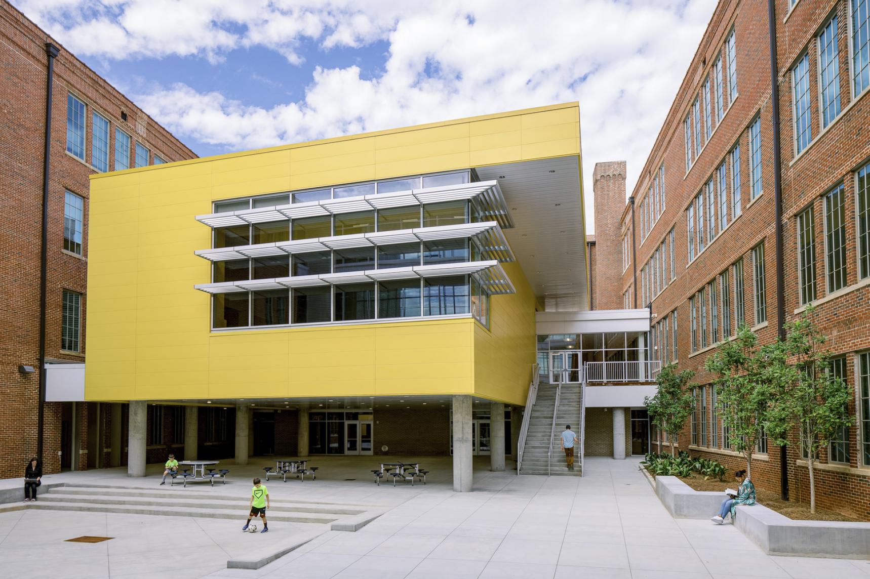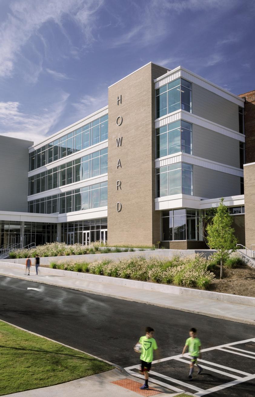 The Historic David T. Howard School, constructed in the mid-1920s and located in Atlanta's Old Fourth Ward Neighborhood, underwent a comprehensive renovation and redesign by Lord Aeck Sargent in collaboration with Stevens & Wilkinson. This project, part of the Grady Cluster School District, included the historic rehabilitation of the existing structure, integration of multiple additions, and significant site improvements. The design focused on outdoor learning and recreation spaces, including a shade garden and green infrastructure for surface runoff management. The site design also preserved old growth trees and enhanced neighborhood connectivity by creating a new east-west street through the block, separating bus queuing from parent/visitor drop-off areas. Modern additions such as a cafeteria, auditorium, music rooms, and a media center complemented the historical aesthetics, and the project complied with the Secretary of Interior’s Standards for Rehabilitation and underwent the Atlanta Urban Design Commission’s review process. The modernized David T. Howard Middle School campus opened for the 2020 school year, featuring improved pedestrian spaces and connections to the BeltLine Eastside Trail and Freedom Park Trail.