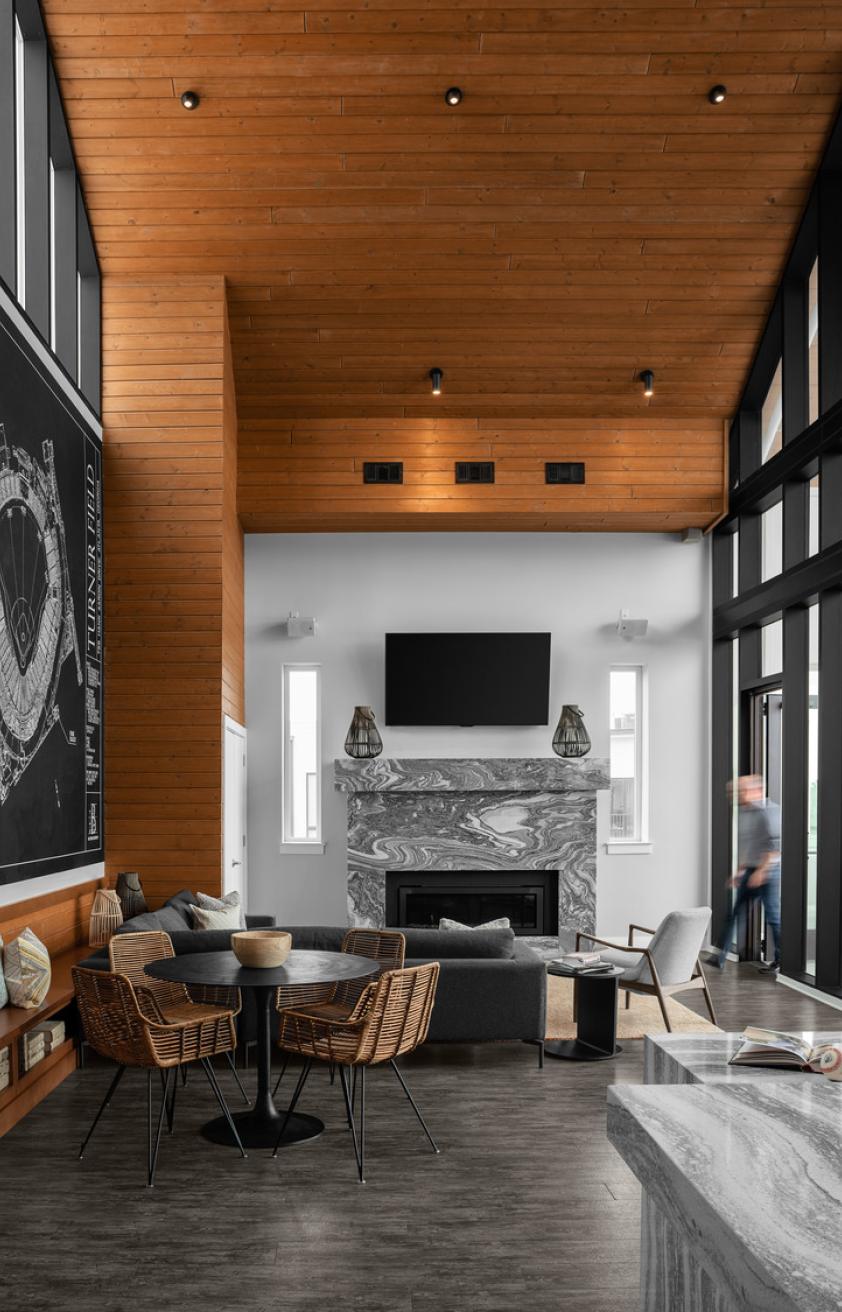 This five-story, luxury multifamily development (formerly Broadstone Ridge) is designed to accommodate active residents, featuring a large exercise area, bicycle storage and repair facilities, kayak storage, and incubator-style office space. The site, characterized by a significant slope, presented a unique challenge to create a cohesive connection between the varied communal spaces within the building and the dramatic central courtyard. This courtyard, designed with a 20-foot drop and waterfall, includes multiple lounge areas and spaces for recreational activities such as corn hole, whiffle ball, and bocce ball. Additionally, a top-floor lounge and terrace provide panoramic views of the skyline. The design prioritizes creating generous circulation pathways to seamlessly link the interior communal areas and the external surroundings, fostering a strong connection to the nearby Chattahoochee National Recreation Area and the Atlanta Braves stadium.