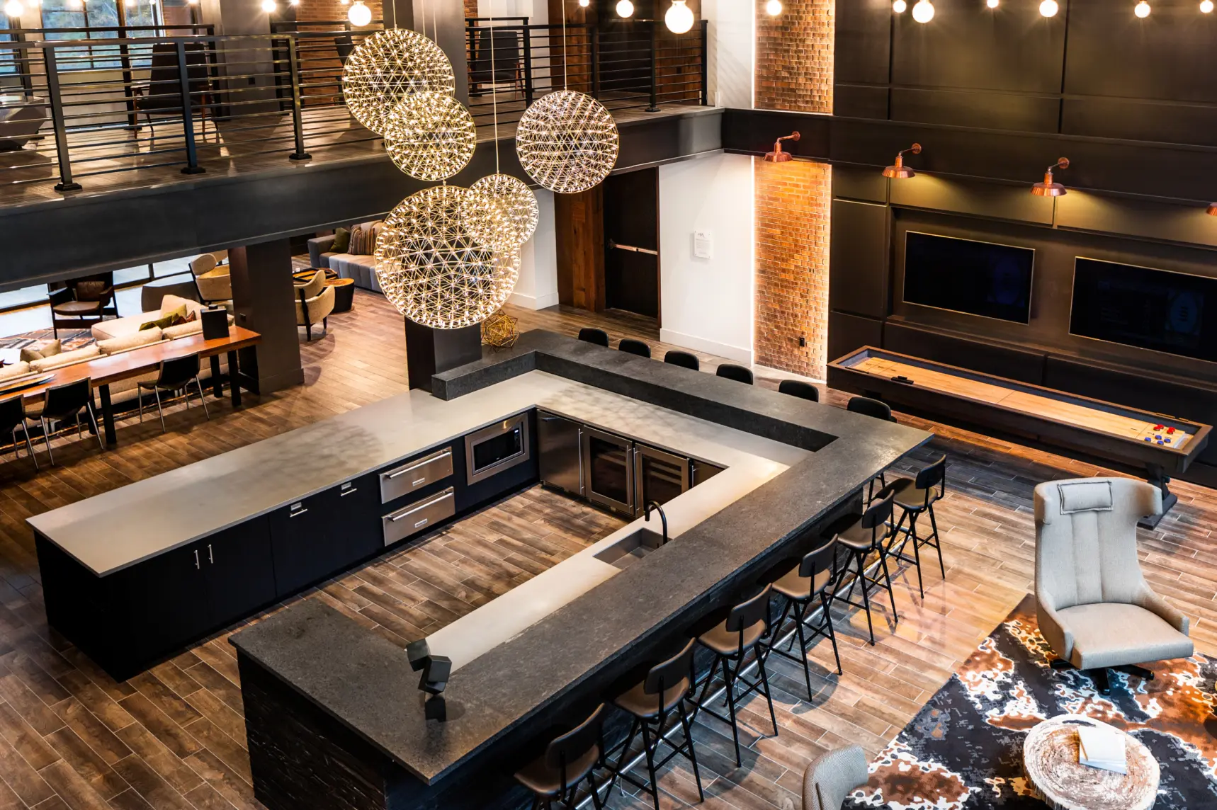 Vinings Lofts and Apartments (formerly Modera Vinings), situated at the start of the Silver Comet Trail, exemplifies a multifamily mixed-use project designed to encourage an active lifestyle. Overlooking a pond, the development integrates 269 luxury apartment units ranging from one to three bedrooms across five levels atop a podium featuring retail, leasing, and parking facilities. The site includes amenities such as a large pool with swim lanes, a 24-hour fitness center, a trail around the pond, and a two-story clubroom with access to a central courtyard and a screened porch. The project enhances community connectivity and promotes sustainable living through its strategic location and comprehensive on-site amenities.